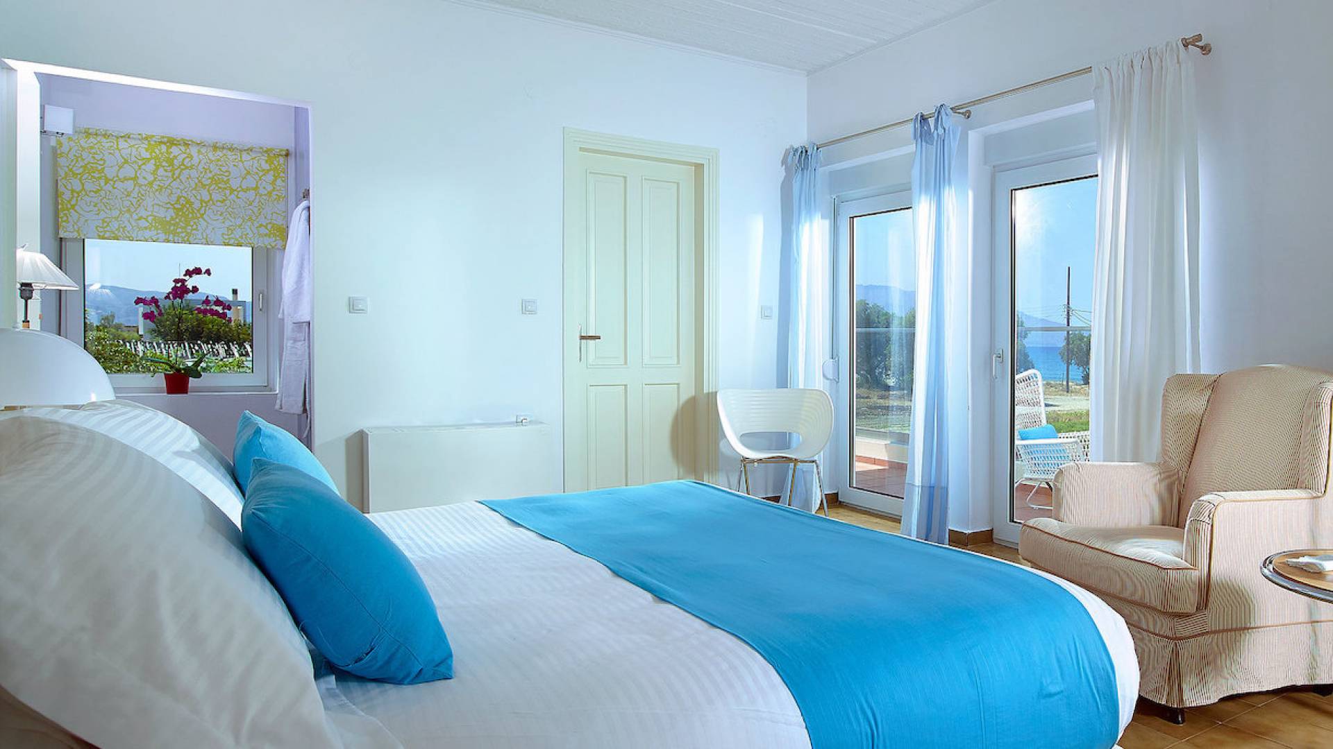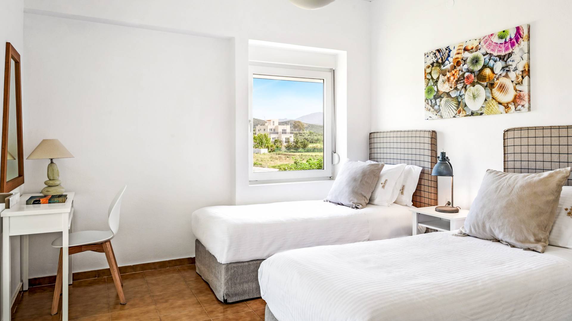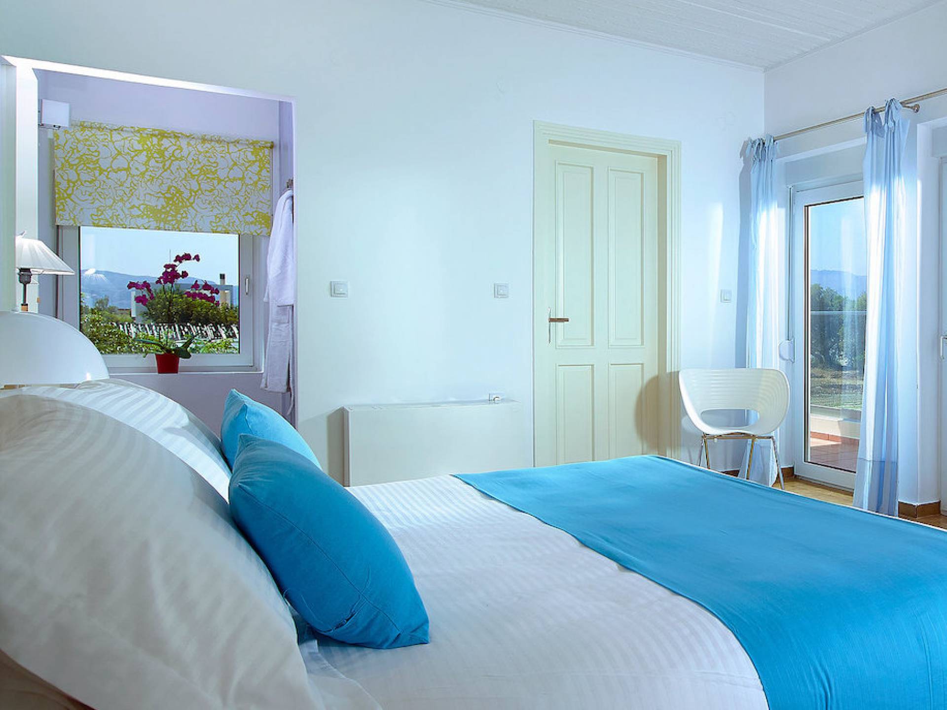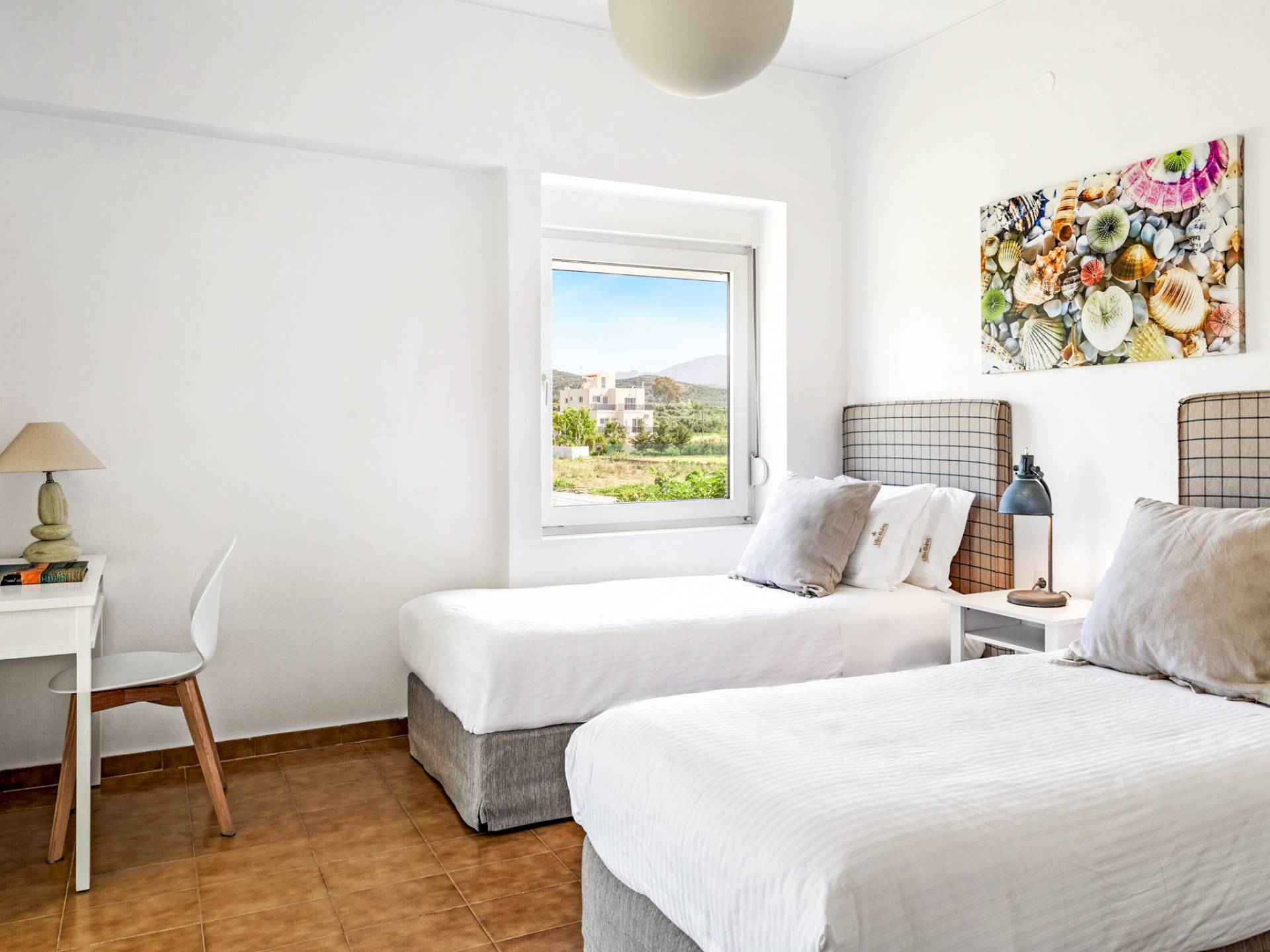 Die Elvina Villa Beachfront Chania umfasst 4 Schlafzimmer und kann bis zu 10 Personen (maximal 10 Personen) beherbergen (2 davon erhalten ein Schlafsofa zum Schlafen). Das größte Schlafzimmer ist ein 35 m2 großes Studio, das mit einer separaten Eingangstür in das Erdgeschoss der Villa integriert ist. Das Schlafzimmer verfügt über ein Doppelbett, ein gemütliches, kleines Wohnzimmer, eine Küchenzeile und ein Badezimmer mit Dusche. Eine aufwendige Holztreppe führt Sie in den ersten Stock, wo sich 3 separate Schlafzimmer befinden. Einer von ihnen bietet ein Doppelbett, ein Badezimmer und einen großen möblierten Balkon mit Blick auf das Meer und den Pool. Die anderen 2 Schlafzimmer haben jeweils 2 Einzelbetten, die zusammengestellt werden können und ein größeres Bett bilden. Diese 2 Schlafzimmer teilen sich eine gemeinsame, möblierte Veranda sowie ein geräumiges Badezimmer. Alle Schlafzimmer sind mit bequemen Betten und Matratzen sowie mit hochwertiger Bettwäsche ausgestattet. In den Badezimmern gibt es Bademäntel, Badetücher für Gesicht und Körper sowie Haartrockner.