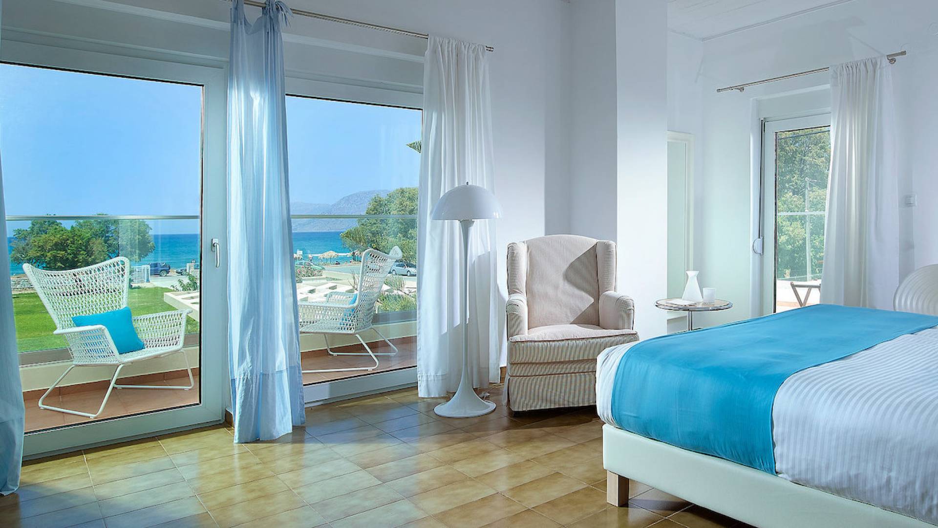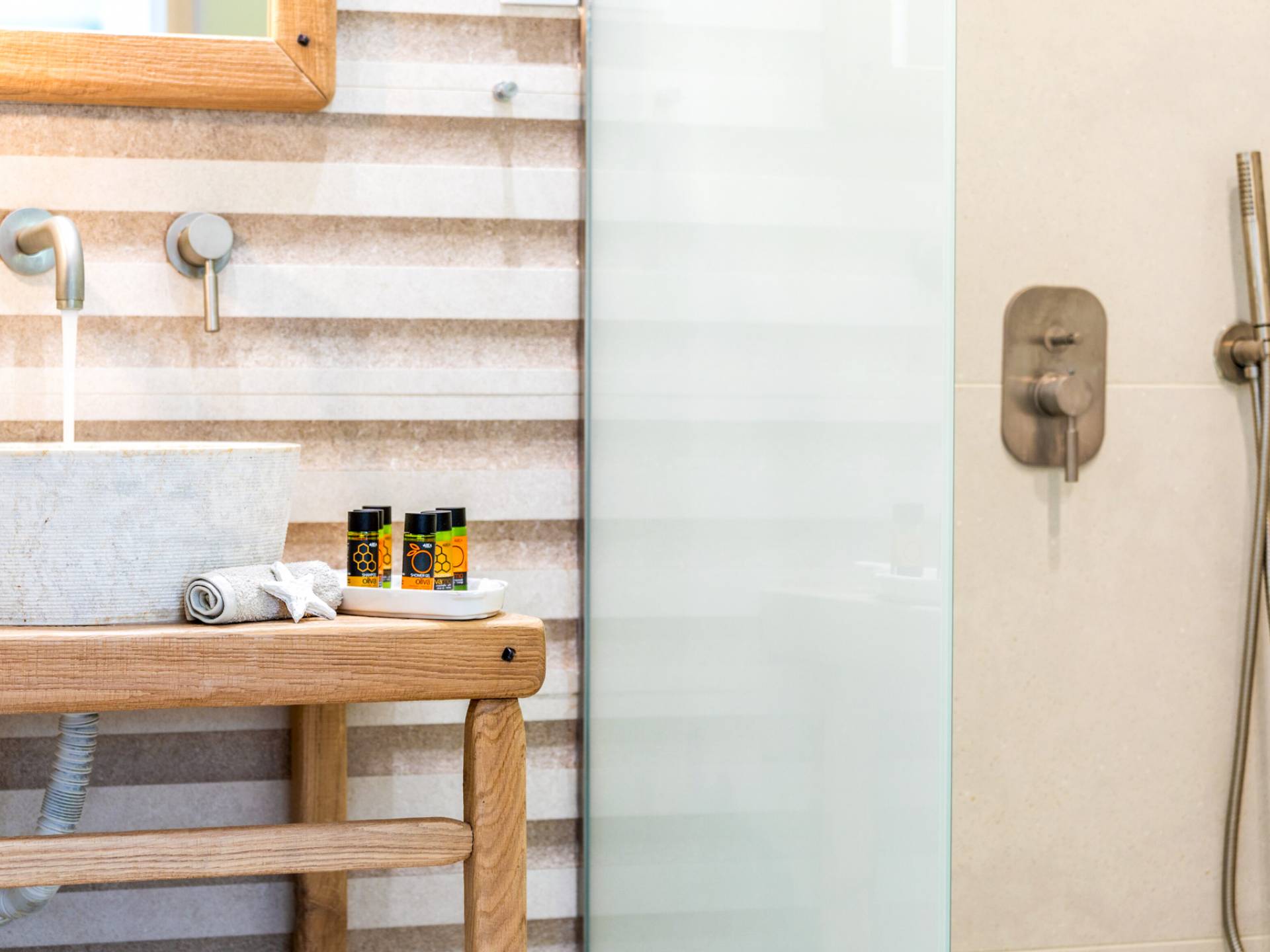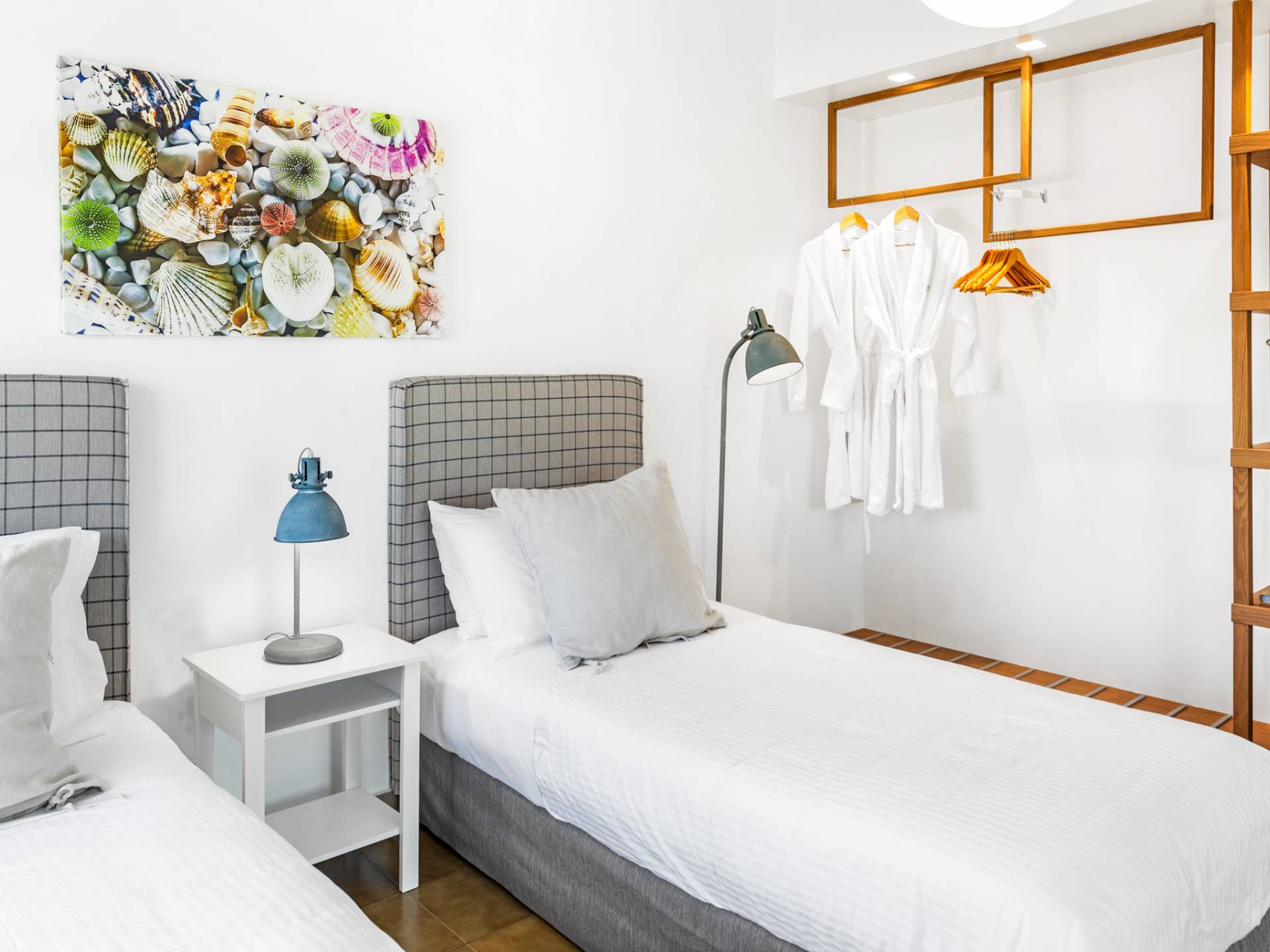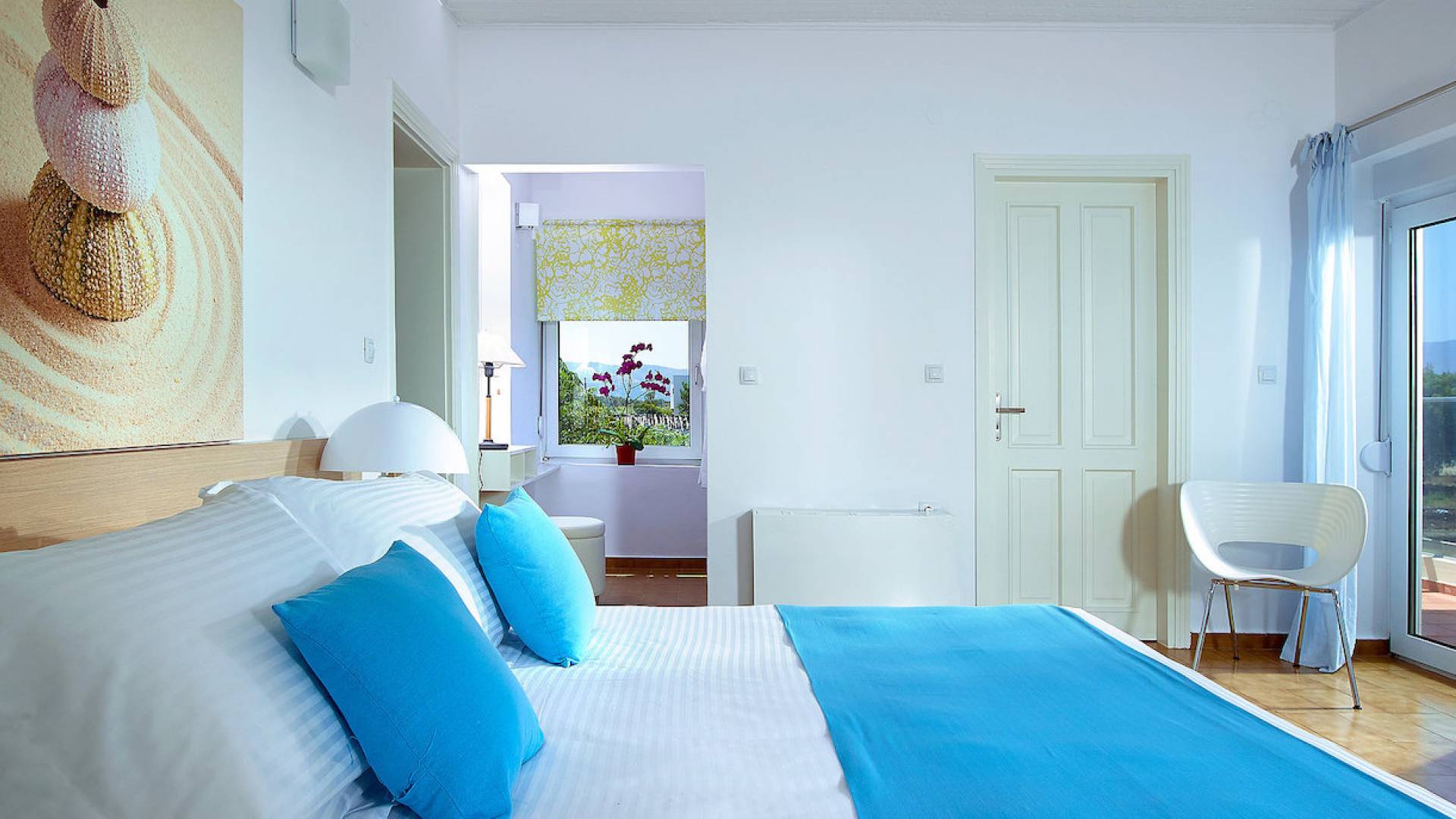 Die Elvina Villa Beachfront Chania umfasst 4 Schlafzimmer und kann bis zu 10 Personen (maximal 10 Personen) beherbergen (2 davon erhalten ein Schlafsofa zum Schlafen). Das größte Schlafzimmer ist ein 35 m2 großes Studio, das mit einer separaten Eingangstür in das Erdgeschoss der Villa integriert ist. Das Schlafzimmer verfügt über ein Doppelbett, ein gemütliches, kleines Wohnzimmer, eine Küchenzeile und ein Badezimmer mit Dusche. Eine aufwendige Holztreppe führt Sie in den ersten Stock, wo sich 3 separate Schlafzimmer befinden. Einer von ihnen bietet ein Doppelbett, ein Badezimmer und einen großen möblierten Balkon mit Blick auf das Meer und den Pool. Die anderen 2 Schlafzimmer haben jeweils 2 Einzelbetten, die zusammengestellt werden können und ein größeres Bett bilden. Diese 2 Schlafzimmer teilen sich eine gemeinsame, möblierte Veranda sowie ein geräumiges Badezimmer. Alle Schlafzimmer sind mit bequemen Betten und Matratzen sowie mit hochwertiger Bettwäsche ausgestattet. In den Badezimmern gibt es Bademäntel, Badetücher für Gesicht und Körper sowie Haartrockner.