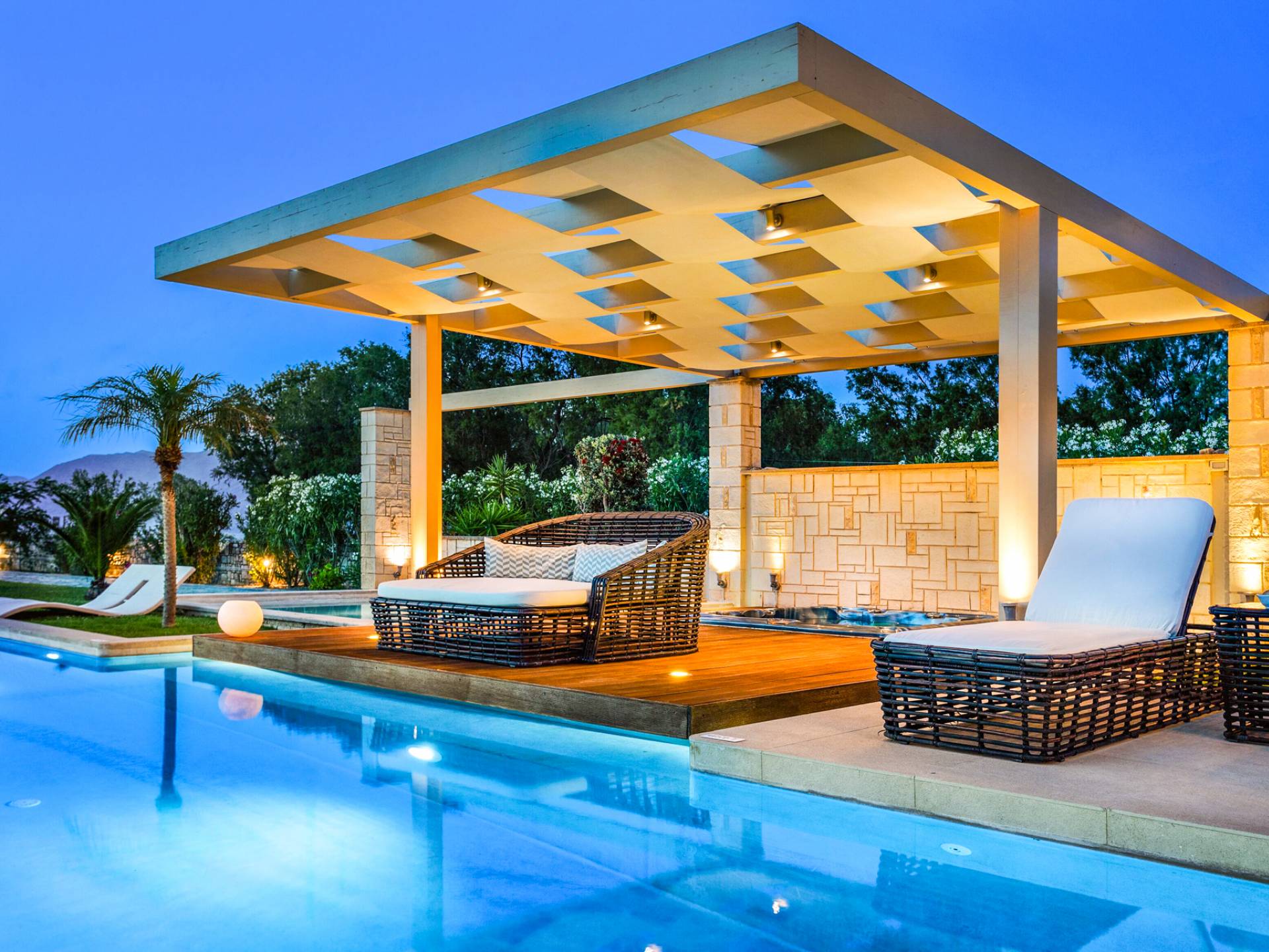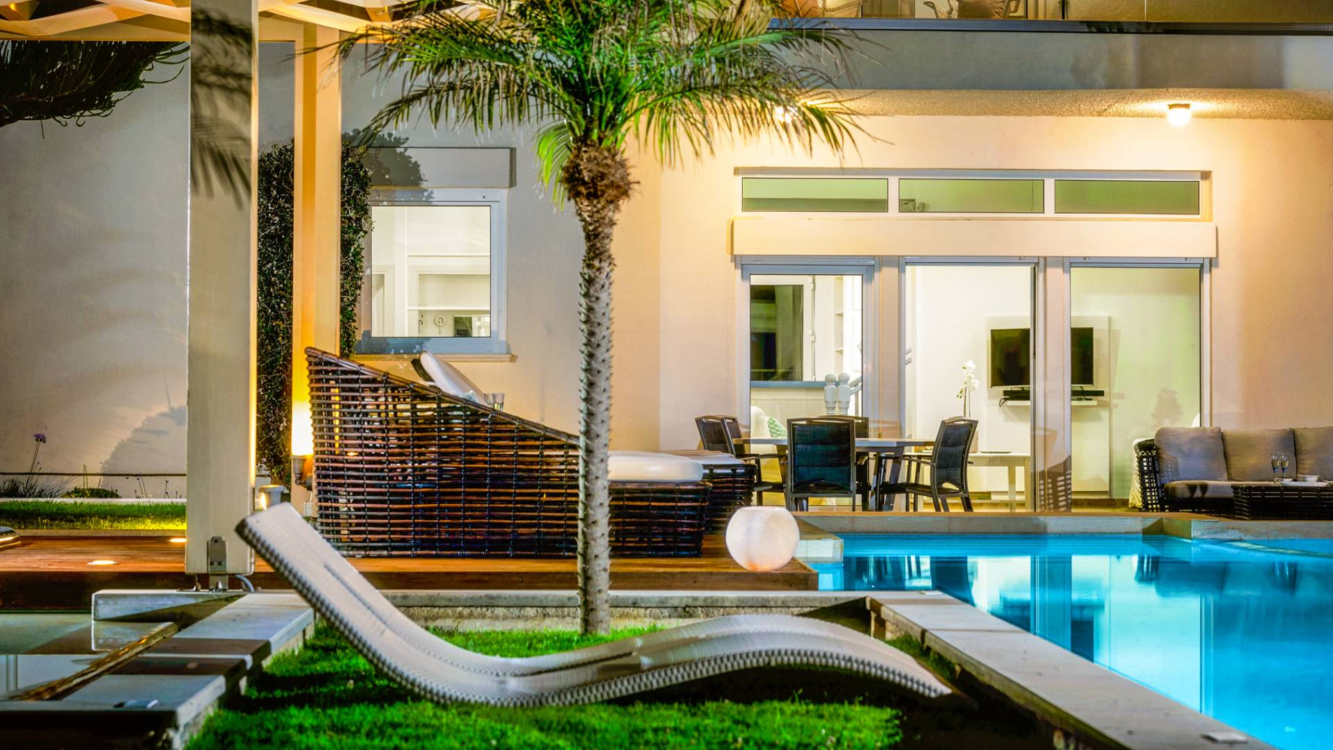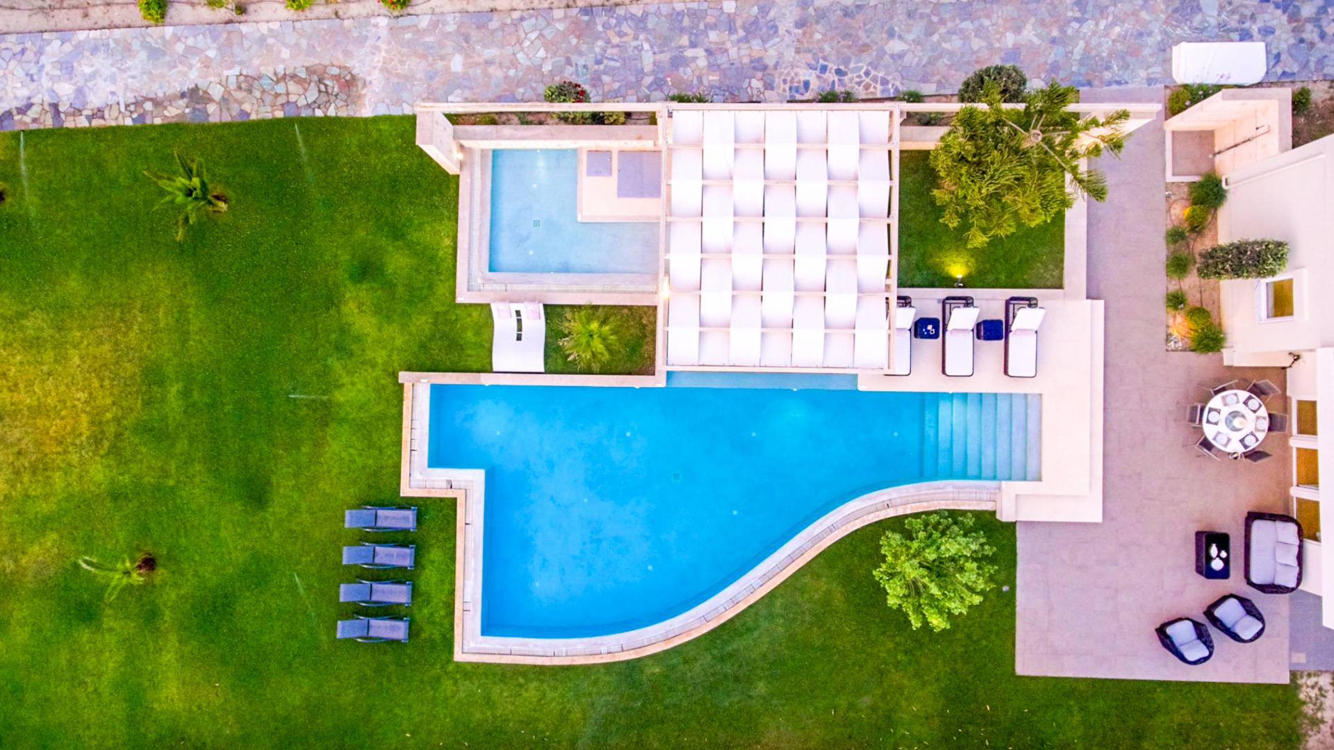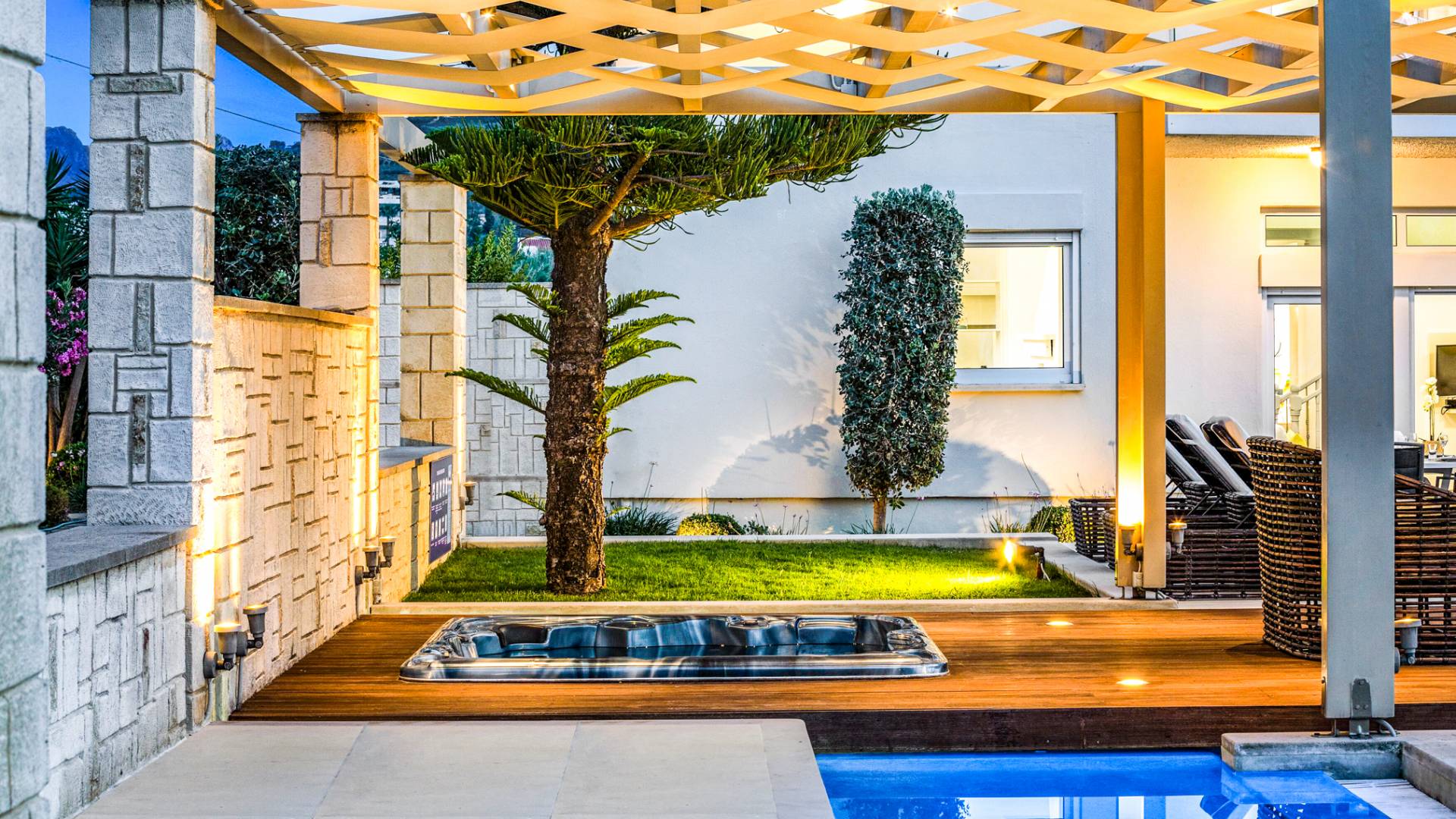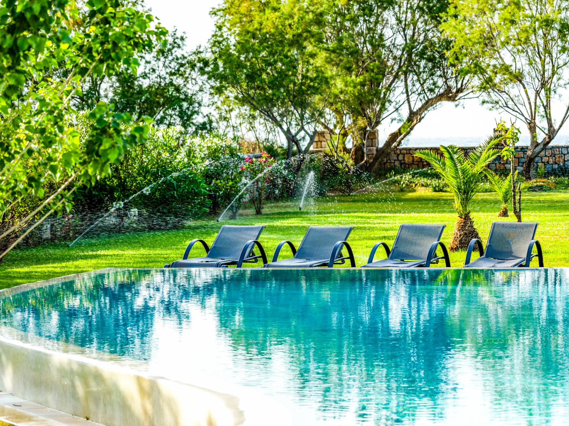 Die Elvina Villa Beachfront Chania ist für eine Gruppe von Freunden oder eine Familie geeignet. Es besteht aus 2 Etagen und umfasst hauptsächlich Open-Air-Bereiche, so dass Sie die frische Luft und die Meeresbrise spüren können, die überall vorherrscht. Die Pastellfarben, die dezente Dekoration des Interieurs sowie die modern und elegant eingerichteten Zimmer ergänzen das allgemeine Entspannungsgefühl. Elvina Villa Chania ermöglicht es Ihnen, entweder im 80 m2 großen Pool (12 m2 für Ihre Kinder) oder im Meer zu schwimmen und sich beim Blick auf den herrlichen Sonnenuntergang zu entspannen. Sie können Ihr Abendessen auch unter der Weinlaube eines Steingrills mit Meerblick genießen oder jederzeit einen Spaziergang durch den gepflegten Garten genießen.