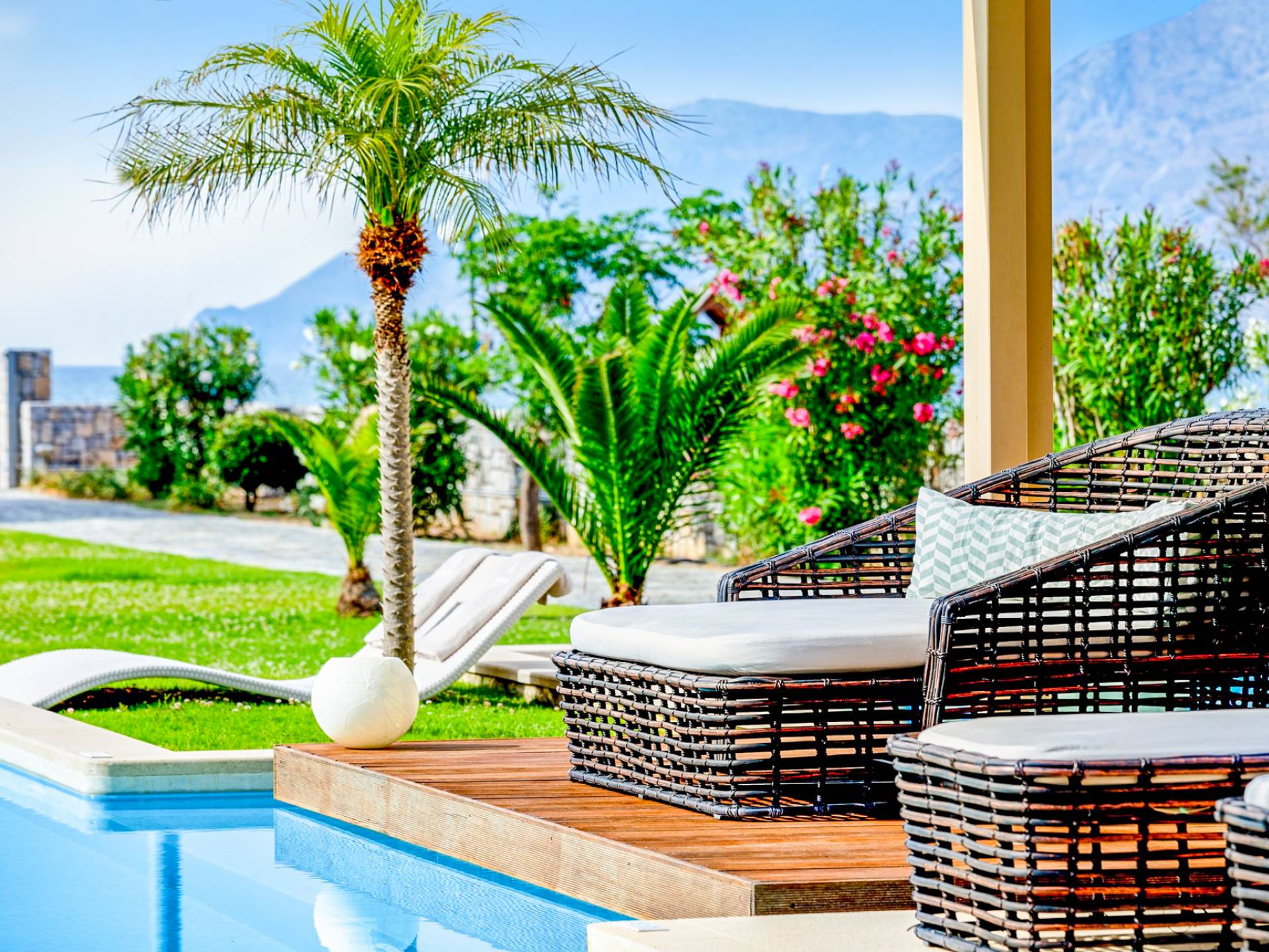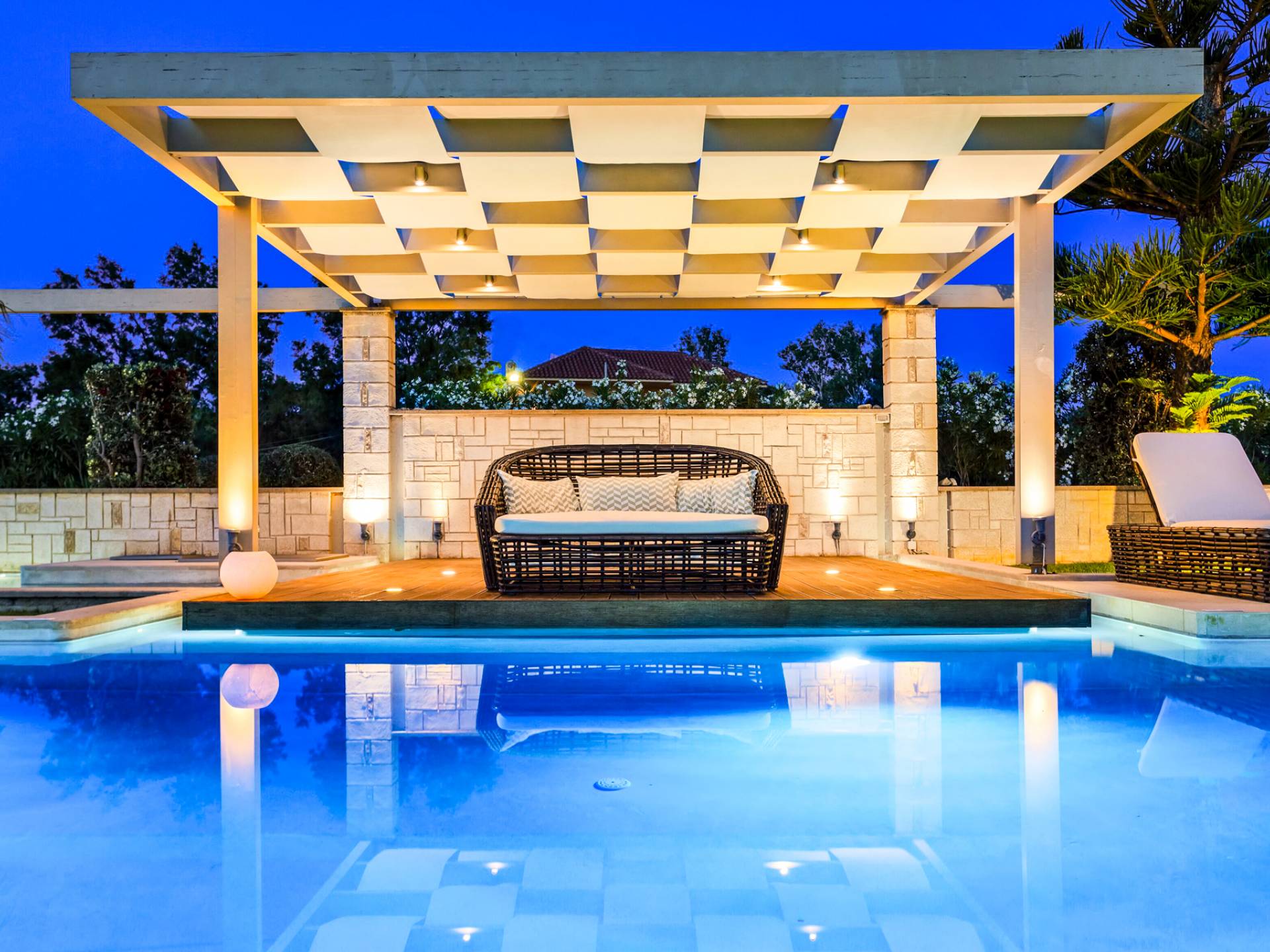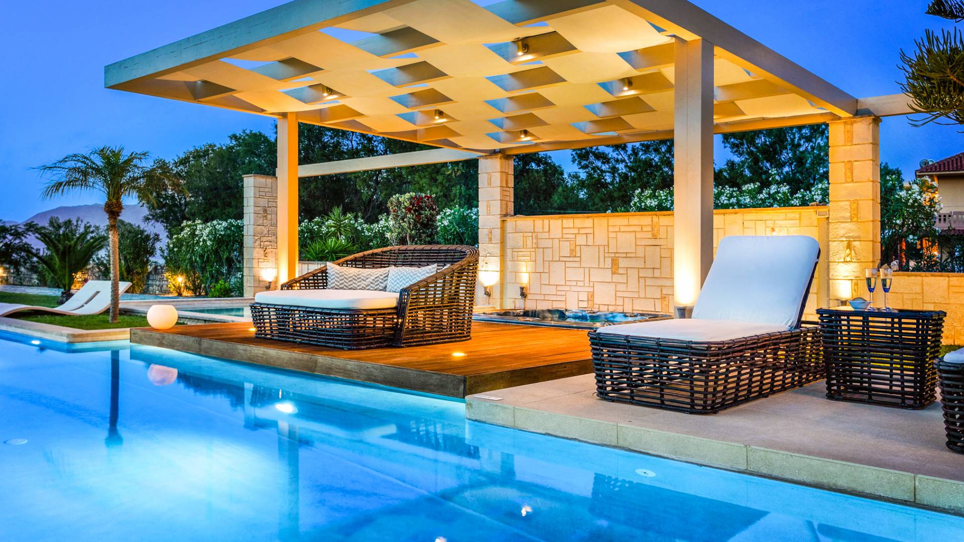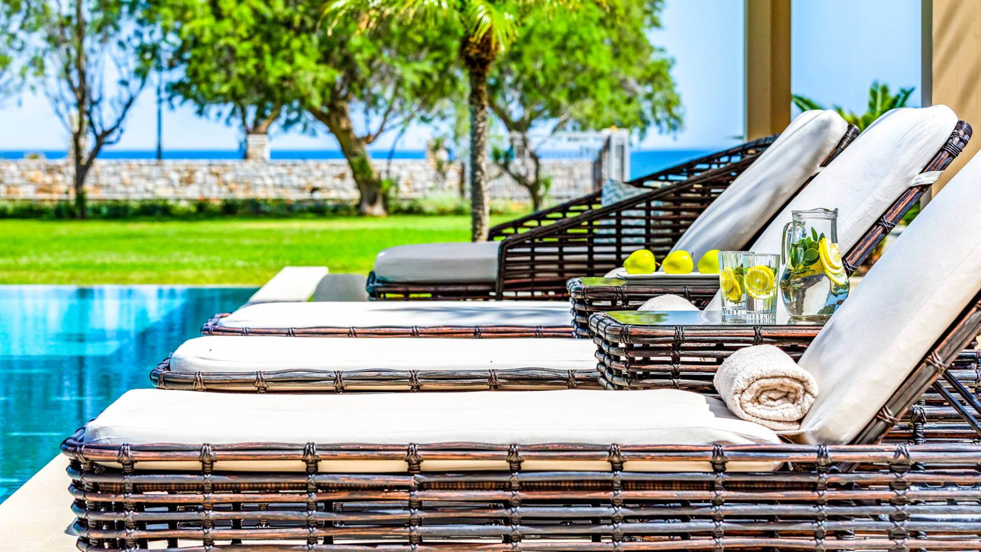 Die Elvina Villa Beachfront Chania ist für eine Gruppe von Freunden oder eine Familie geeignet. Es besteht aus 2 Etagen und umfasst hauptsächlich Open-Air-Bereiche, so dass Sie die frische Luft und die Meeresbrise spüren können, die überall vorherrscht. Die Pastellfarben, die dezente Dekoration des Interieurs sowie die modern und elegant eingerichteten Zimmer ergänzen das allgemeine Entspannungsgefühl. Elvina Villa Chania ermöglicht es Ihnen, entweder im 80 m2 großen Pool (12 m2 für Ihre Kinder) oder im Meer zu schwimmen und sich beim Blick auf den herrlichen Sonnenuntergang zu entspannen. Sie können Ihr Abendessen auch unter der Weinlaube eines Steingrills mit Meerblick genießen oder jederzeit einen Spaziergang durch den gepflegten Garten genießen.