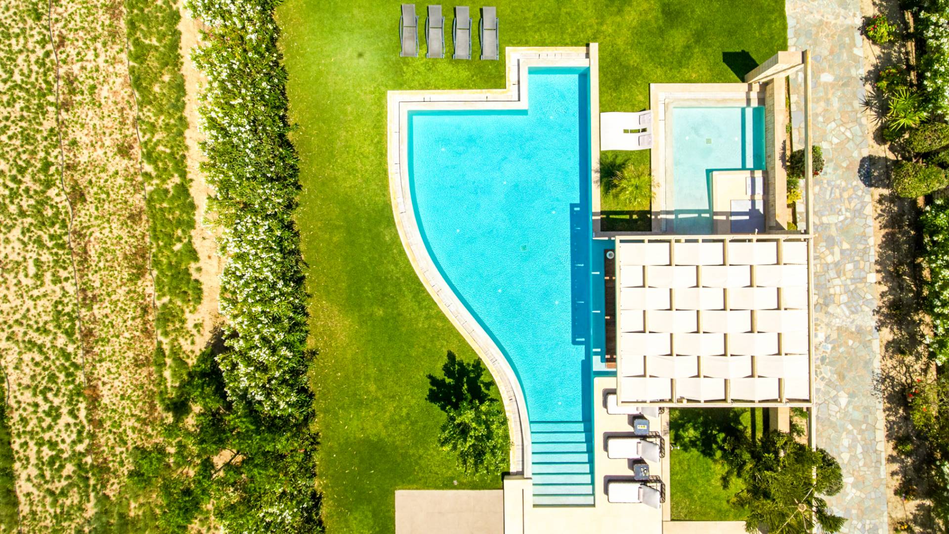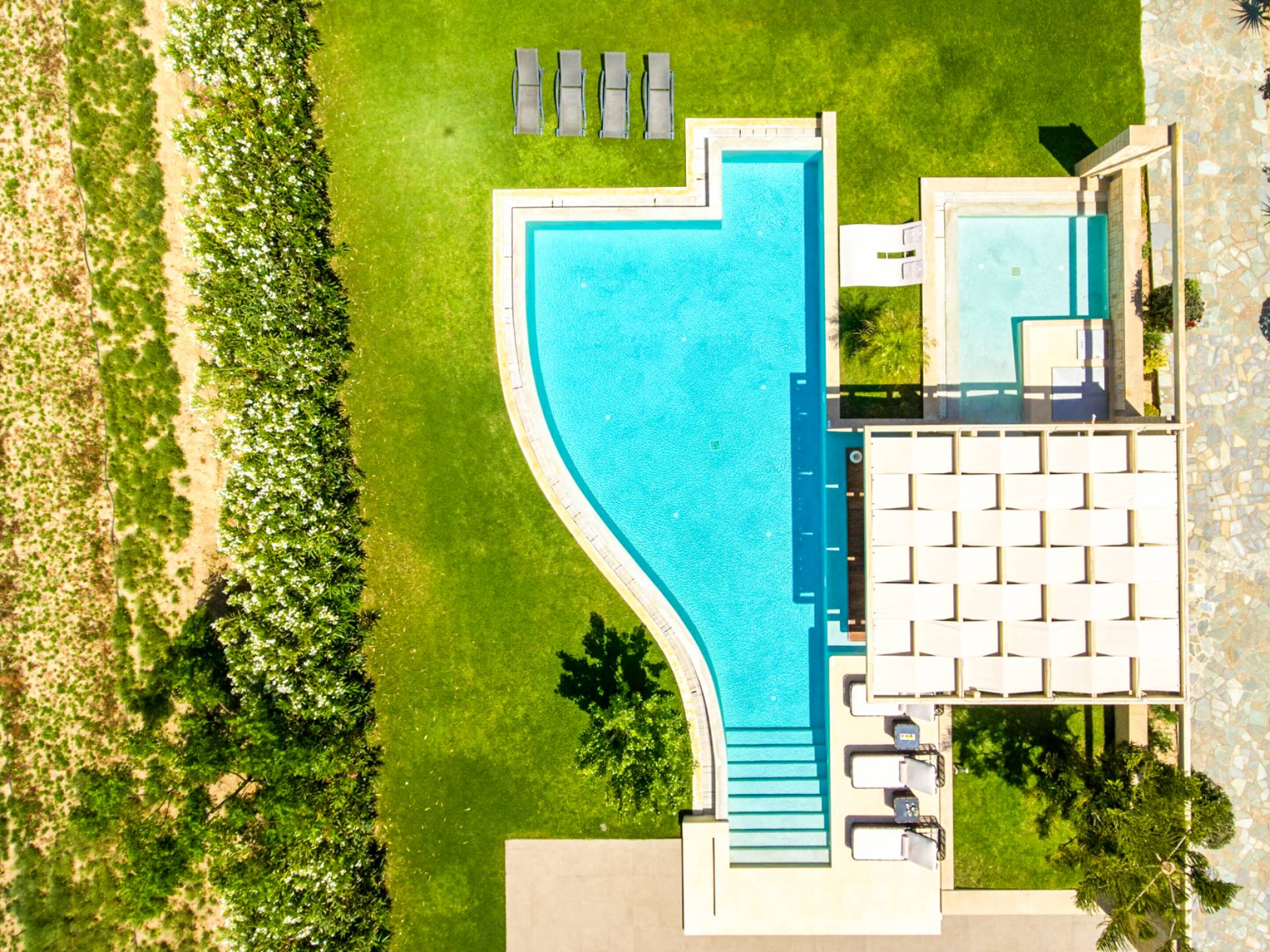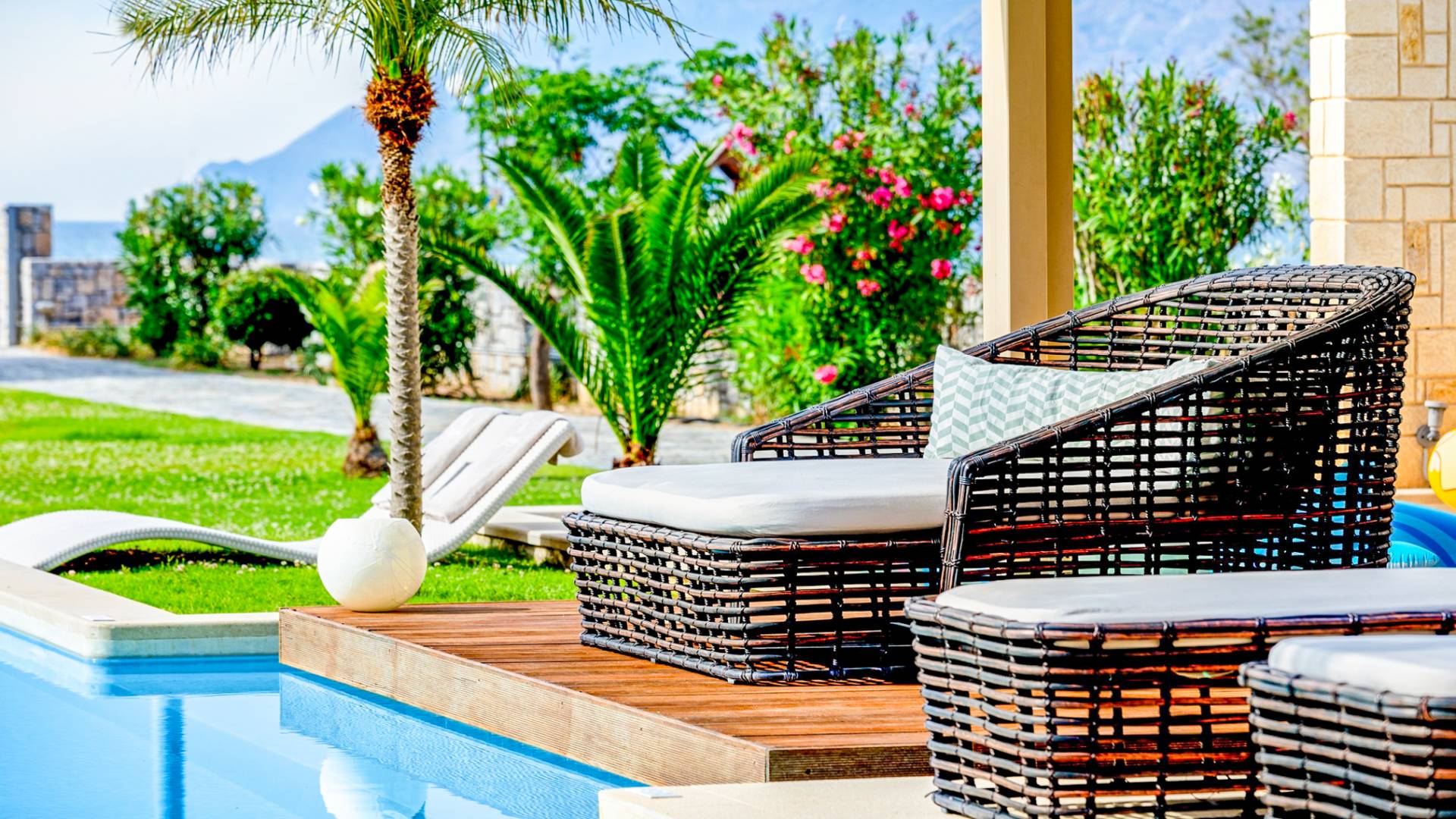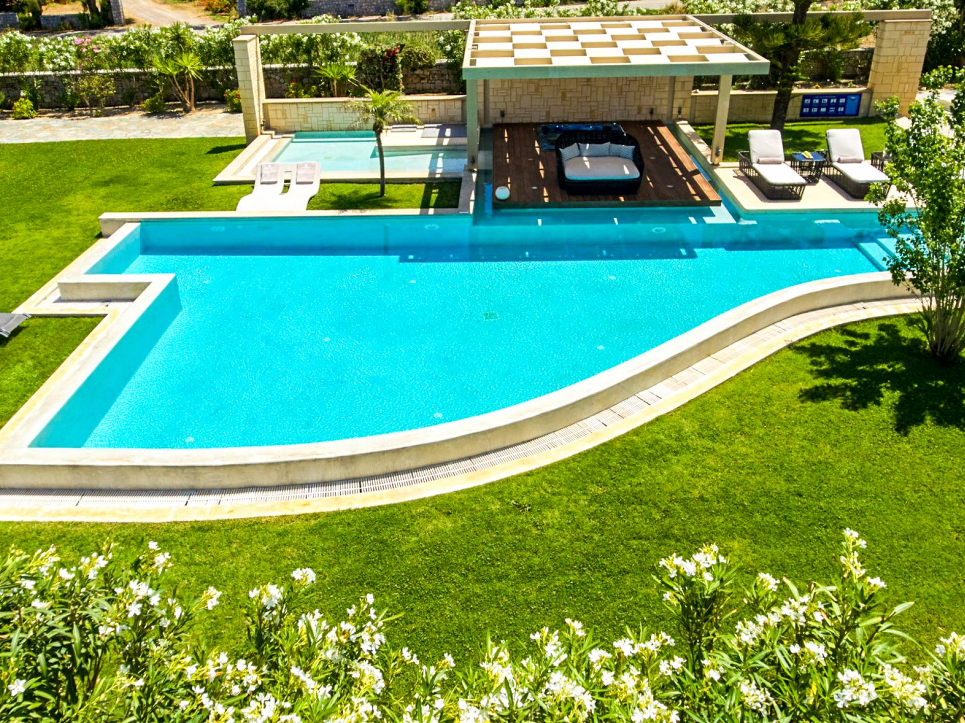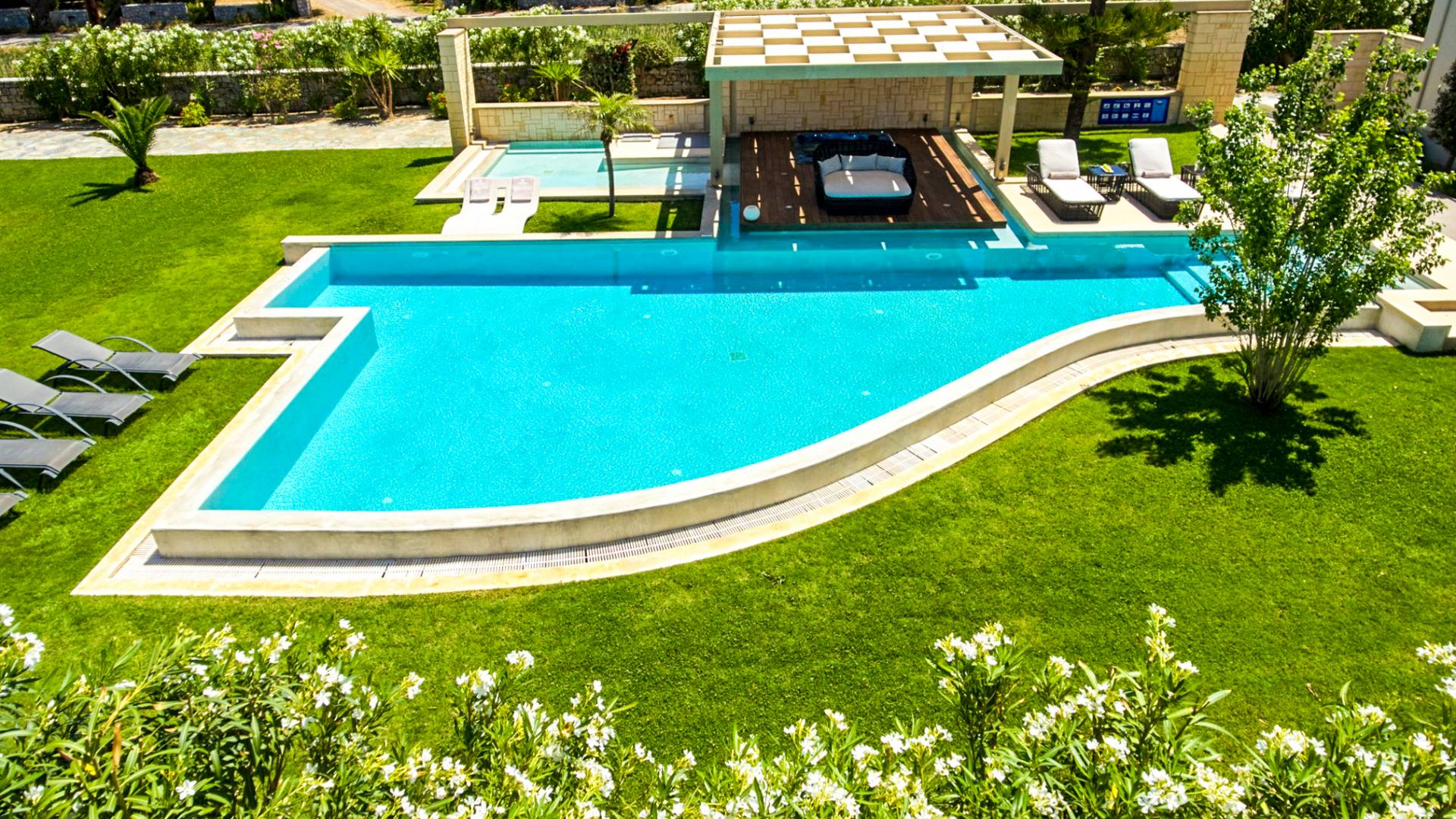 Die Elvina Villa Beachfront Chania ist für eine Gruppe von Freunden oder eine Familie geeignet. Es besteht aus 2 Etagen und umfasst hauptsächlich Open-Air-Bereiche, so dass Sie die frische Luft und die Meeresbrise spüren können, die überall vorherrscht. Die Pastellfarben, die dezente Dekoration des Interieurs sowie die modern und elegant eingerichteten Zimmer ergänzen das allgemeine Entspannungsgefühl. Elvina Villa Chania ermöglicht es Ihnen, entweder im 80 m2 großen Pool (12 m2 für Ihre Kinder) oder im Meer zu schwimmen und sich beim Blick auf den herrlichen Sonnenuntergang zu entspannen. Sie können Ihr Abendessen auch unter der Weinlaube eines Steingrills mit Meerblick genießen oder jederzeit einen Spaziergang durch den gepflegten Garten genießen.