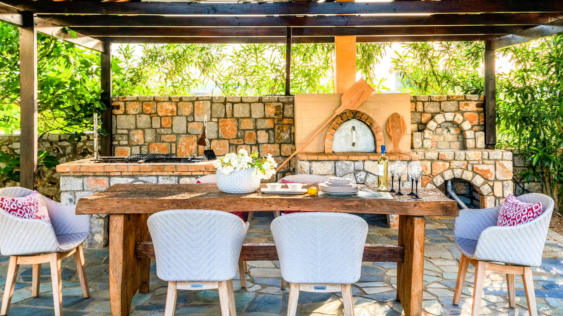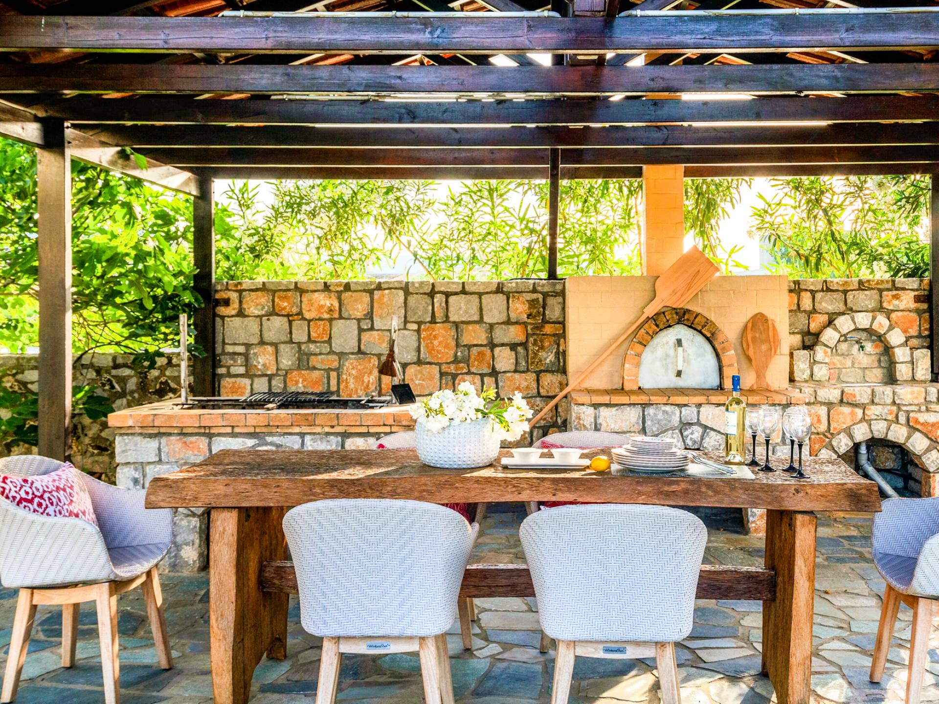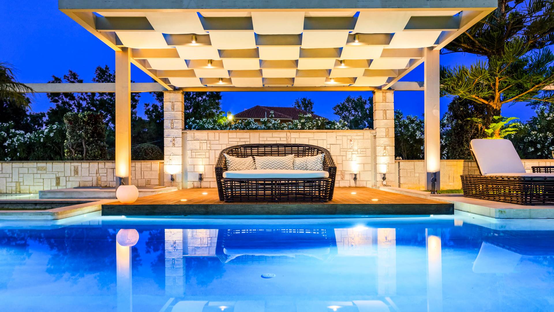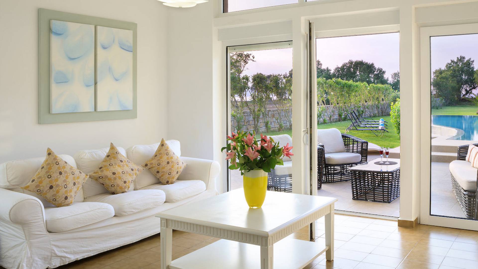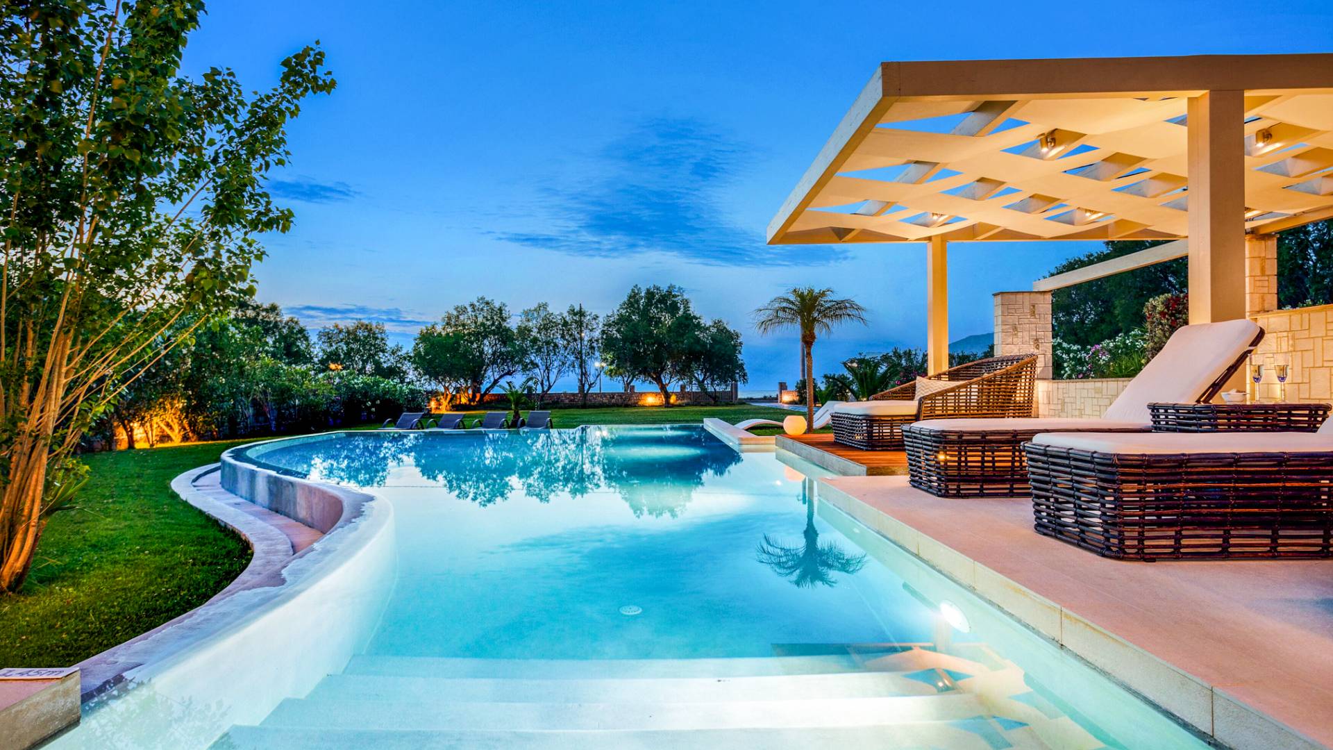 Die Elvina Villa Beachfront Chania ist für eine Gruppe von Freunden oder eine Familie geeignet. Es besteht aus 2 Etagen und umfasst hauptsächlich Open-Air-Bereiche, so dass Sie die frische Luft und die Meeresbrise spüren können, die überall vorherrscht. Die Pastellfarben, die dezente Dekoration des Interieurs sowie die modern und elegant eingerichteten Zimmer ergänzen das allgemeine Entspannungsgefühl. Elvina Villa Chania ermöglicht es Ihnen, entweder im 80 m2 großen Pool (12 m2 für Ihre Kinder) oder im Meer zu schwimmen und sich beim Blick auf den herrlichen Sonnenuntergang zu entspannen. Sie können Ihr Abendessen auch unter der Weinlaube eines Steingrills mit Meerblick genießen oder jederzeit einen Spaziergang durch den gepflegten Garten genießen.