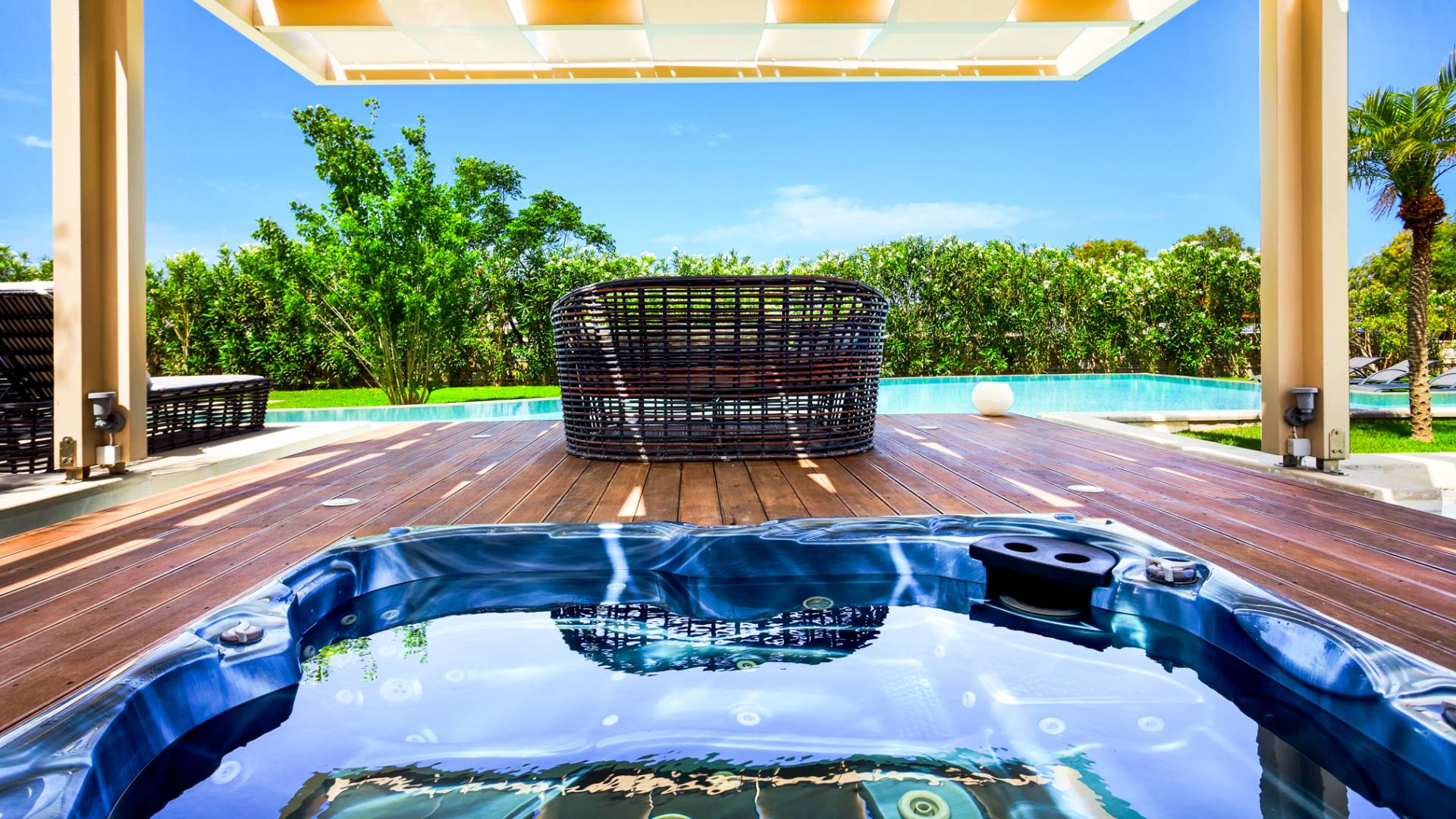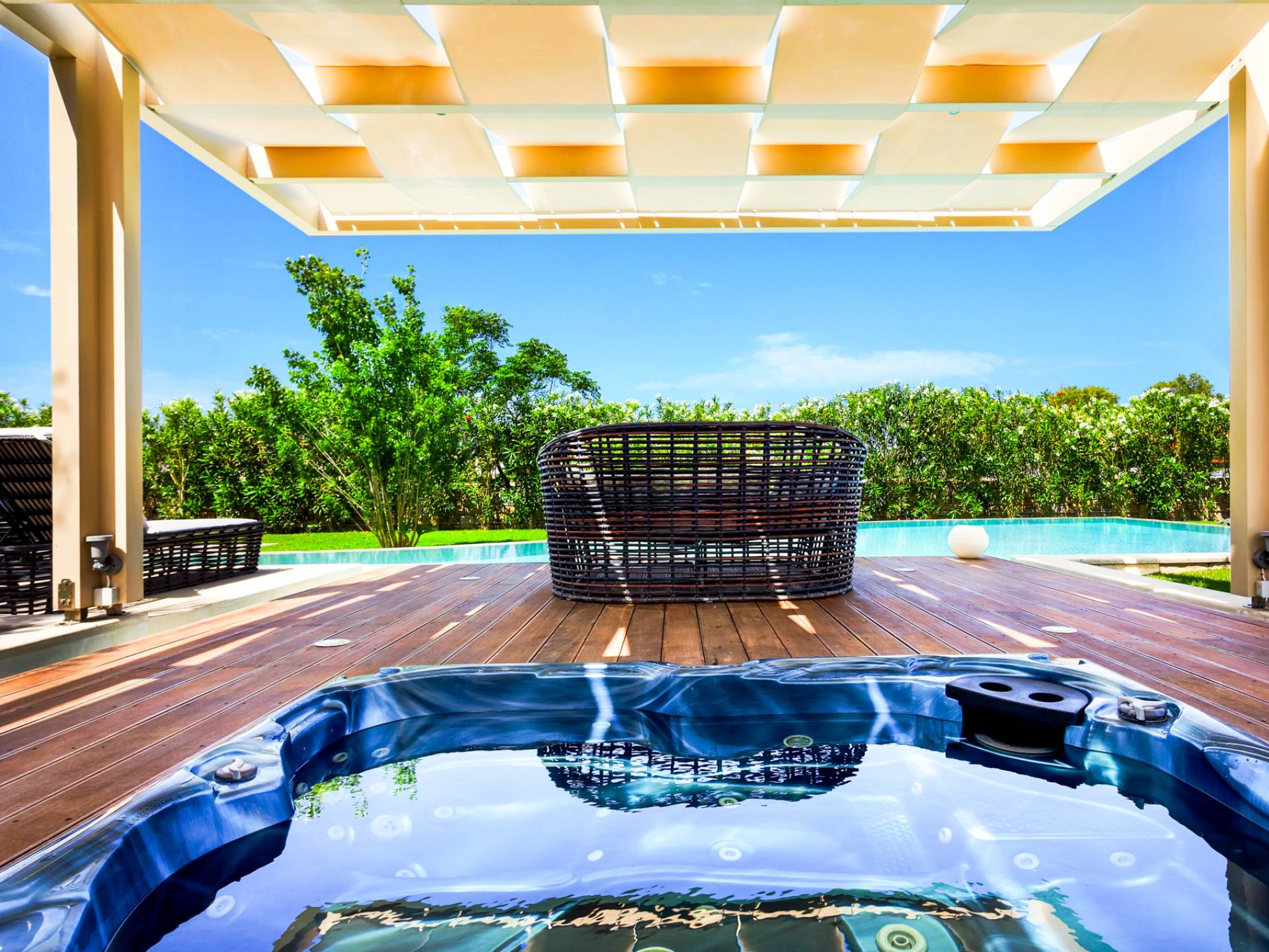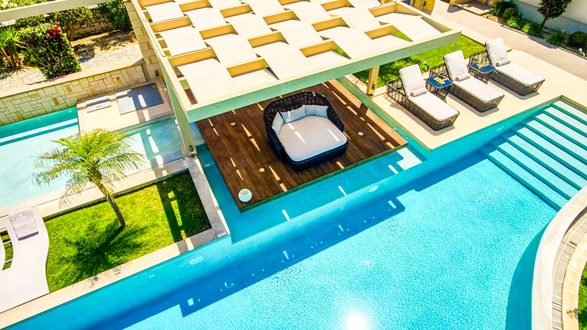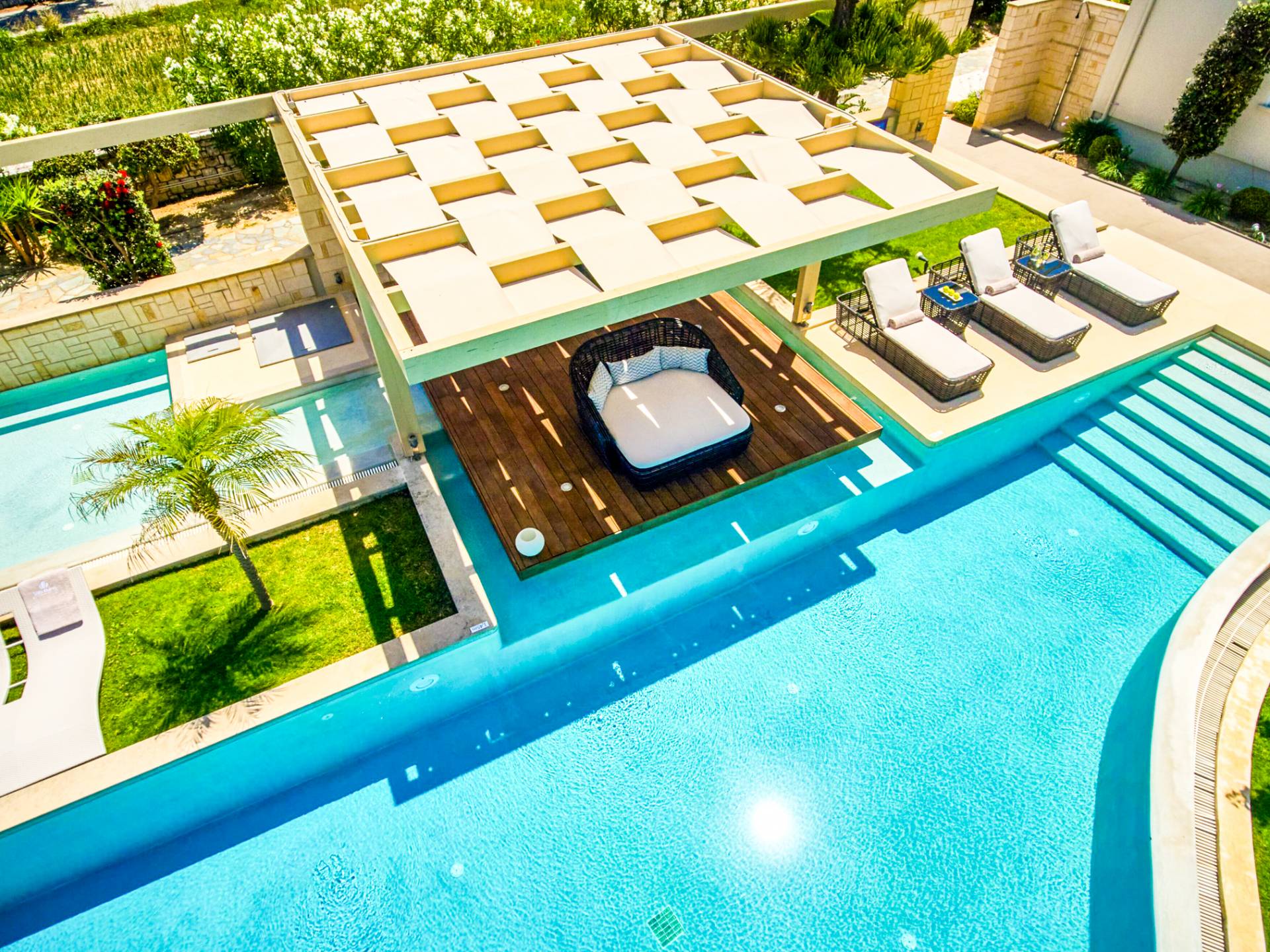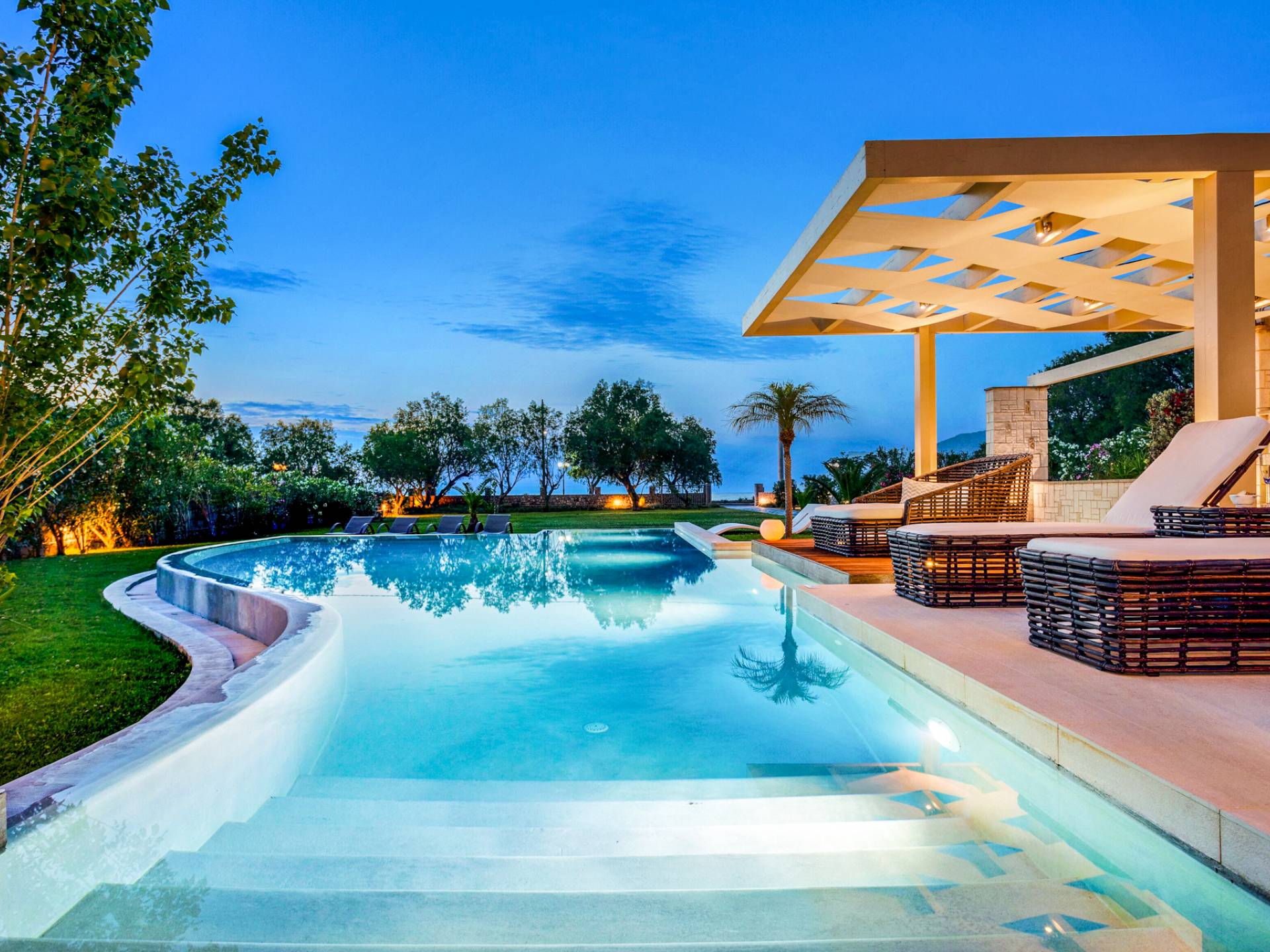 Die einzigartige Architektur der Villa, deren Hauptmerkmal der atemberaubende Meerblick ist, zusammen mit einer besonders dezenten Inneneinrichtung, die speziell auf die unterschiedlichsten Bedürfnisse zugeschnitten ist, soll Ihnen faszinierende Erlebnisse und Momente der Entspannung bieten mit Meer, Sonne und erfrischender frischer Luft.