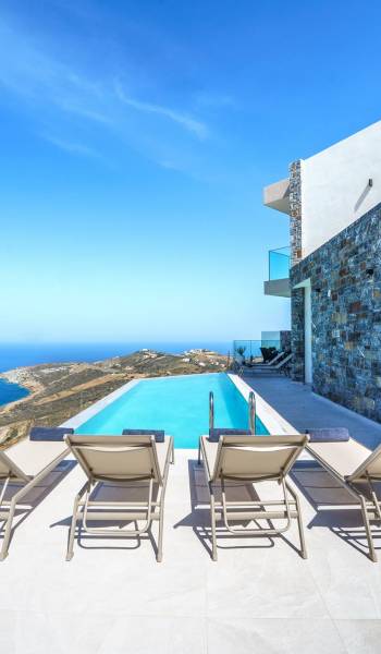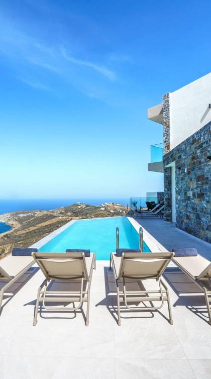 Ιδιαίτερα δημοφιλείς είναι οι πολυτελείς βίλες, πολλές από τις οποίες βρίσκονται στους λόφους με πανοραμική θέα στο πέλαγος. Διαθέτουν ιδιωτικές πισίνες, μεγάλες βεράντες με σκιά, απόλυτη ιδιωτικότητα και όλες τις ανέσεις για μια ξεχωριστή διαμονή.
