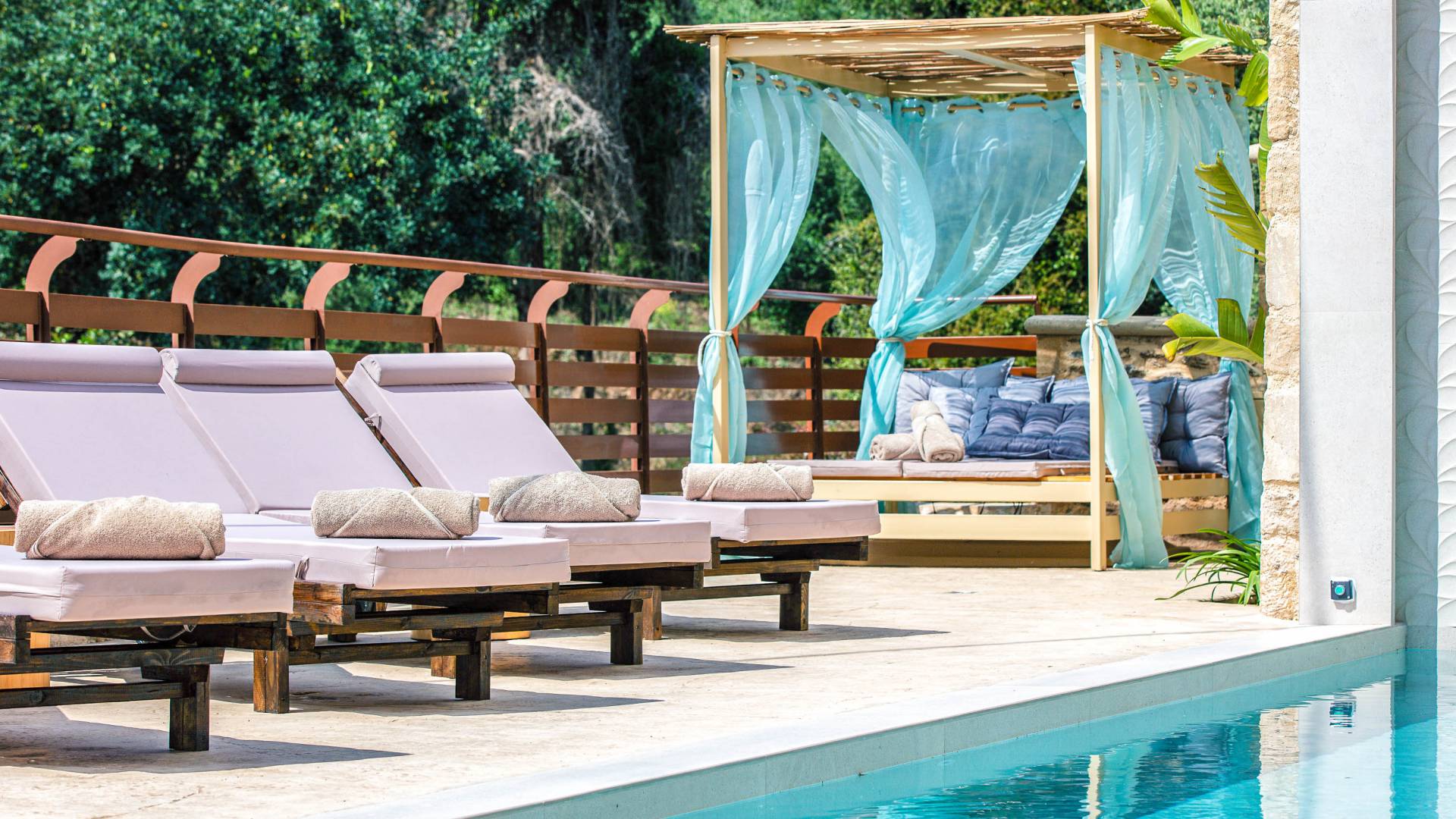 Venture outdoors, and you'll discover your own private oasis. A sparkling pool awaits, inviting you to cool off during the sun-drenched days. The meticulously landscaped garden creates a picturesque backdrop, offering a serene environment for relaxation and unwinding. Lounge on comfortable sunbeds, bask in the warm rays of the sun, or simply revel in the natural beauty that surrounds you.