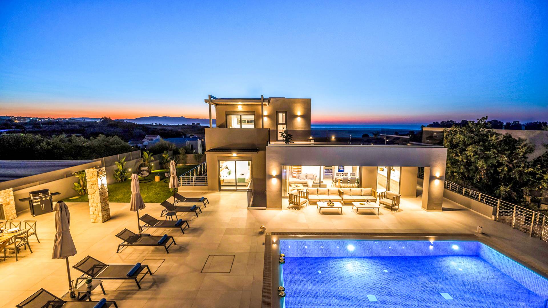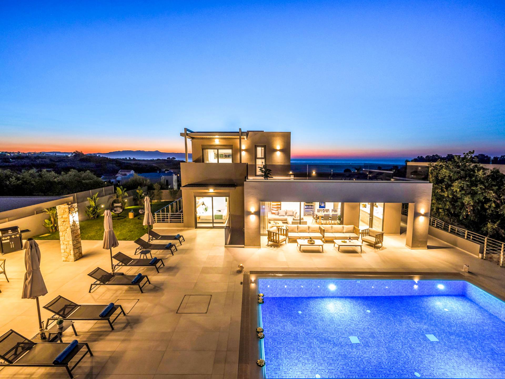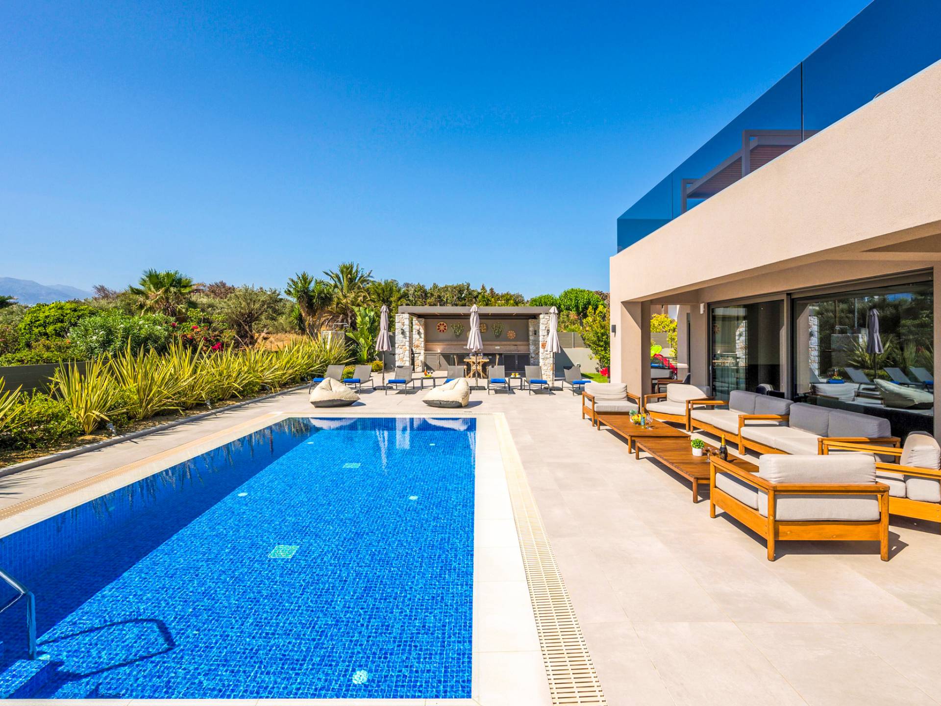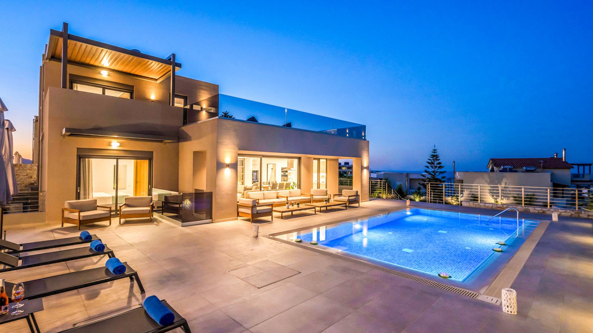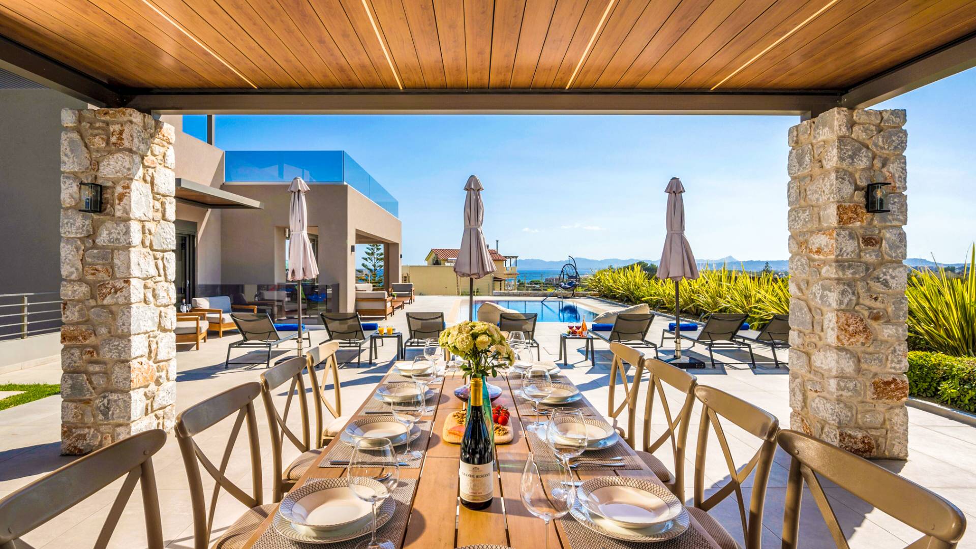Designed for larger groups and families, the villa delivers state-of-the-art amenities, 5-star facilities, and generous indoor-outdoor spaces — creating the ideal setting for comfort, relaxation, and unforgettable shared moments in Crete.