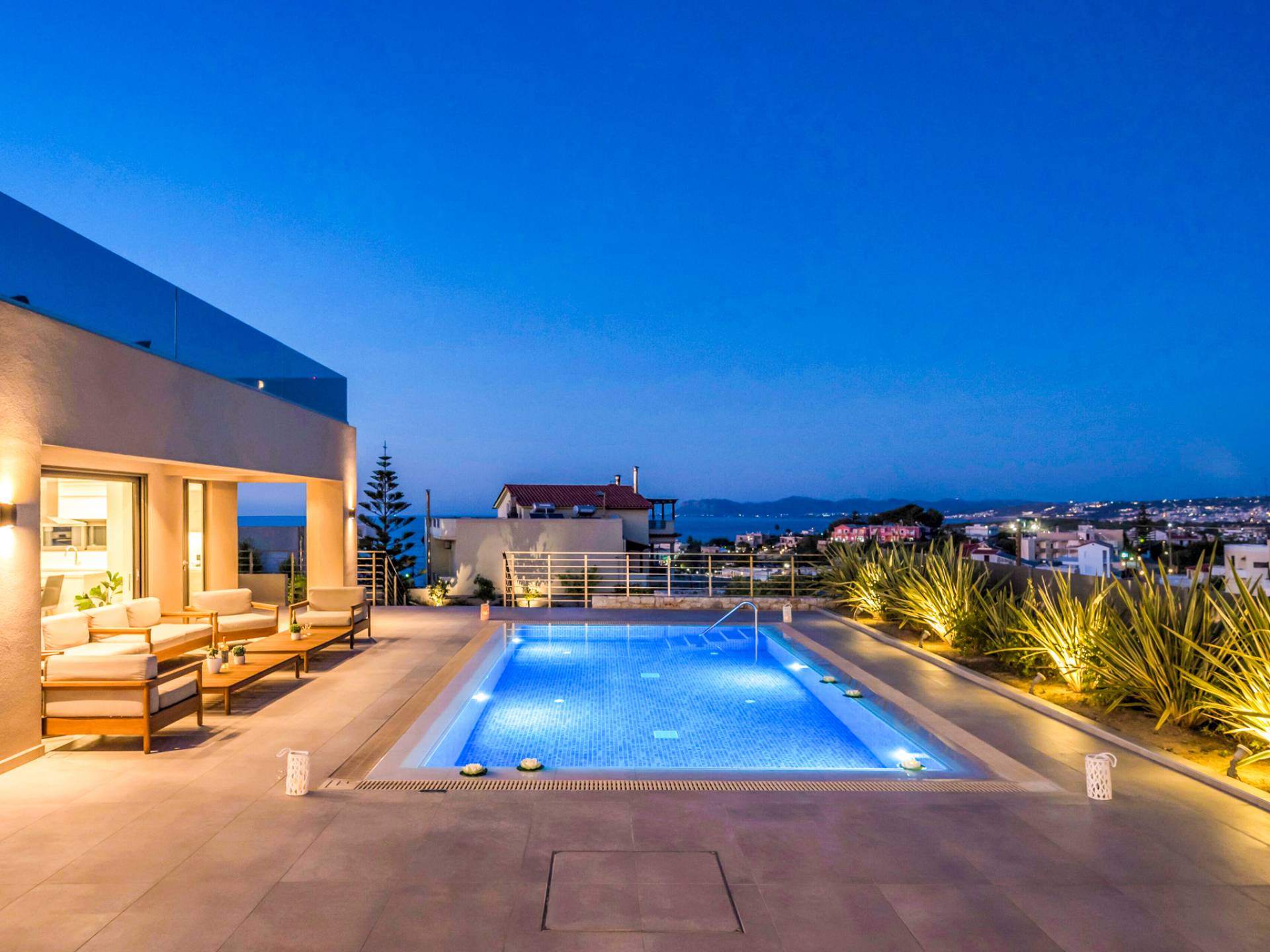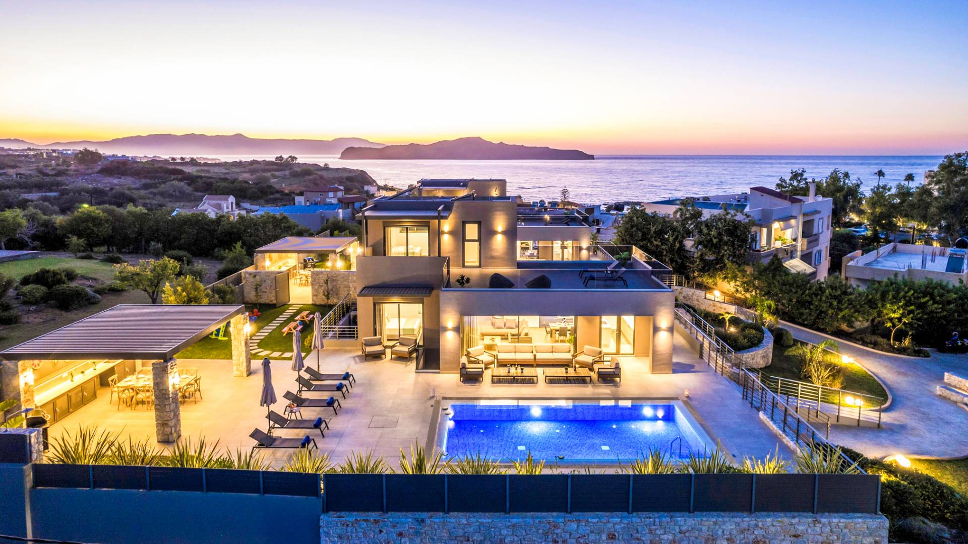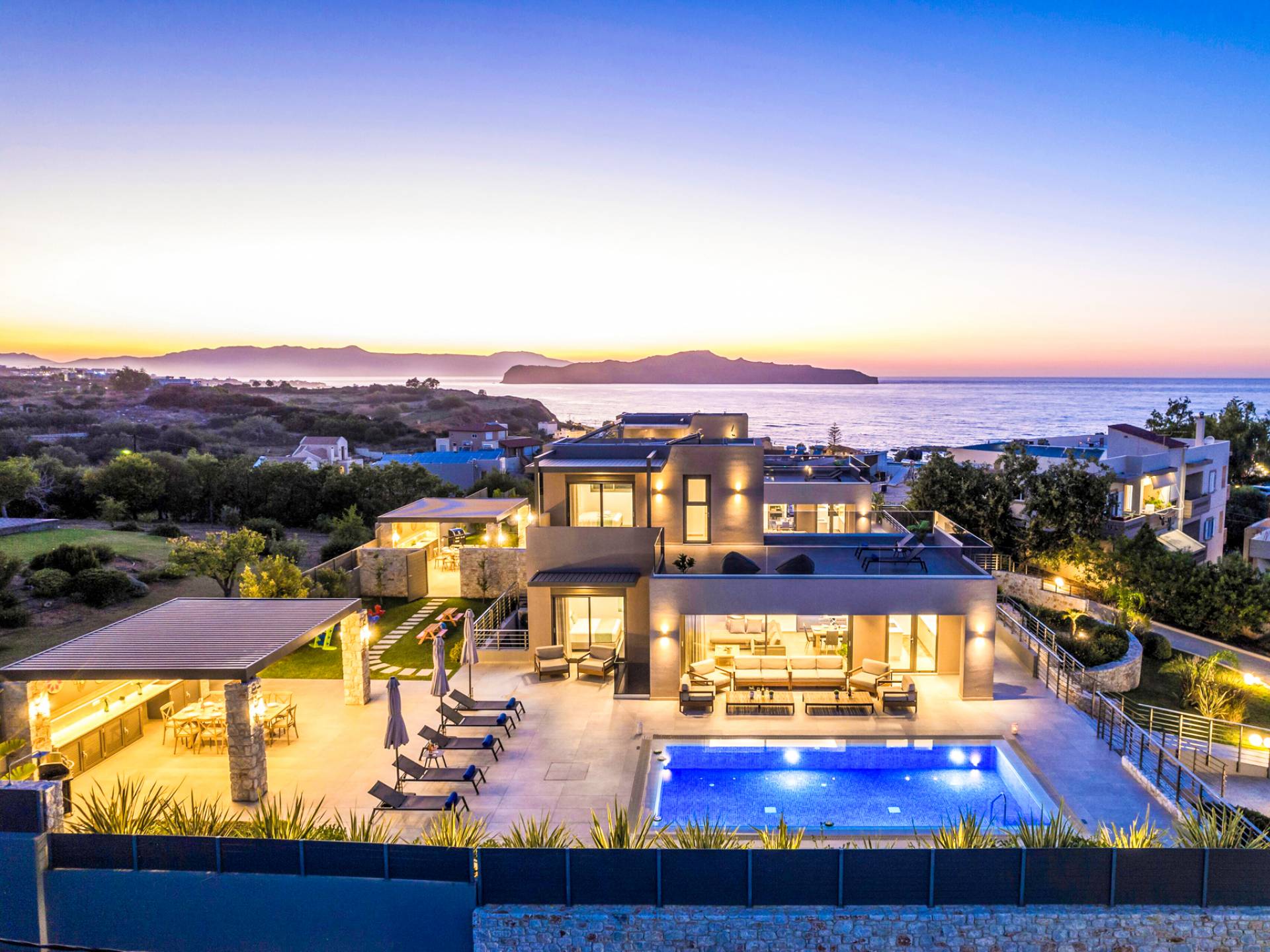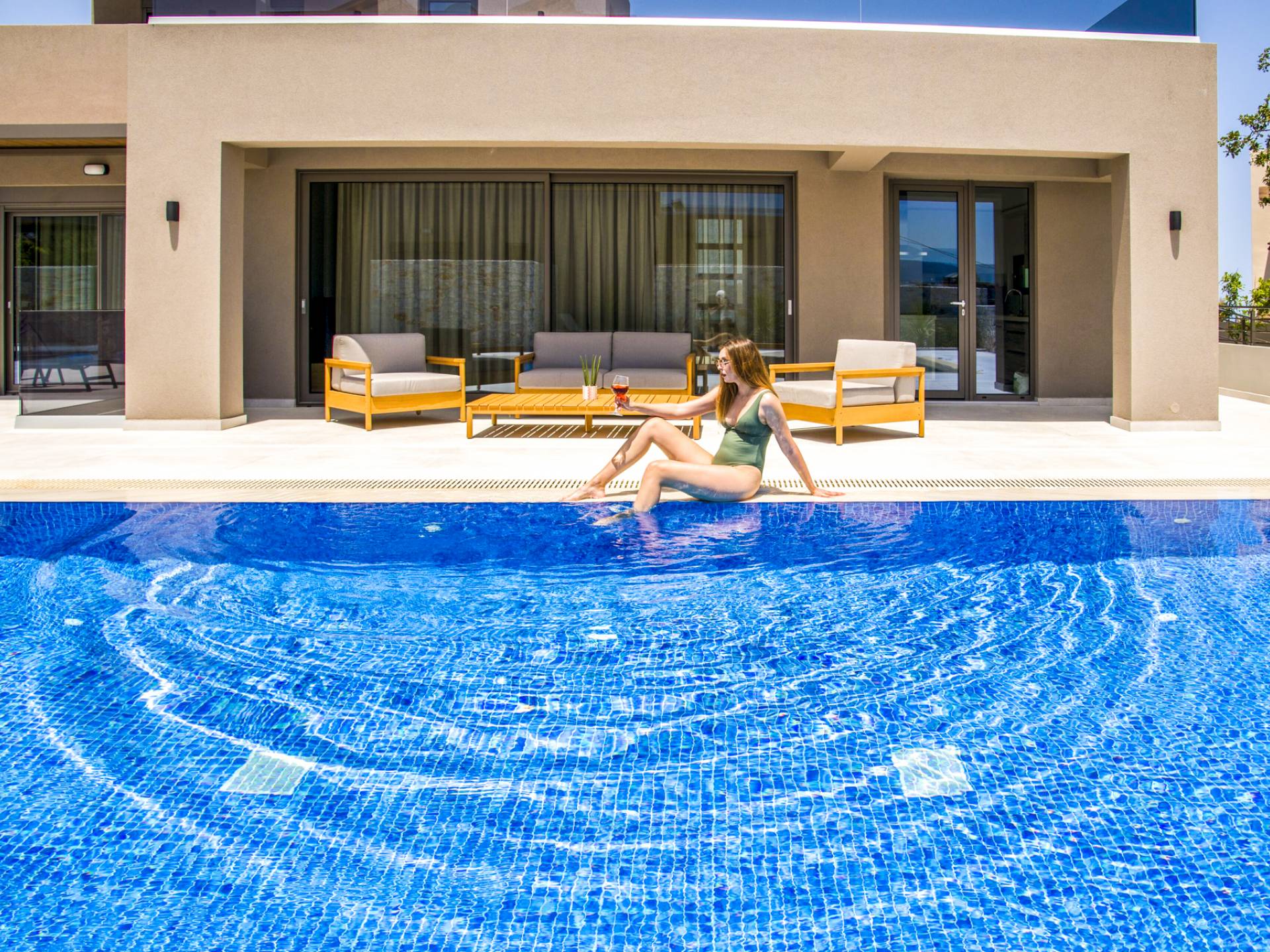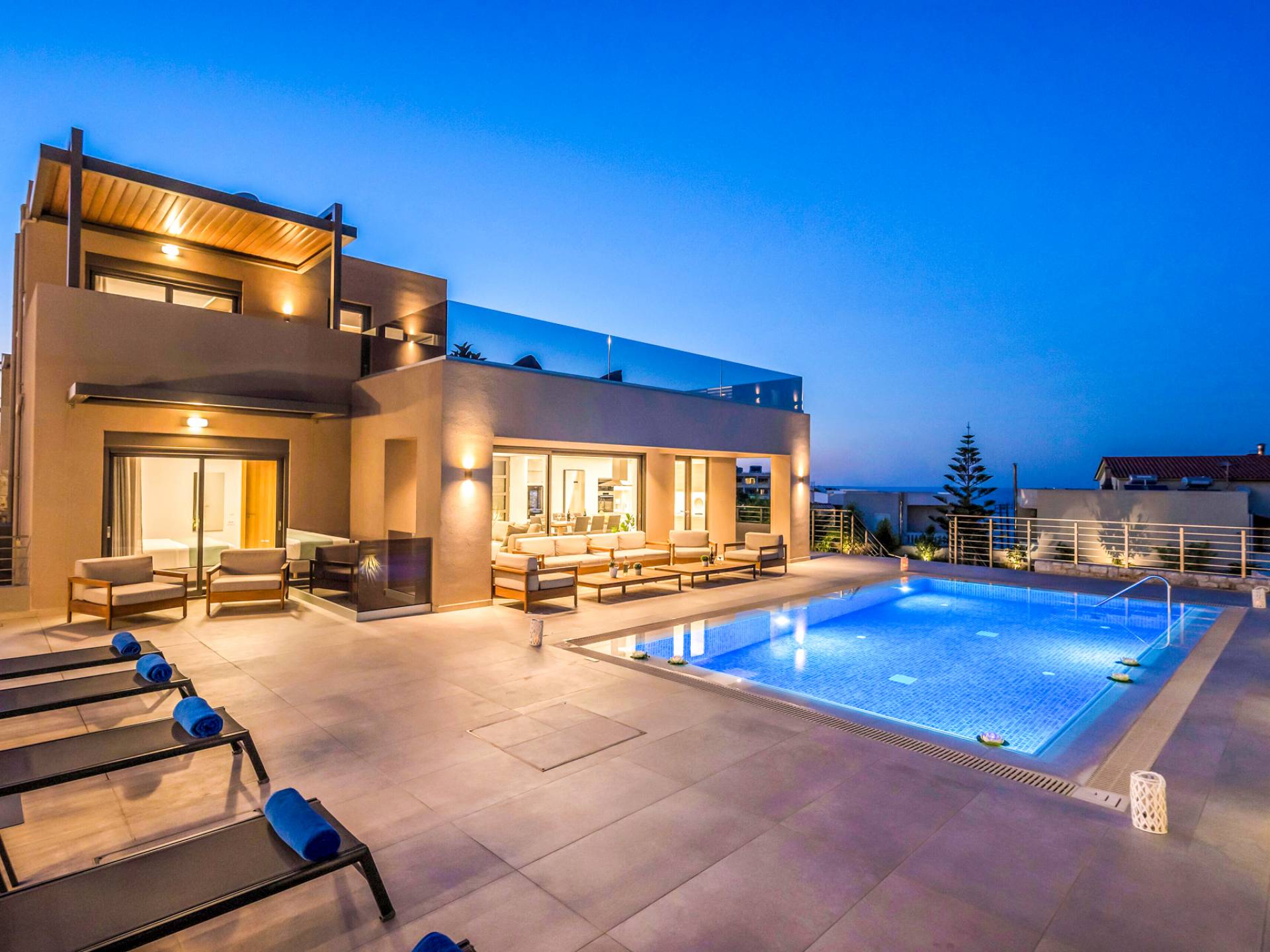 Designed for larger groups and families, the villa delivers state-of-the-art amenities, 5-star facilities, and generous indoor-outdoor spaces — creating the ideal setting for comfort, relaxation, and unforgettable shared moments in Crete.