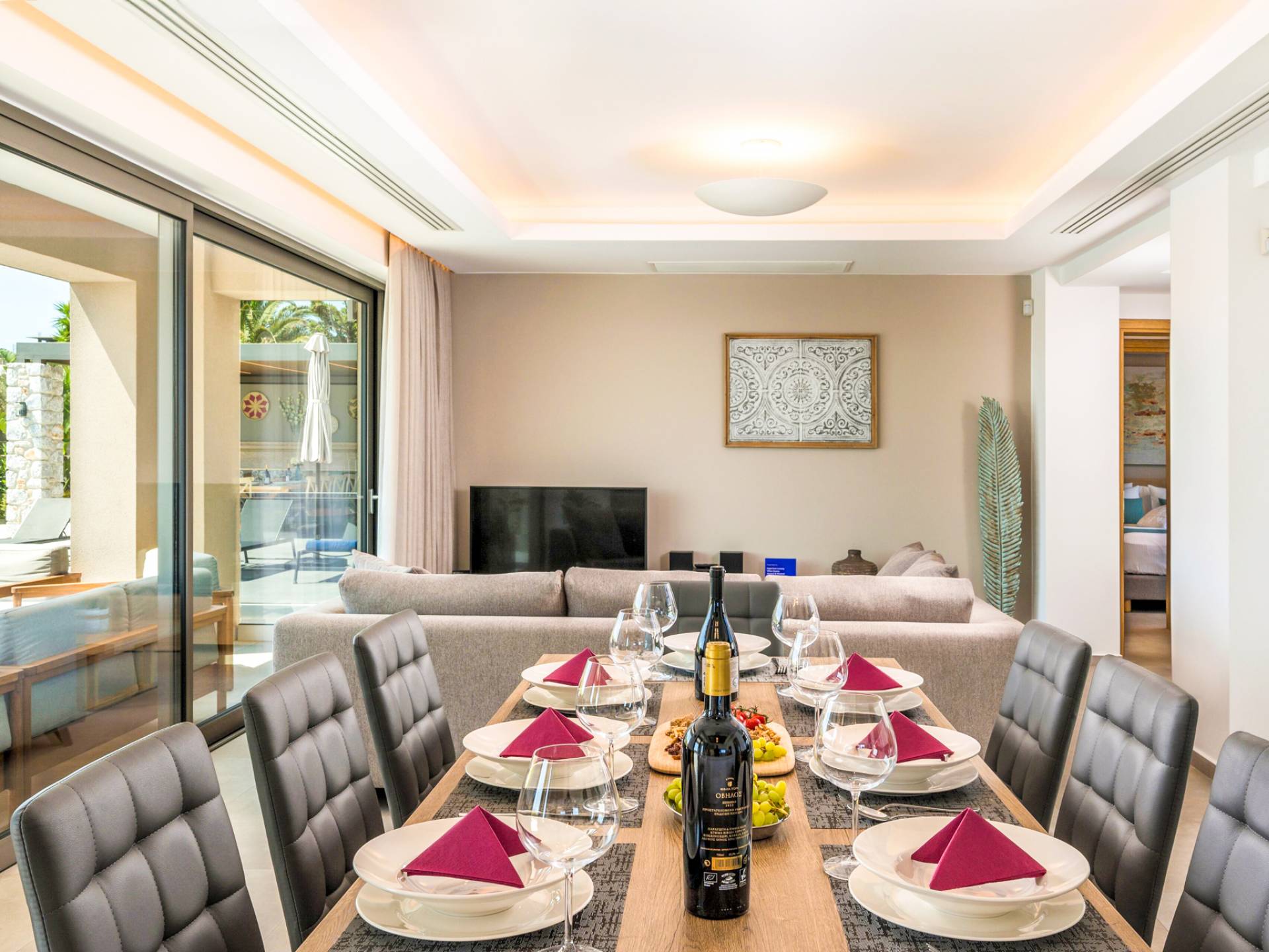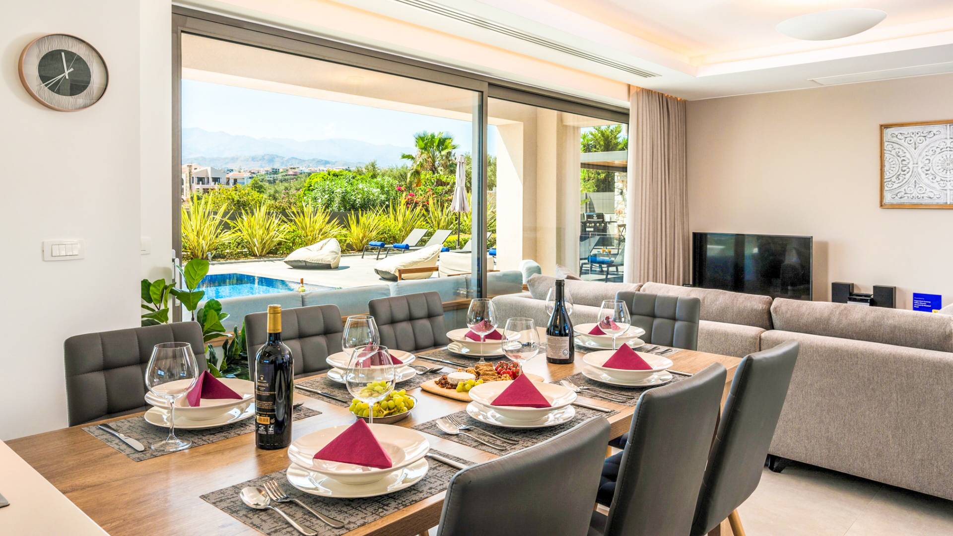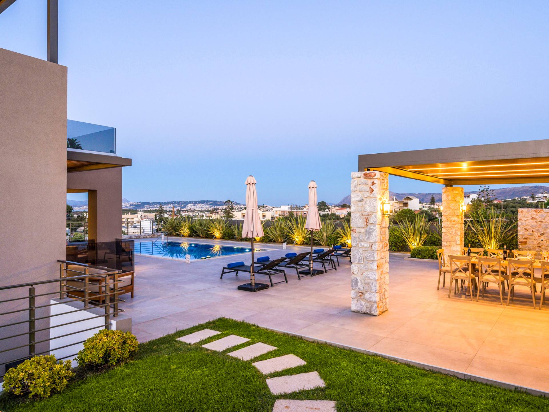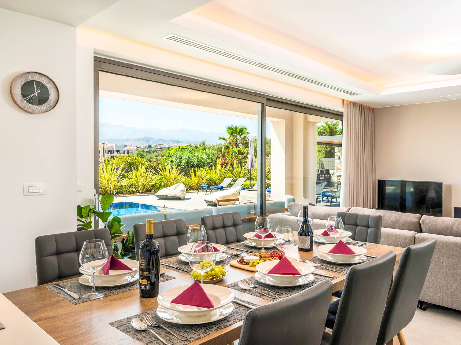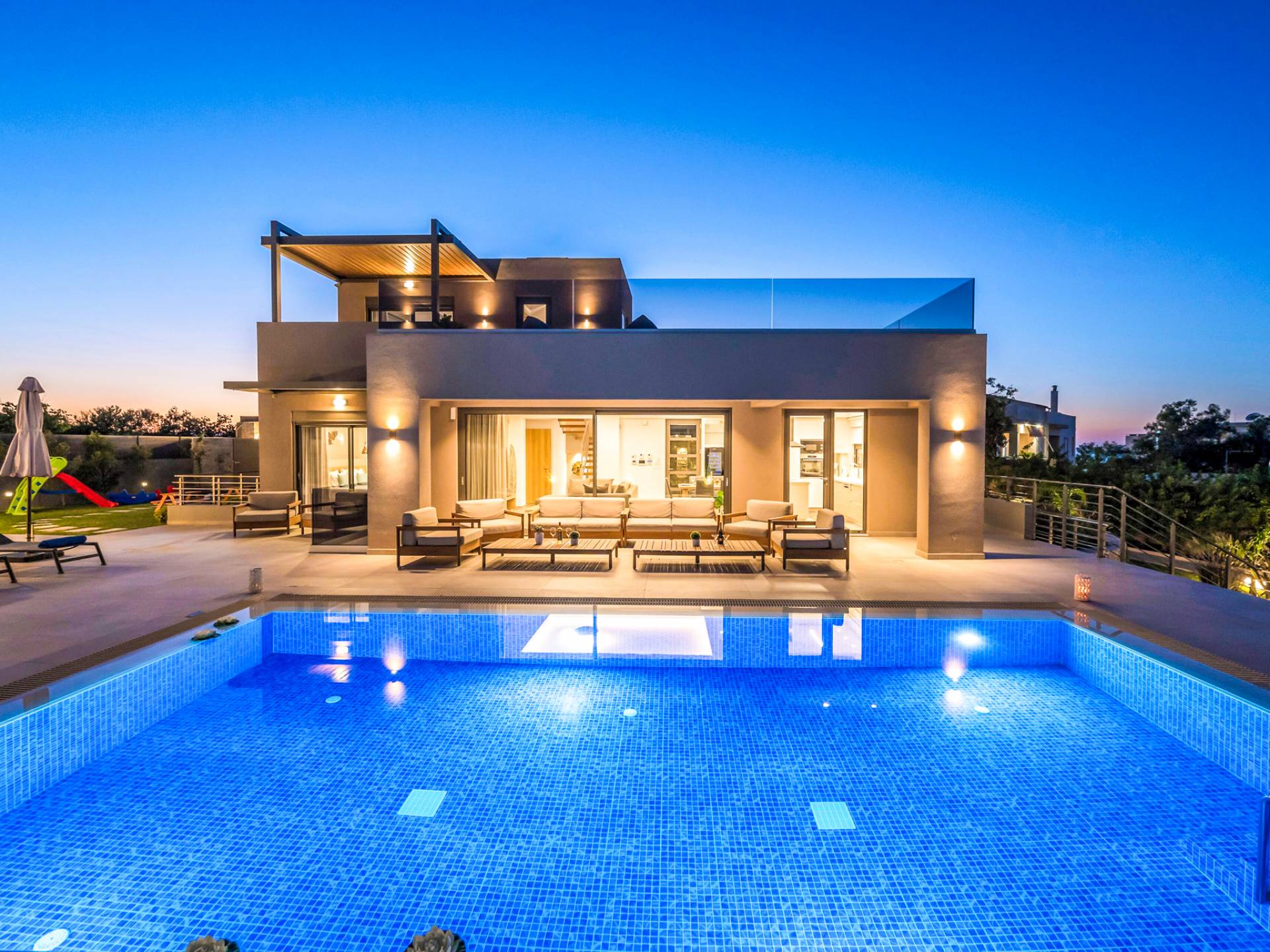 Designed for larger groups and families, the villa delivers state-of-the-art amenities, 5-star facilities, and generous indoor-outdoor spaces — creating the ideal setting for comfort, relaxation, and unforgettable shared moments in Crete.