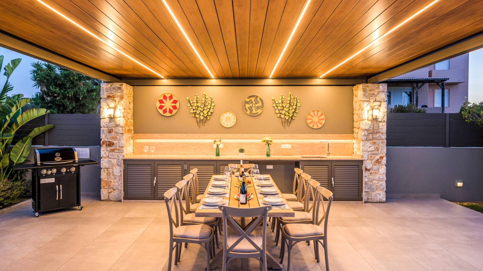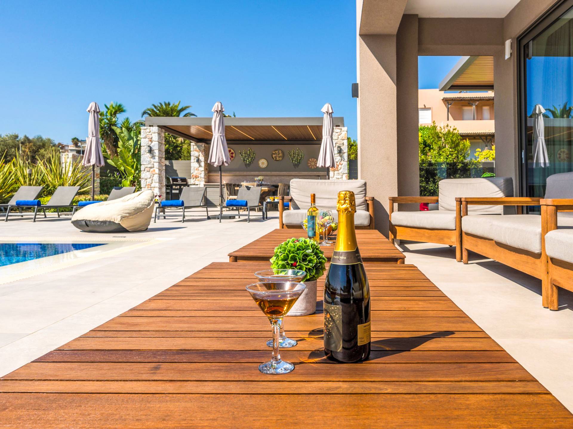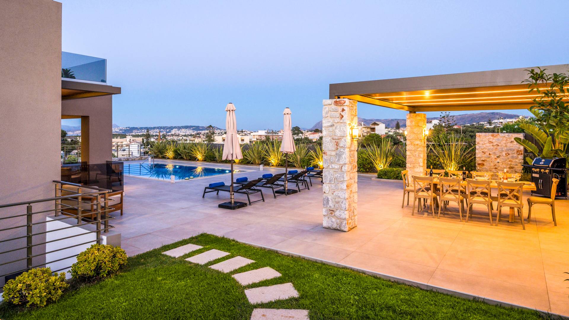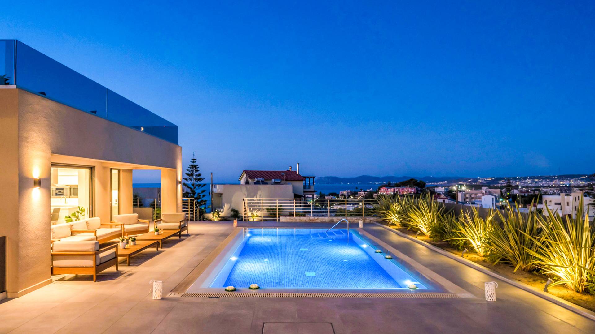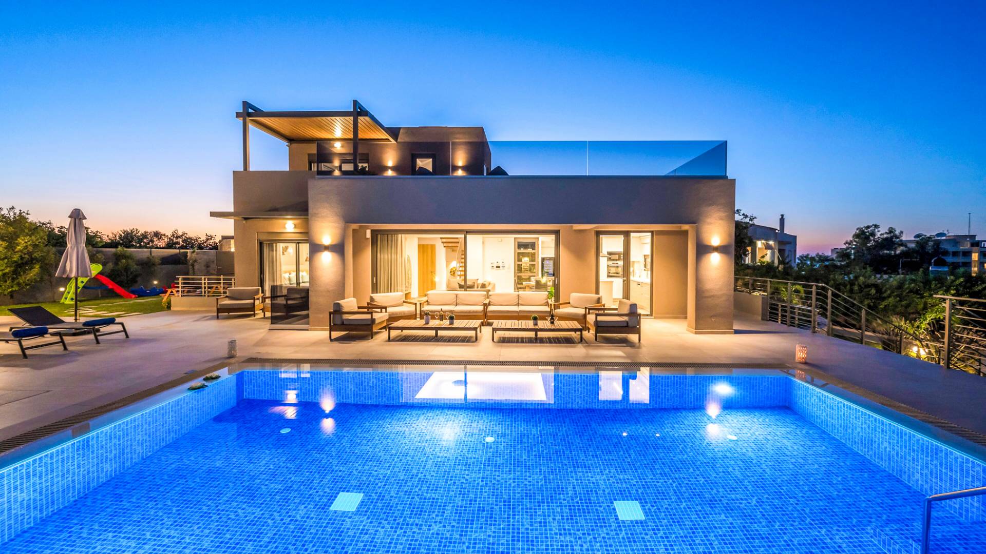 Designed for larger groups and families, the villa delivers state-of-the-art amenities, 5-star facilities, and generous indoor-outdoor spaces — creating the ideal setting for comfort, relaxation, and unforgettable shared moments in Crete.