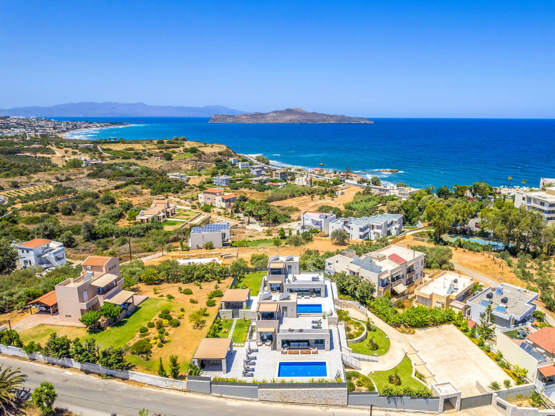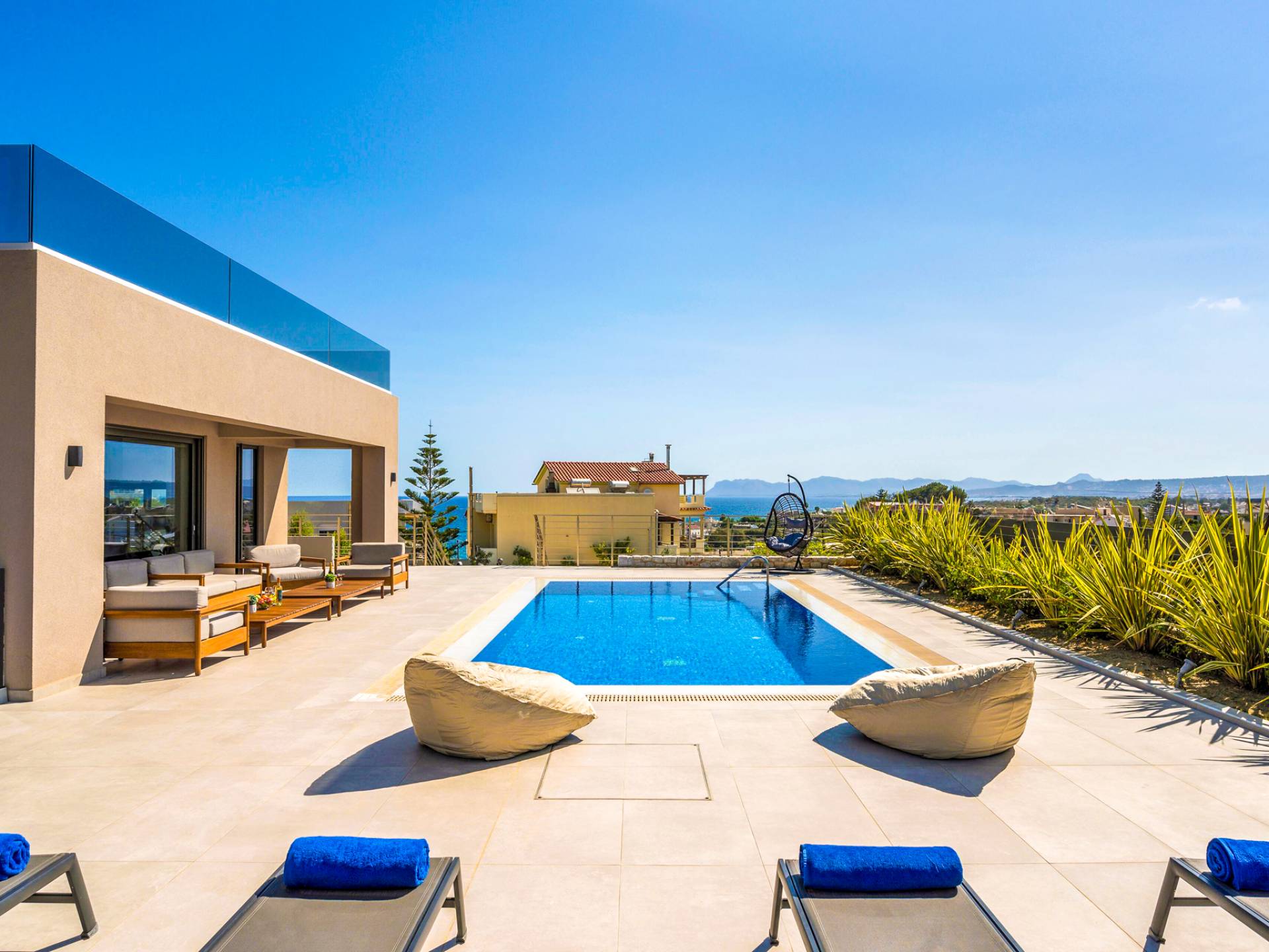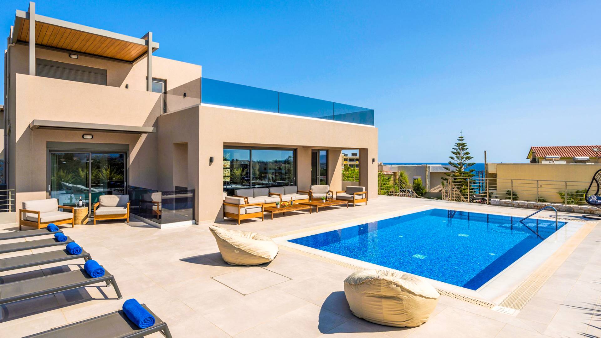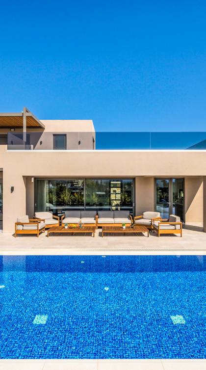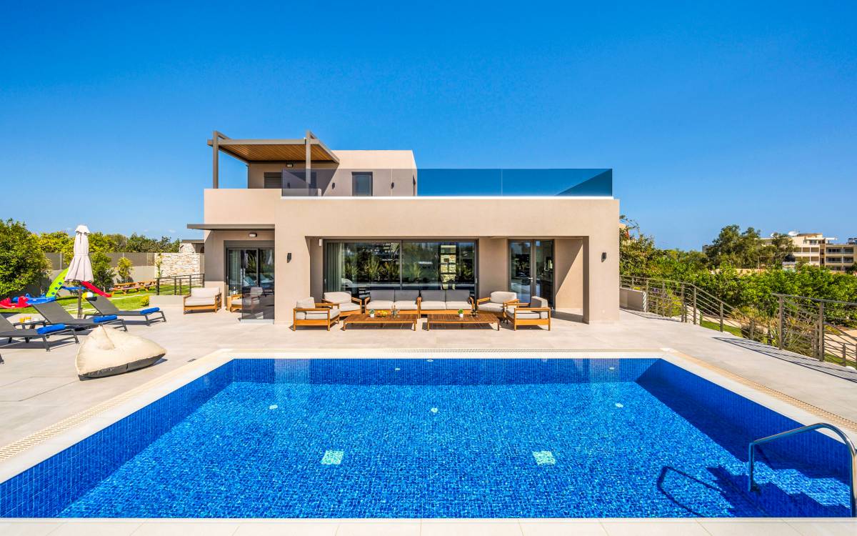 Neos Retreat 1 Chania - A breathtaking retreat just 300m from the sandy beach. Ideal for families, this elegant getaway offers a heated pool and modern comforts. Enjoy effortless access to crystal waters, restaurants & cafes just a short stroll away, is the perfect place for an unforgettable stay