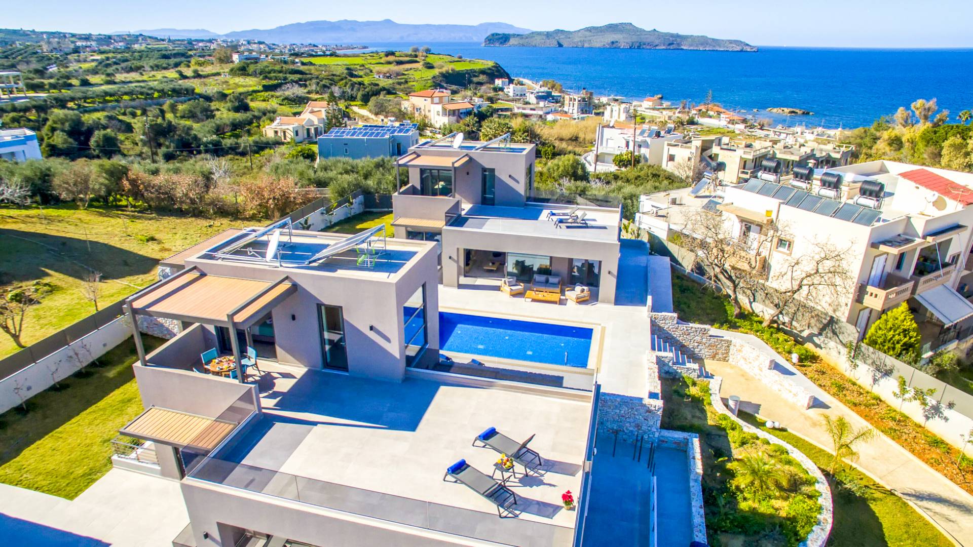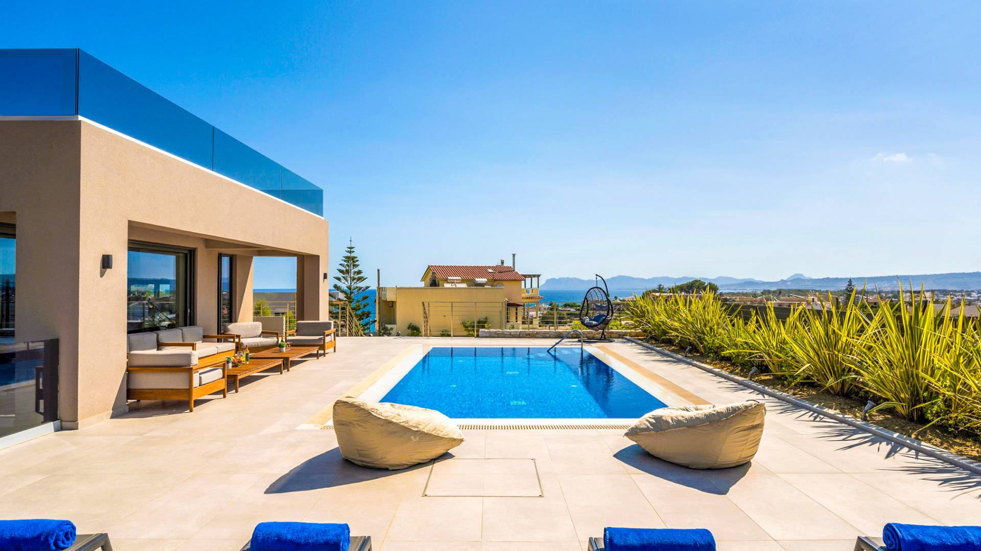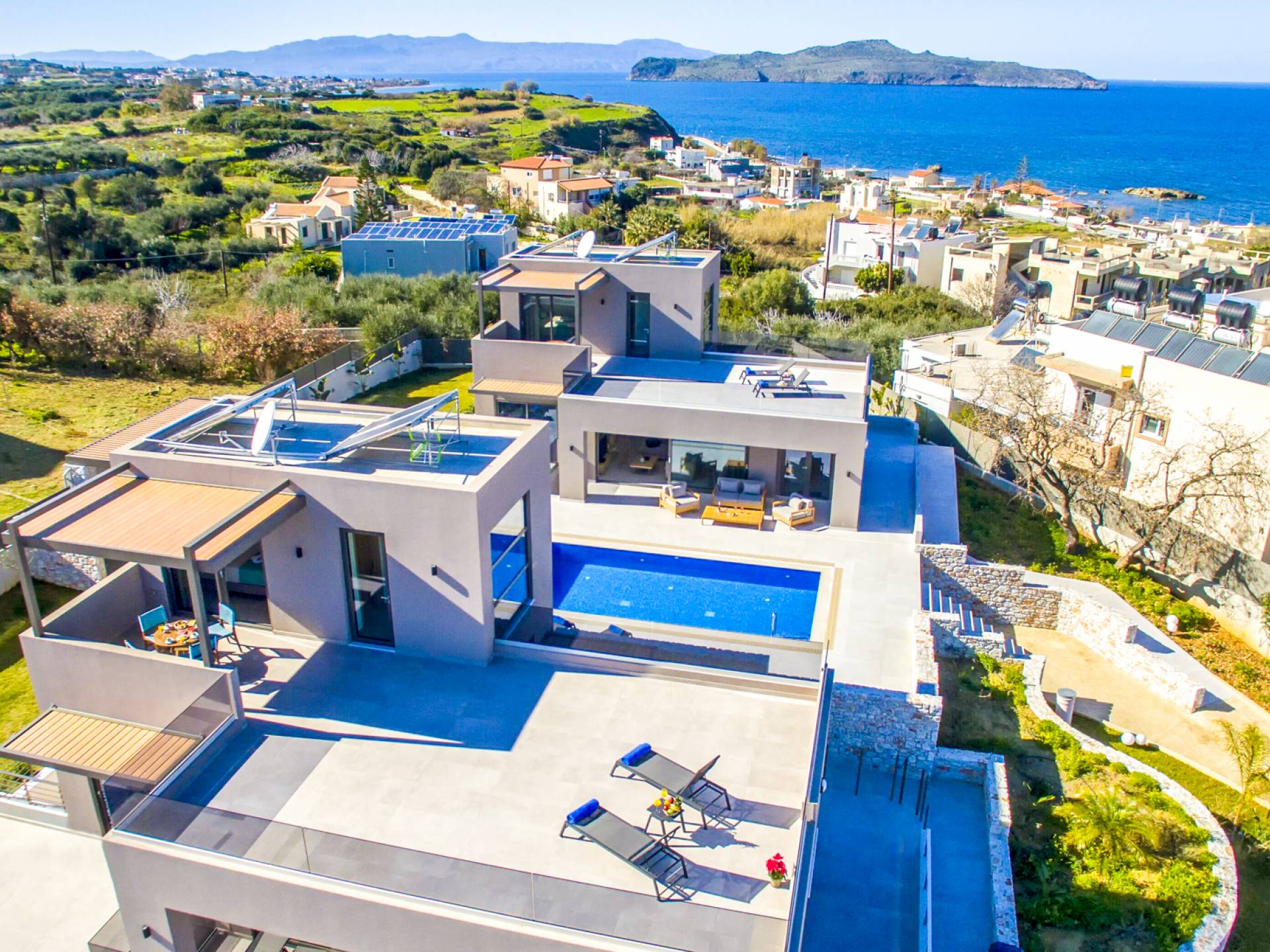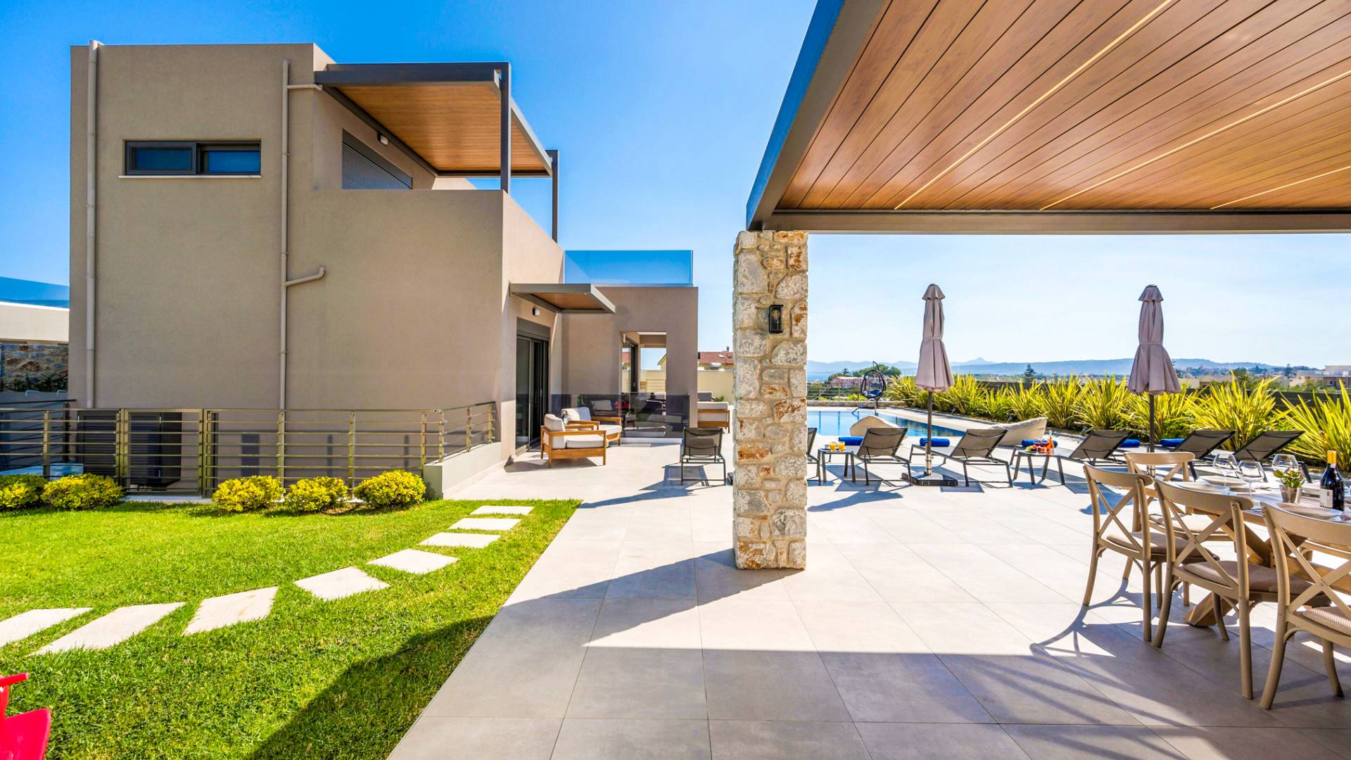 Neos Retreat 1 Chania - A breathtaking retreat just 300m from the sandy beach. Ideal for families, this elegant getaway offers a heated pool and modern comforts. Enjoy effortless access to crystal waters, restaurants & cafes just a short stroll away, is the perfect place for an unforgettable stay