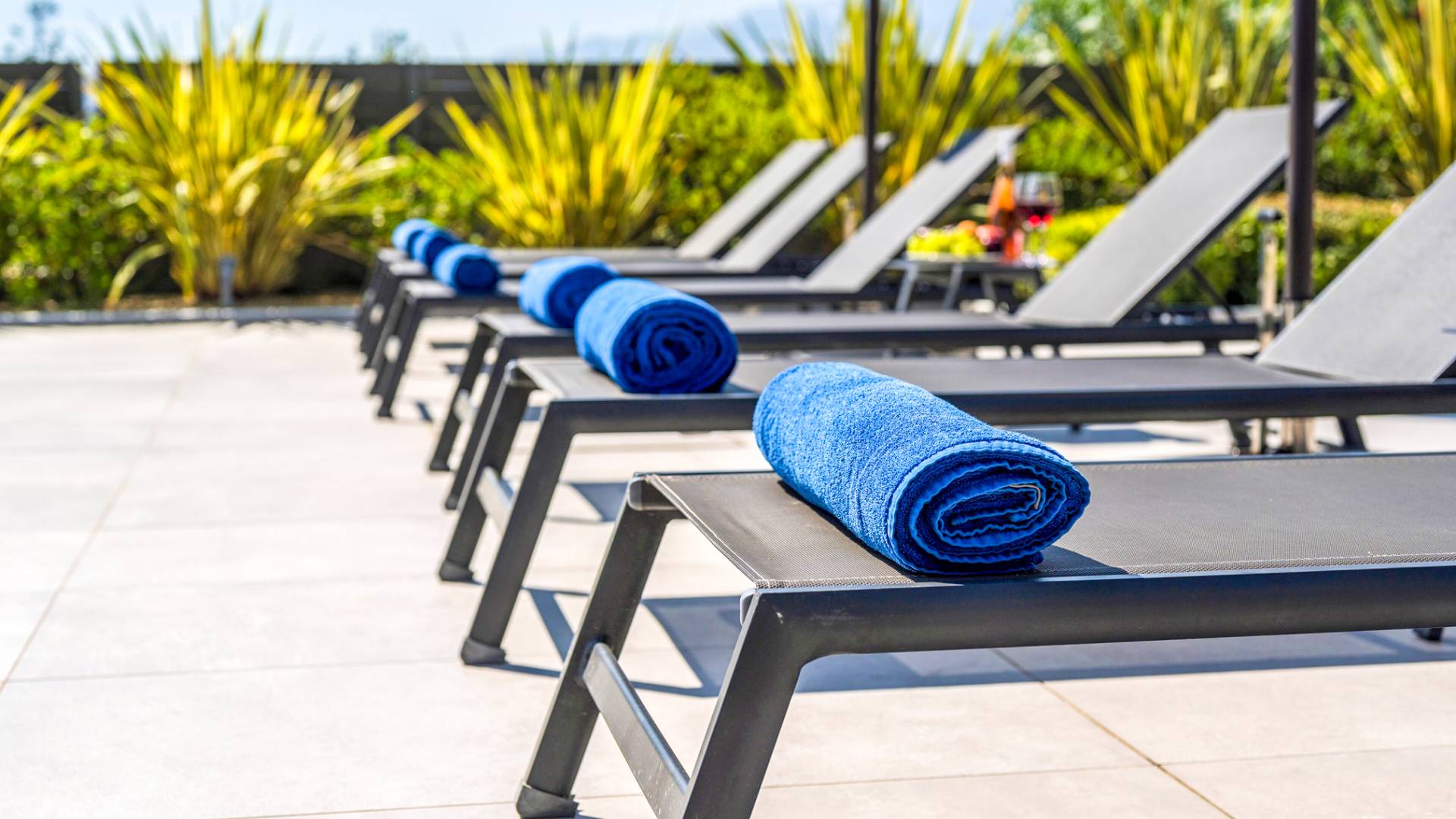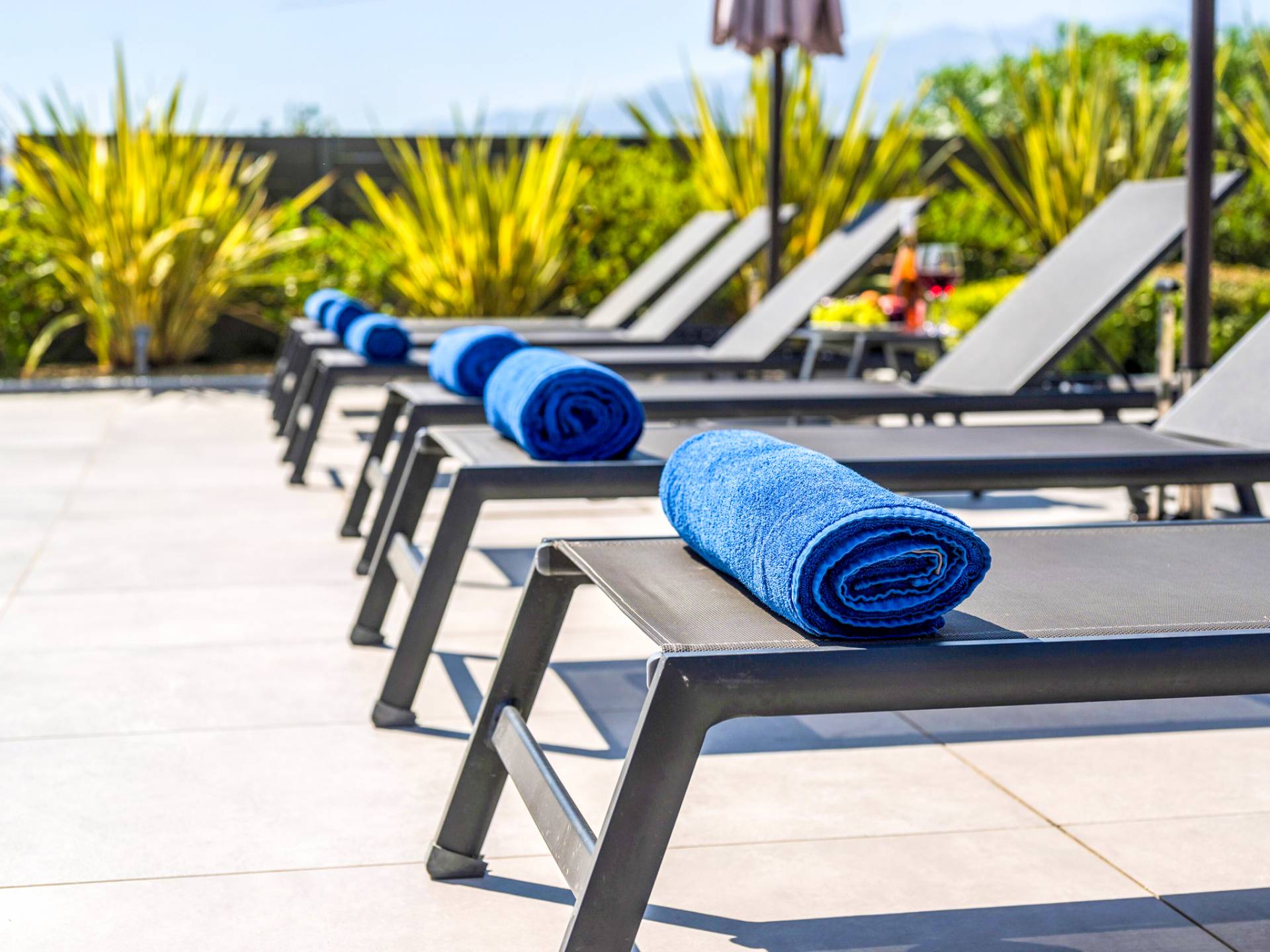 - Sun-kissed terrace with sunbeds, lounge seating & outdoor dining areas