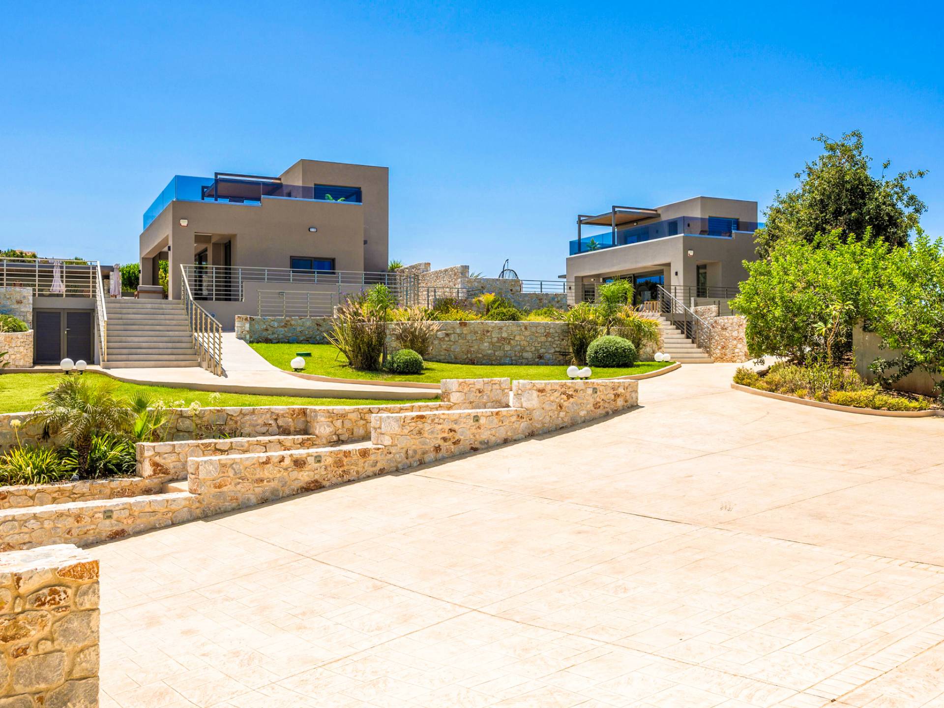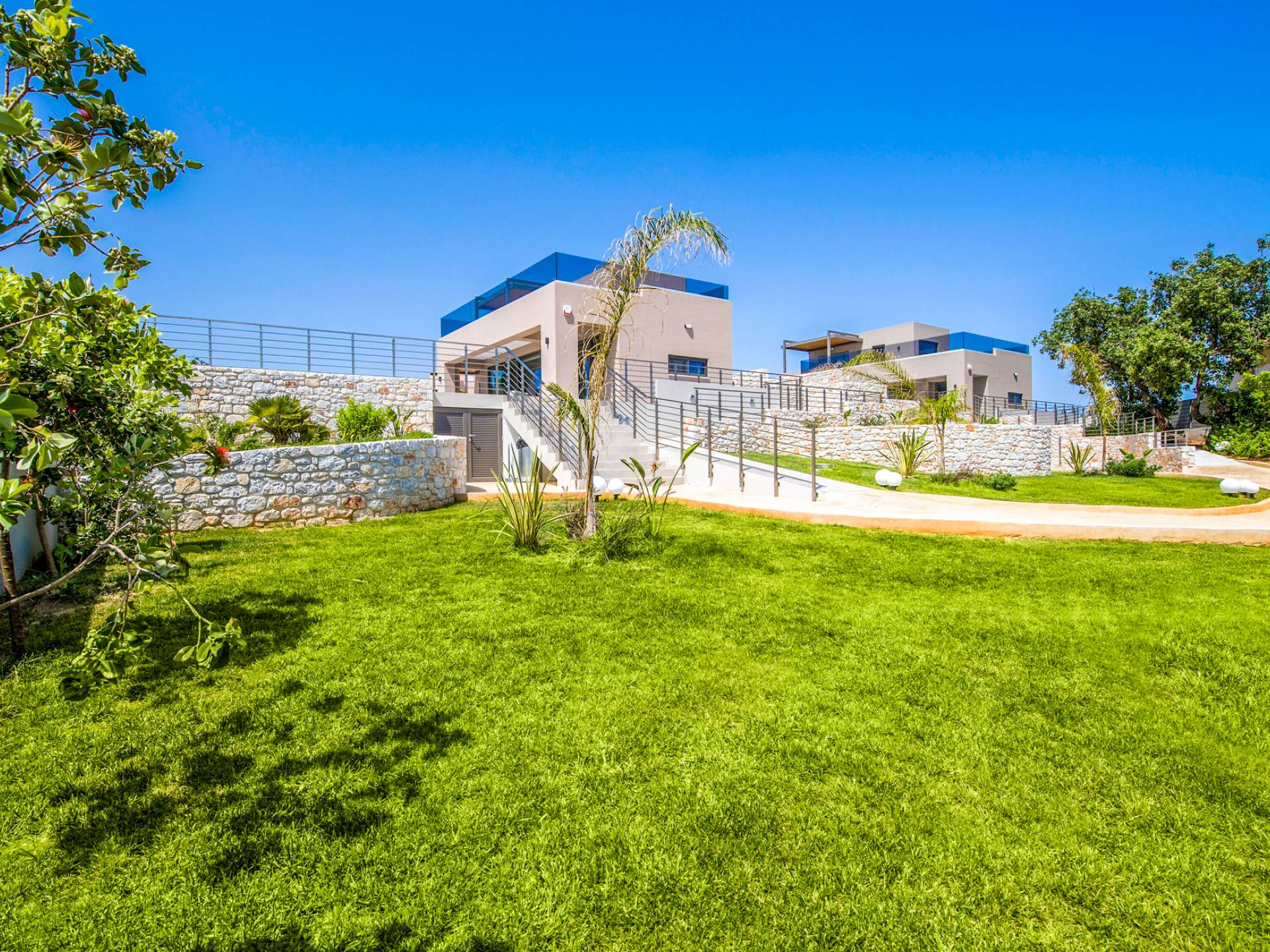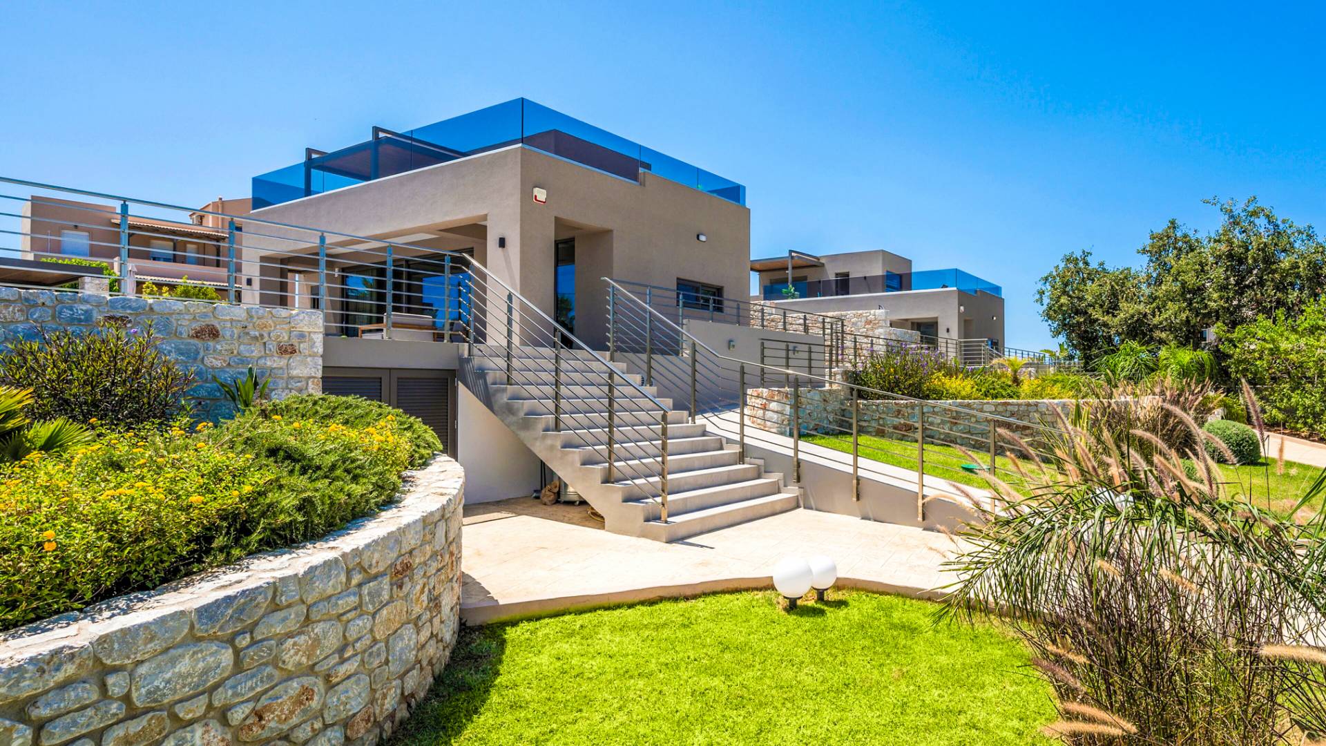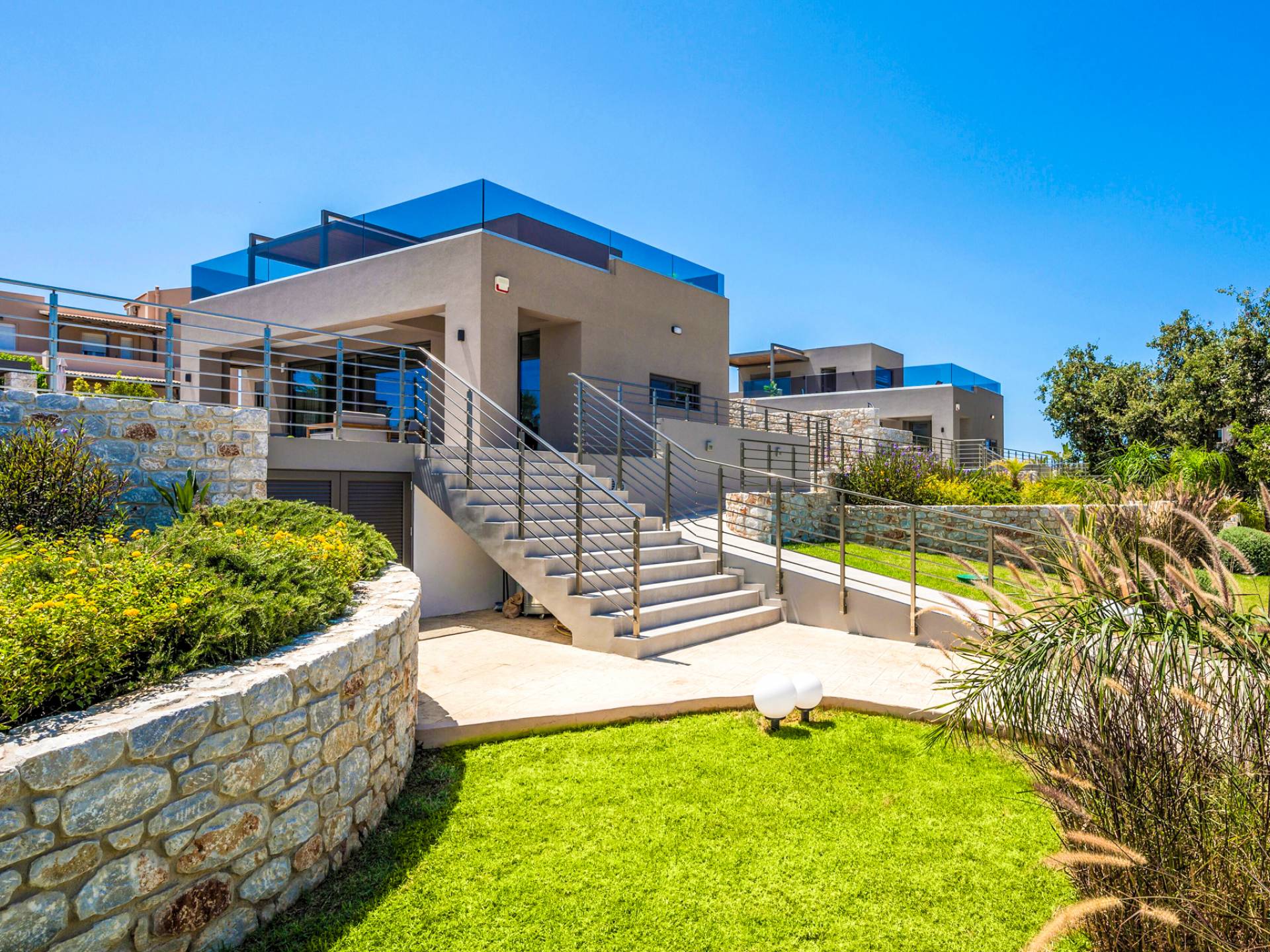 Neos Retreat 1 is a brand-new, independent three-story villa of exceptional quality, located in Chania just 300 meters from the beach. Set within a privately owned 2-acre estate and only a 10-minute drive from the city center, it offers the perfect blend of privacy, exclusivity, and convenience.