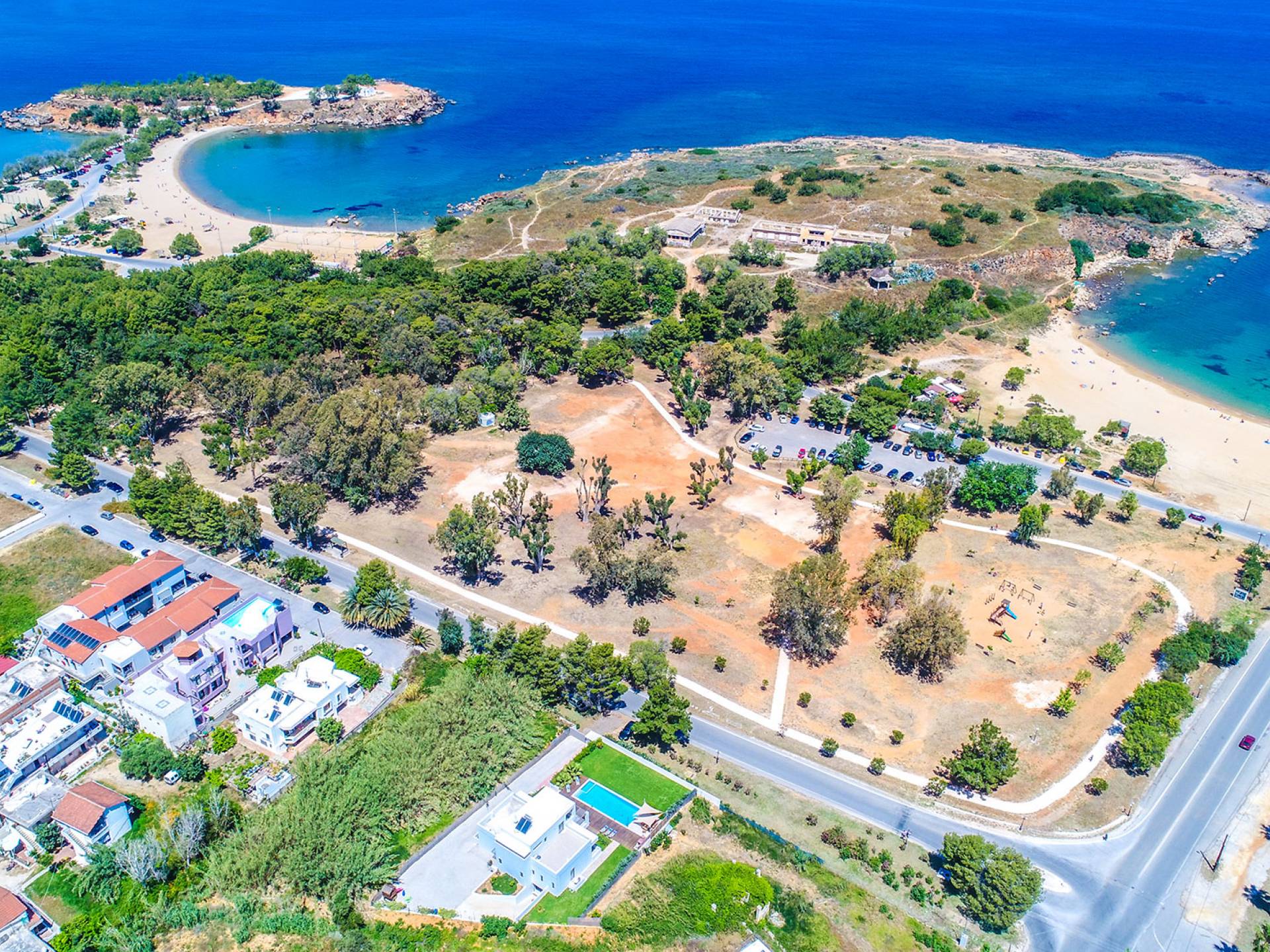 - Agioi Apostoloi Beach – A family-friendly spot with a playground & sports area.