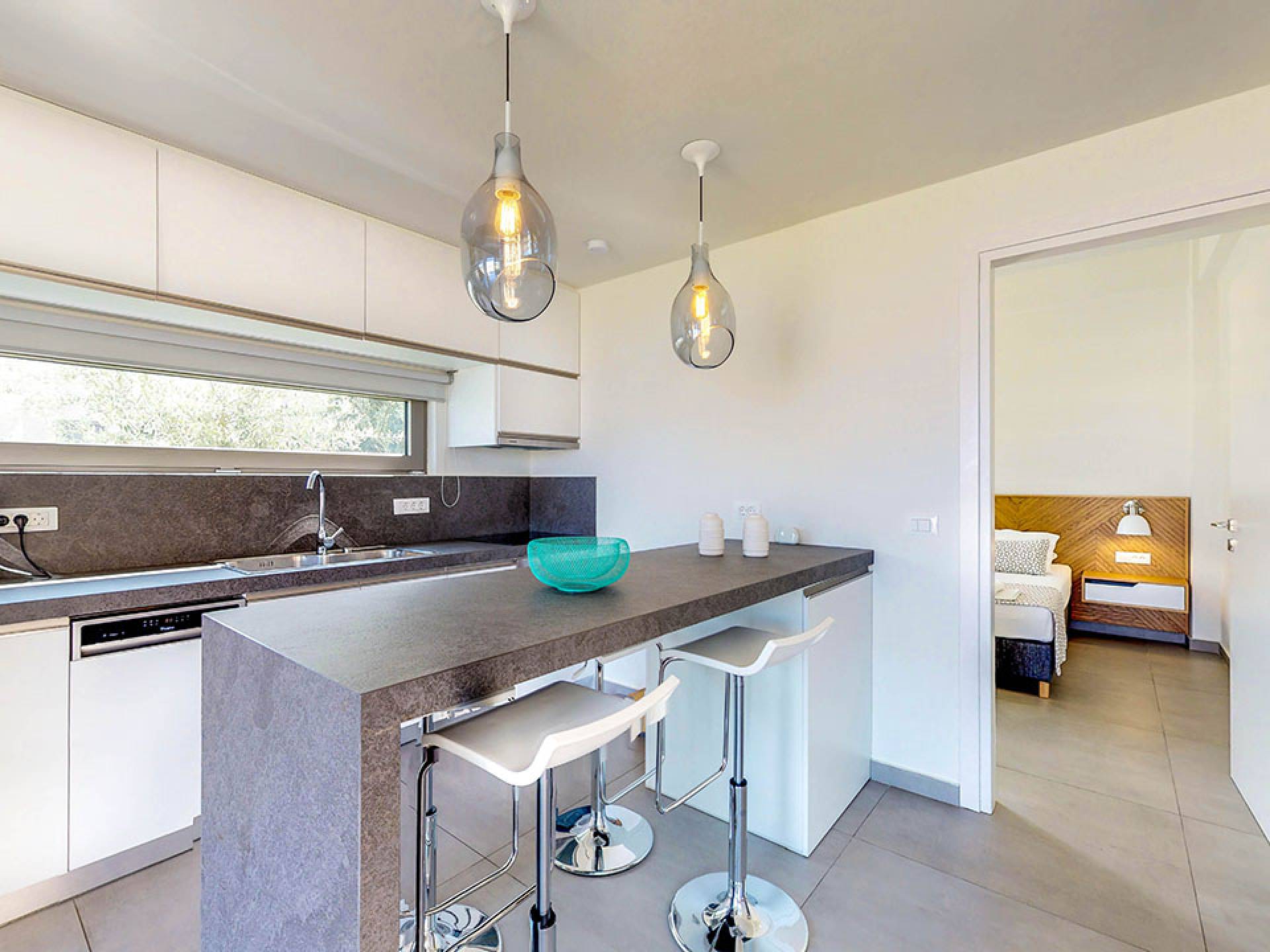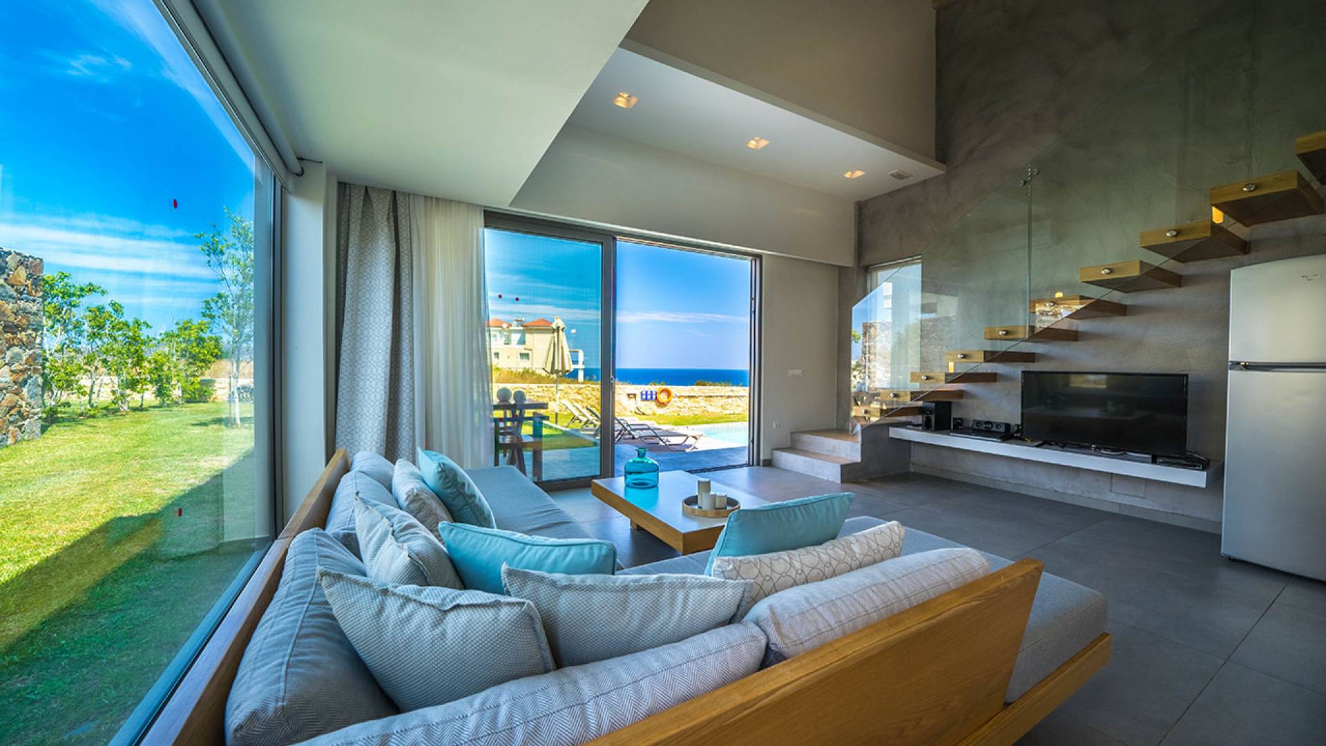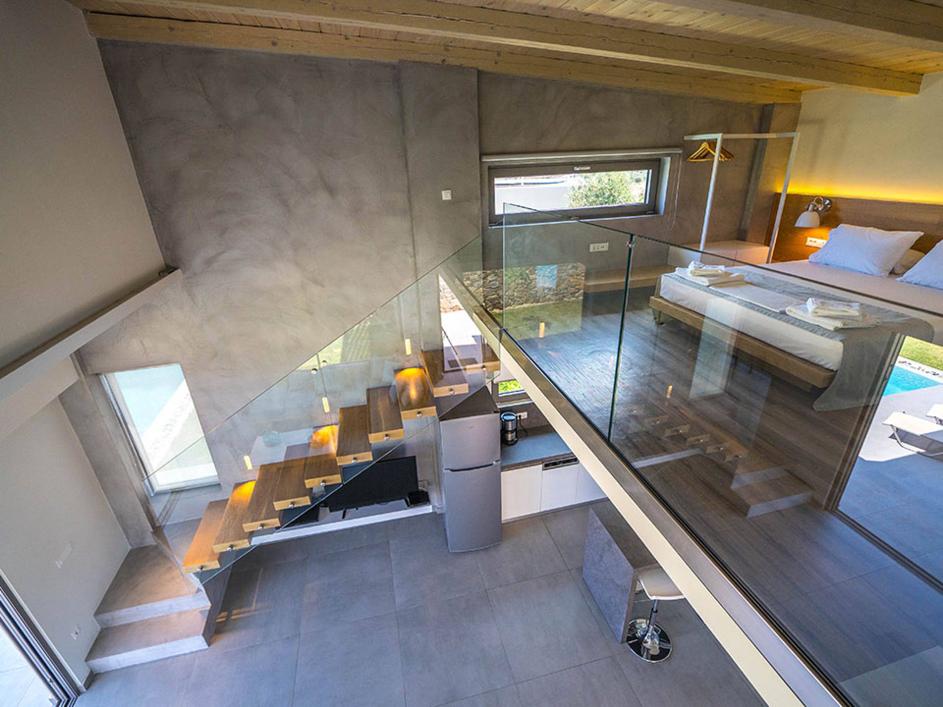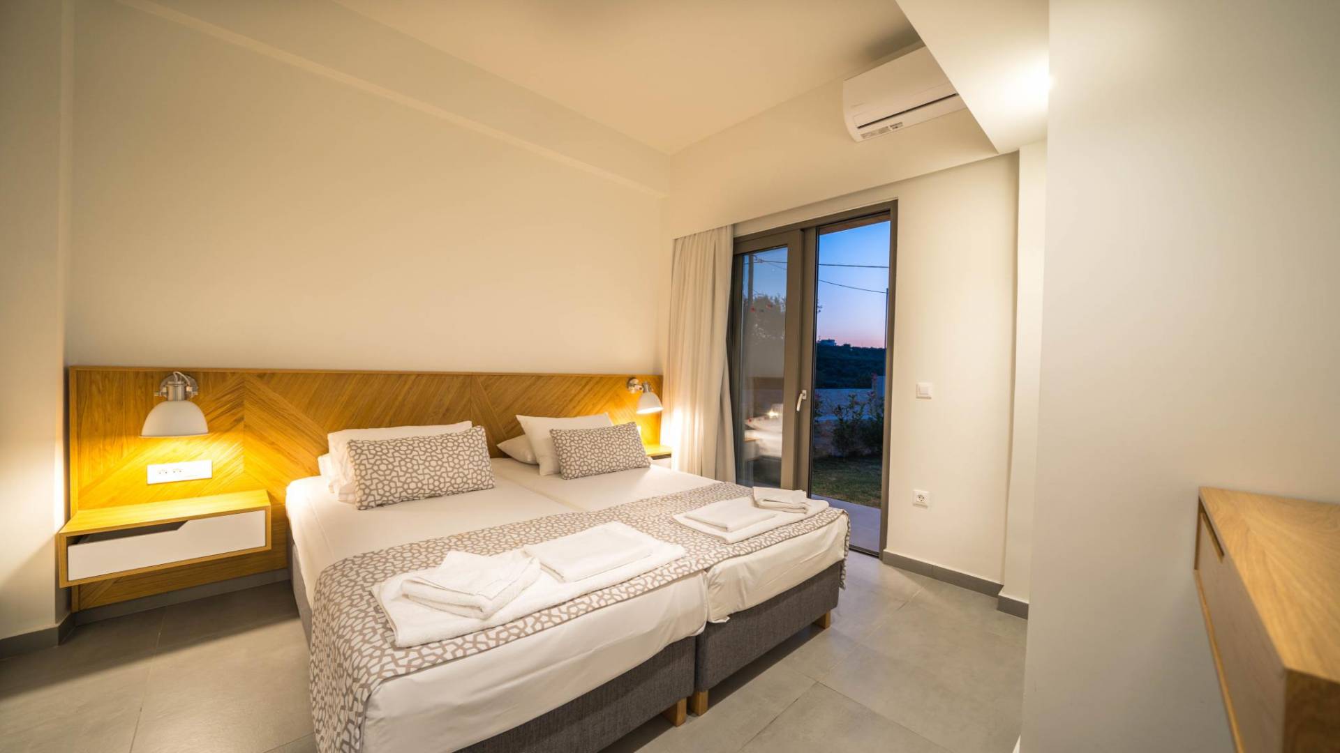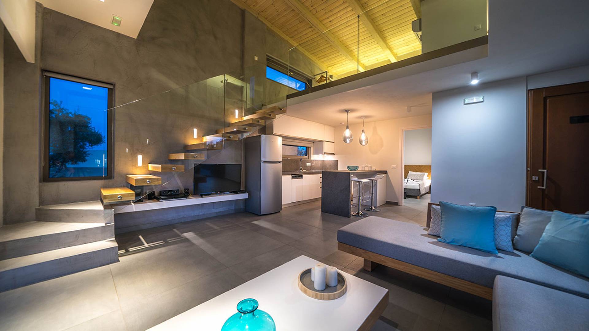 Cada villa consta de dos dormitorios, dos baños, una piscina privada y puede acomodar hasta 10 personas en total. Un plano de planta moderno y abierto une el interior de las Villas con la impresionante vista exterior y el amplio jardín con la piscina. Cada villa tiene dos camas dobles con la mejor calidad disponible de colchones anatómicos de CocoMat, líder en colchones de primera calidad. Habiendo equipado las Villas con todo lo que uno podría pedir, como una cocina totalmente equipada con una lavadora, Iskios Estate Chania lo hará sentir inmediatamente como en casa, incluso cuando esté de vacaciones. Experimentar algo único no significa que tengas que sacrificar nada.