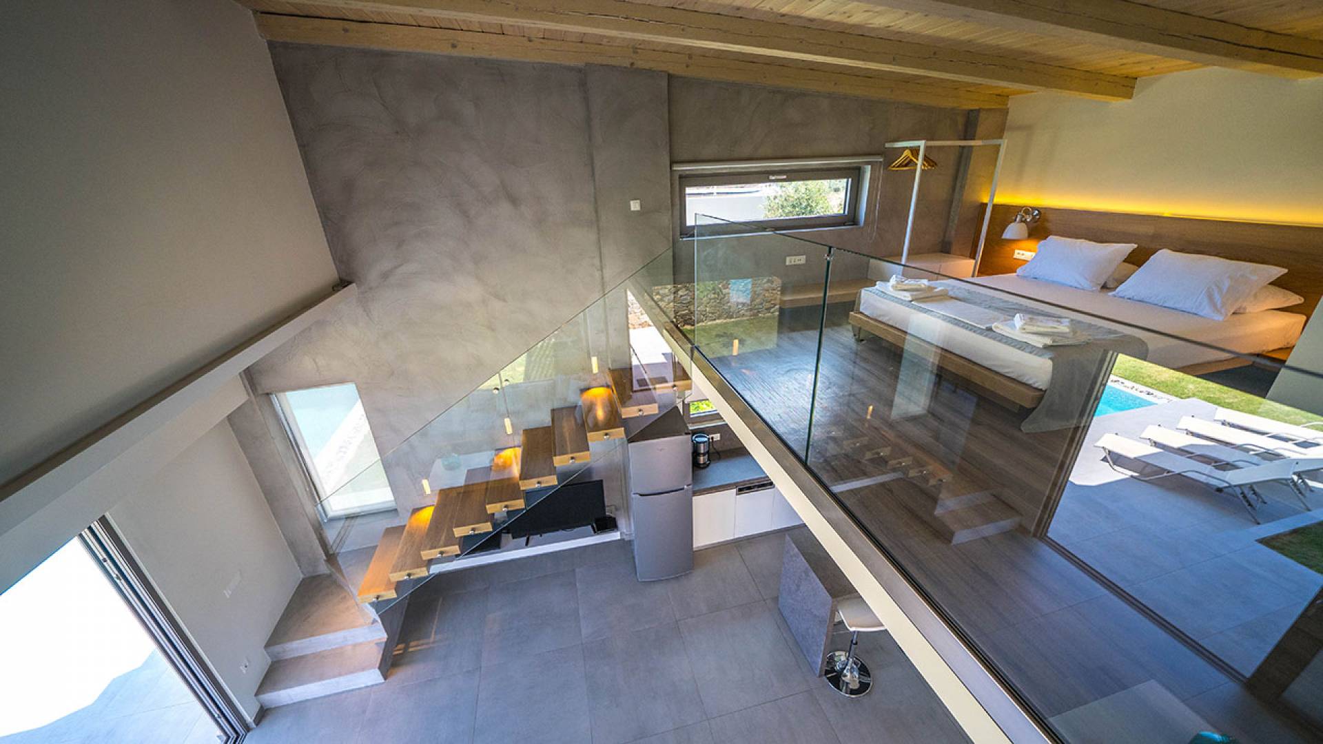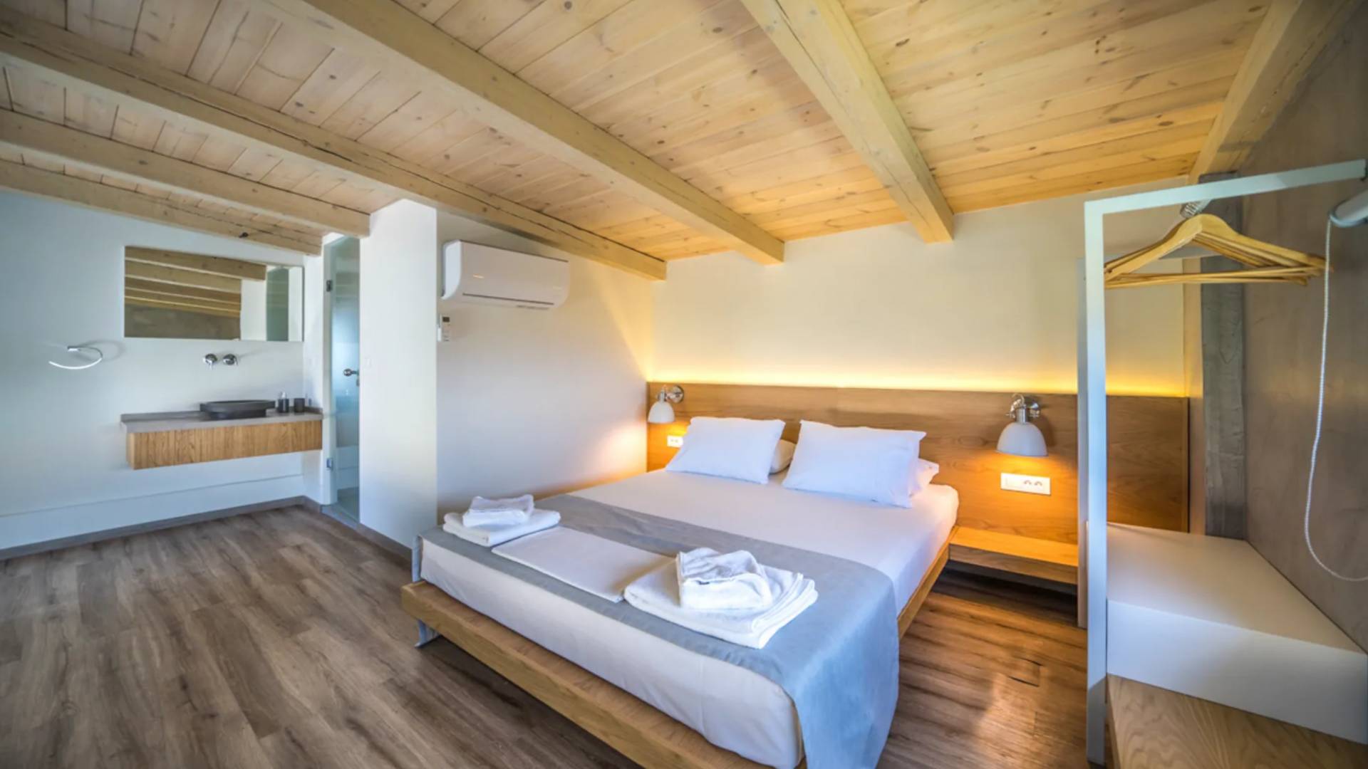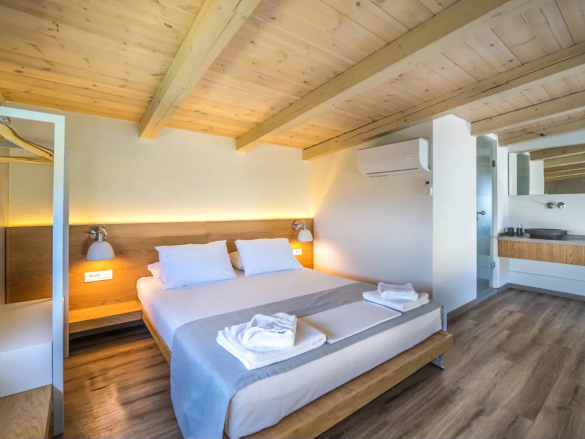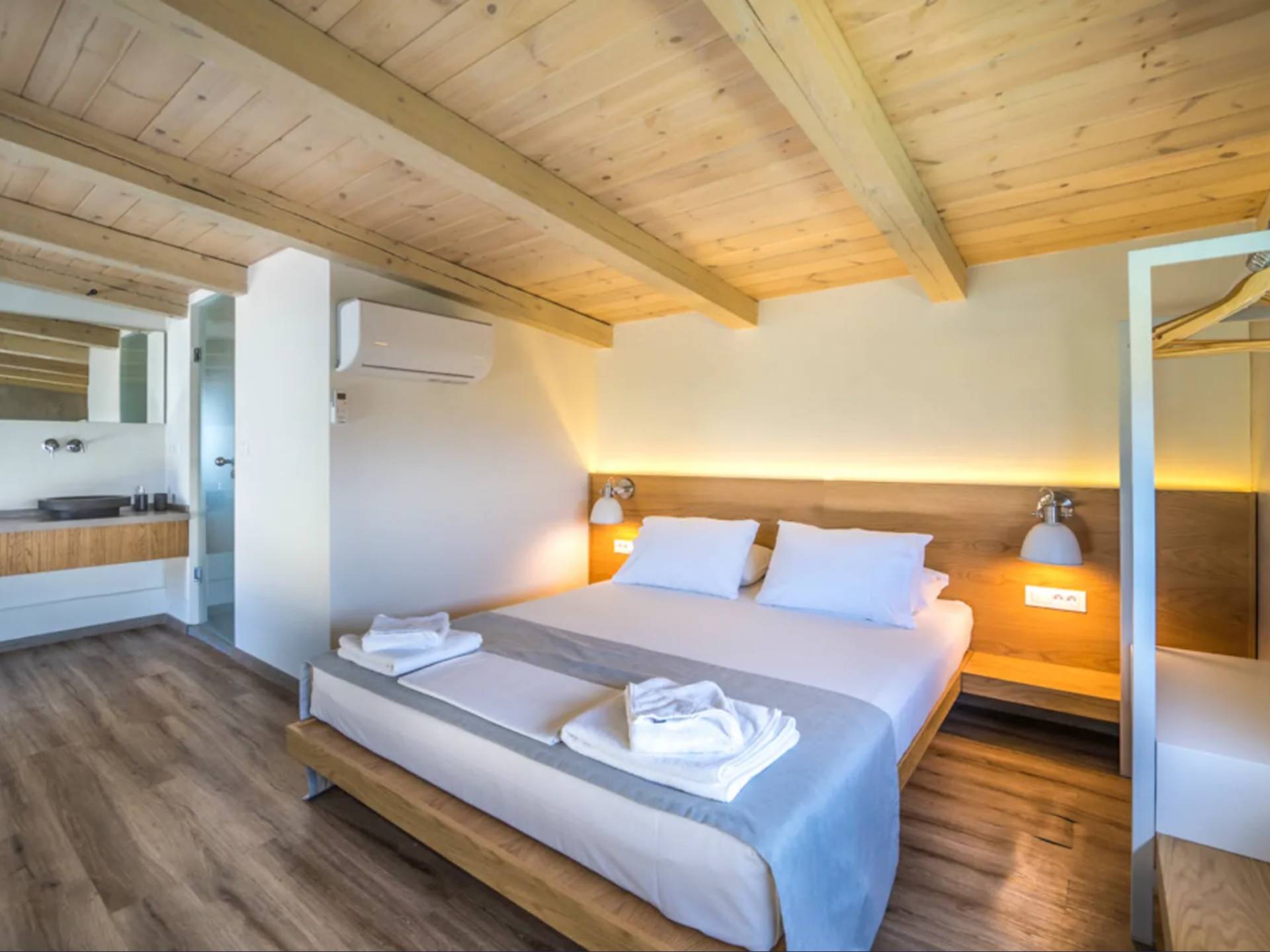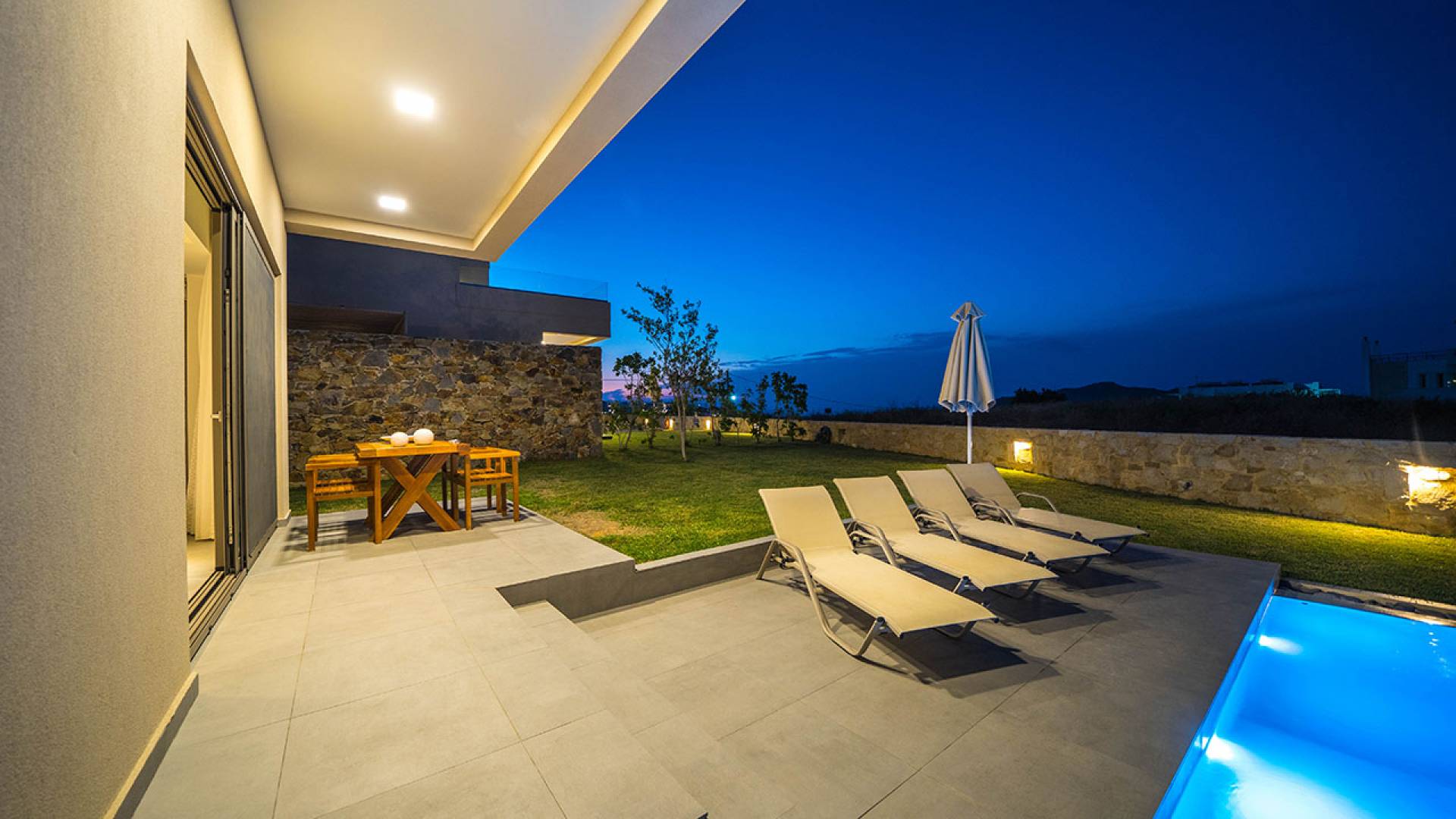 Cada villa consta de dos dormitorios, dos baños, una piscina privada y puede acomodar hasta 10 personas en total. Un plano de planta moderno y abierto une el interior de las Villas con la impresionante vista exterior y el amplio jardín con la piscina. Cada villa tiene dos camas dobles con la mejor calidad disponible de colchones anatómicos de CocoMat, líder en colchones de primera calidad. Habiendo equipado las Villas con todo lo que uno podría pedir, como una cocina totalmente equipada con una lavadora, Iskios Estate Chania lo hará sentir inmediatamente como en casa, incluso cuando esté de vacaciones. Experimentar algo único no significa que tengas que sacrificar nada.