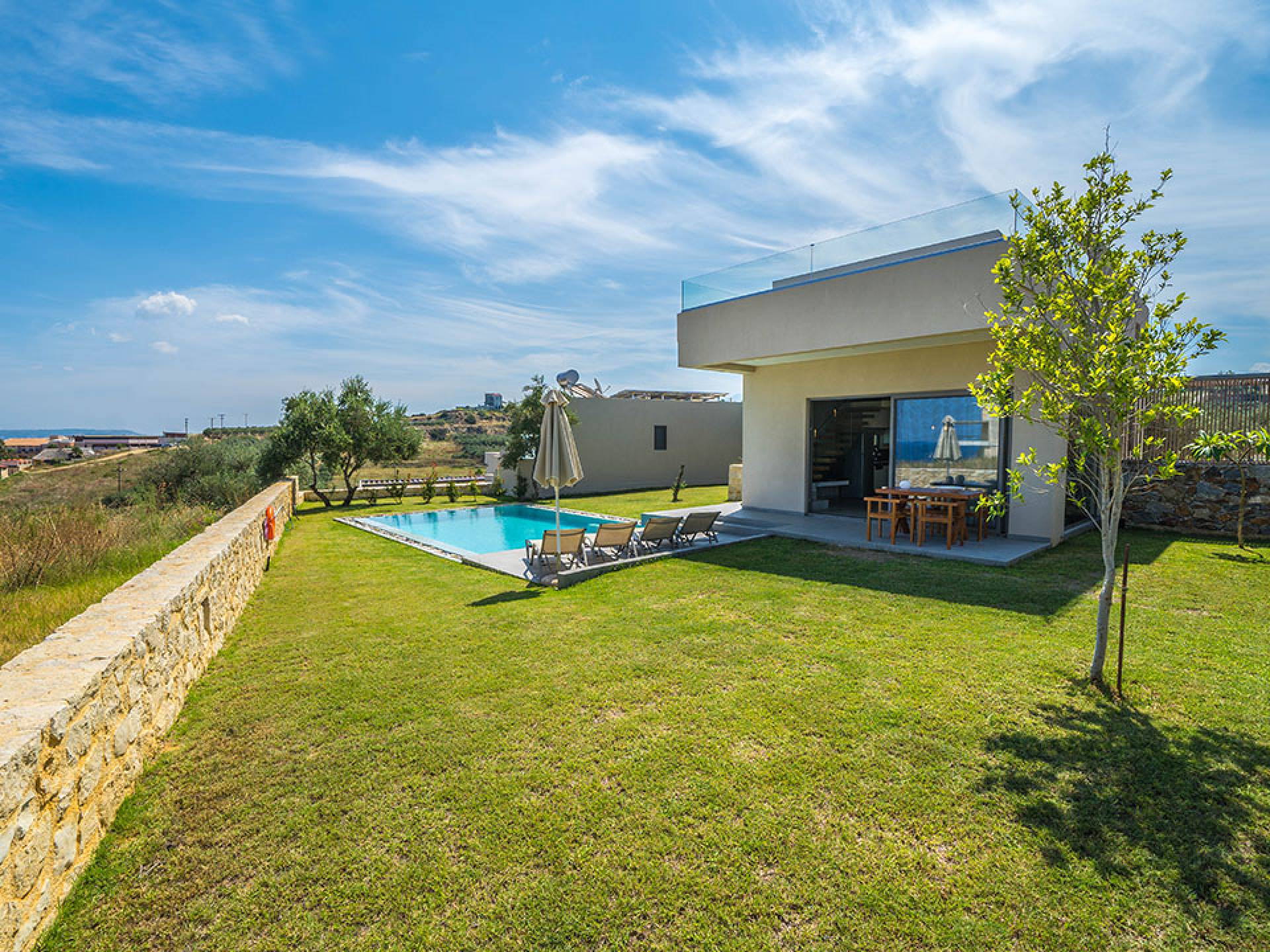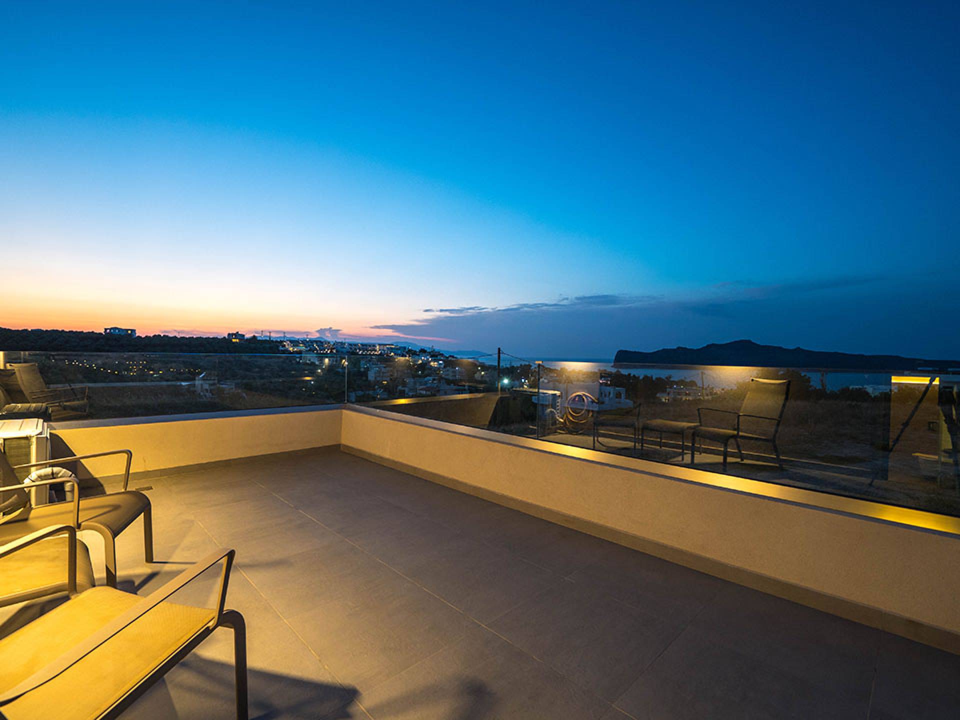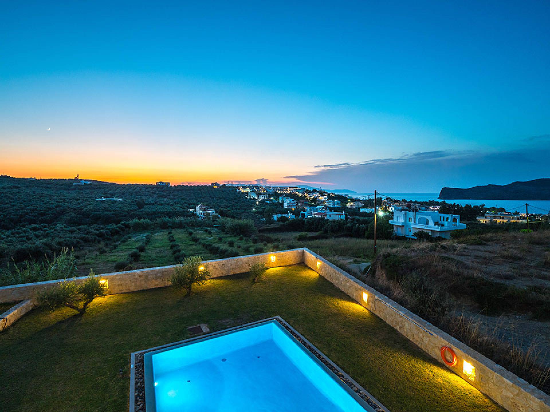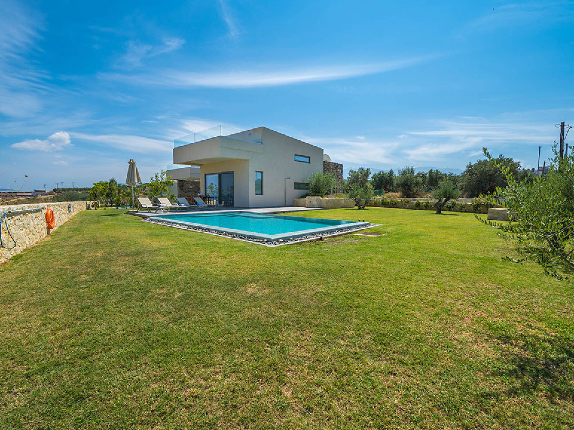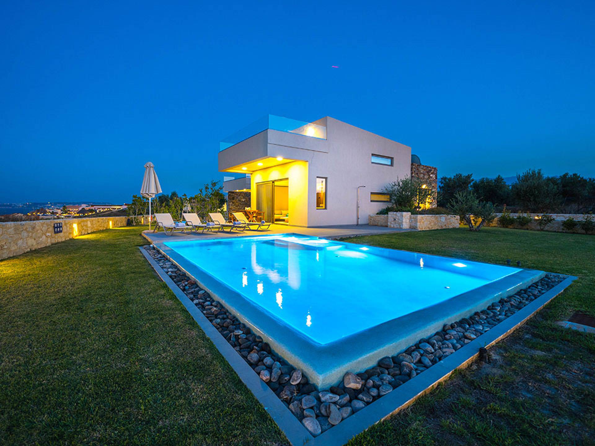 Iskios Estate Chania es una combinación de dos villas conectadas ubicadas una al lado de la otra y ubicadas en la magnífica colina de Agia Marina, Chania. Están rodeadas de olivares y jardines, lo que ofrece una vista panorámica impresionante de los exuberantes olivares, el azul profundo del mar de Creta y el paisaje virgen de la isla de Theodorou. Maravillosas playas de arena están situadas a solo 400 metros de este alquiler de lujo.
