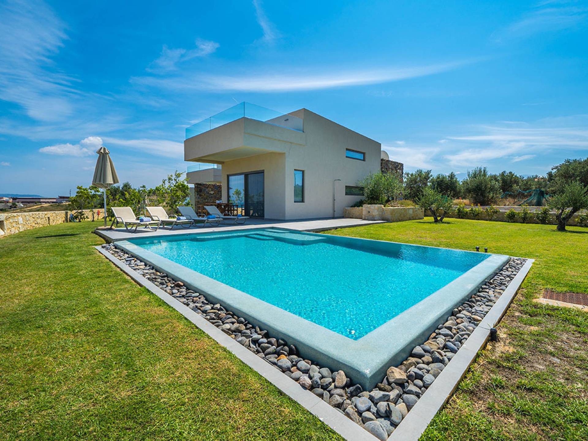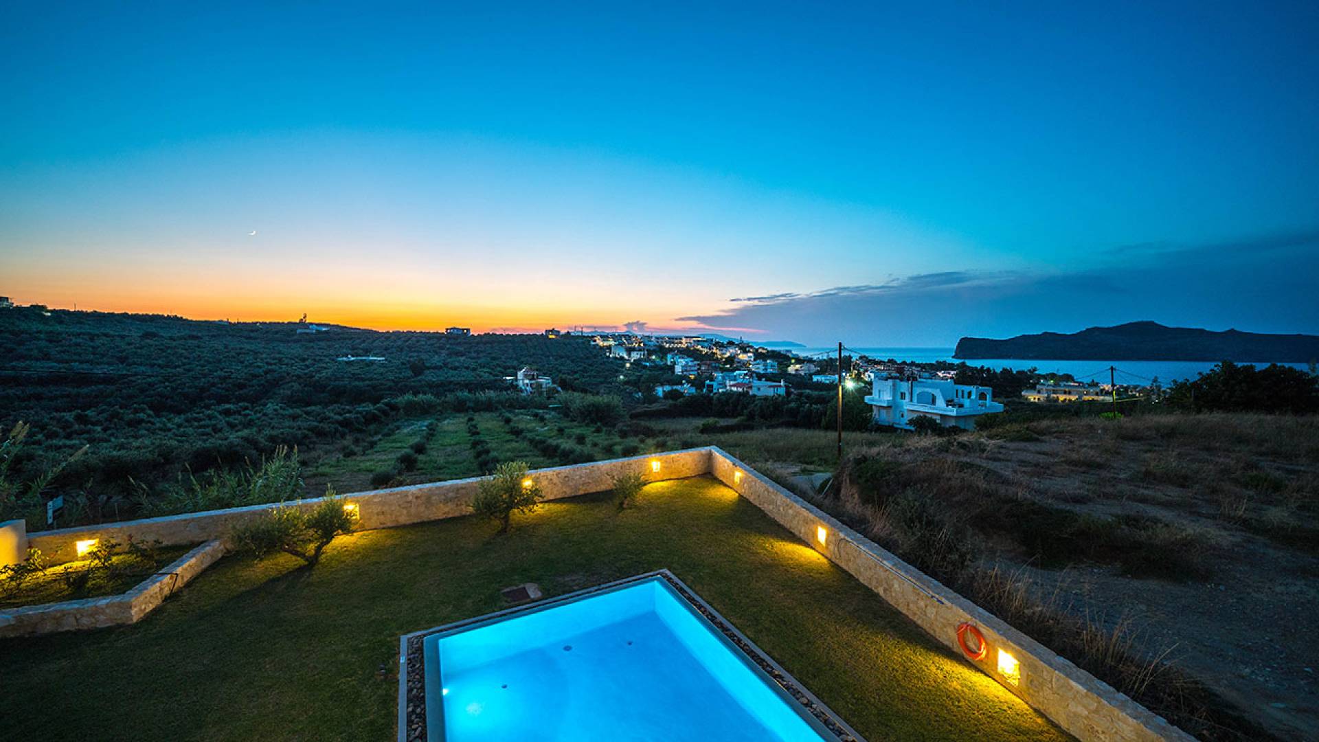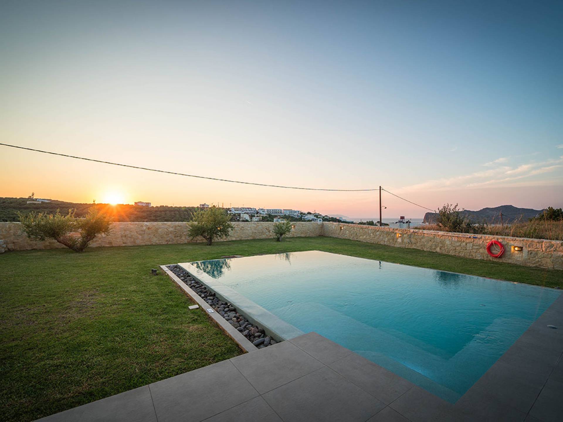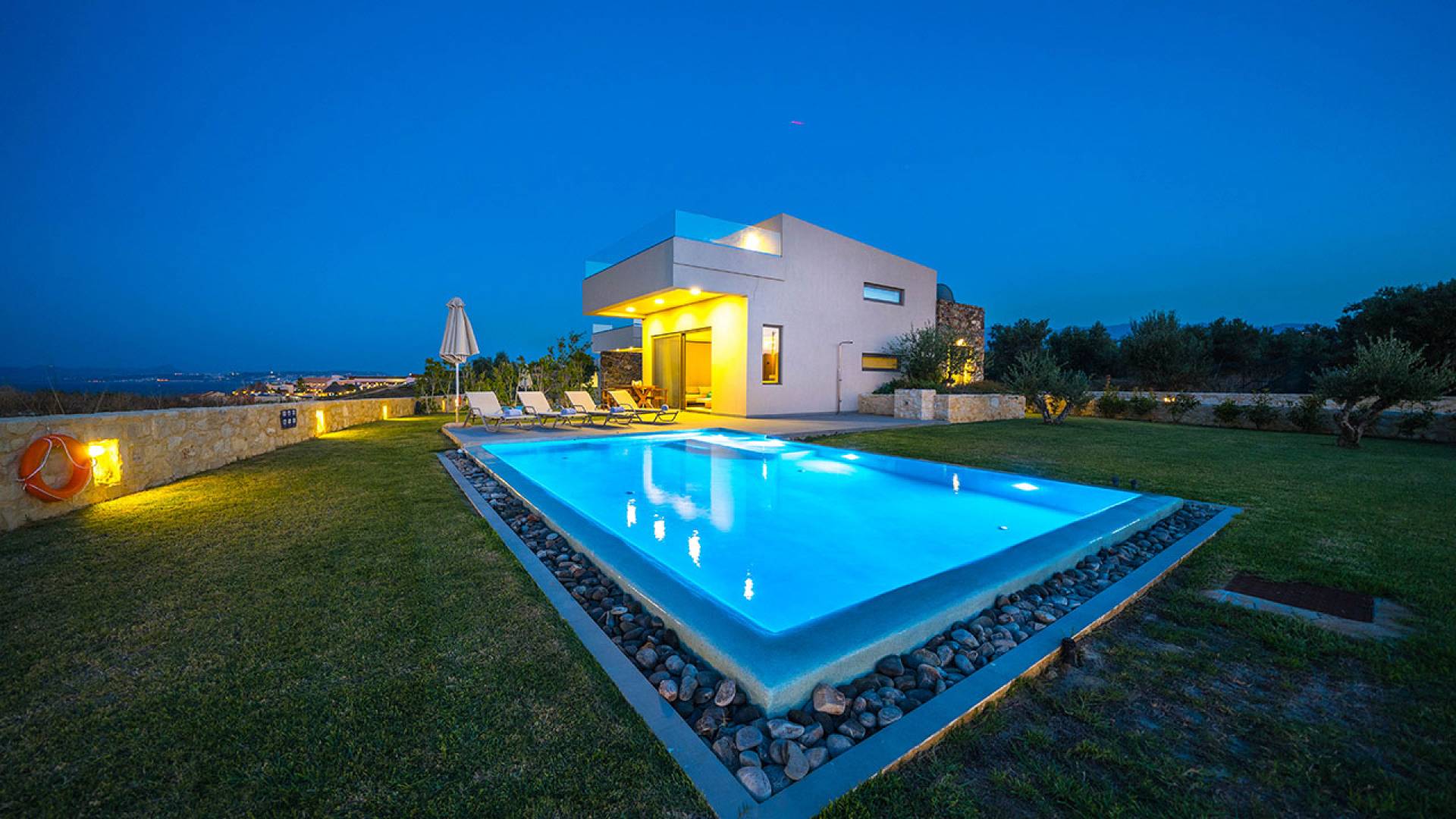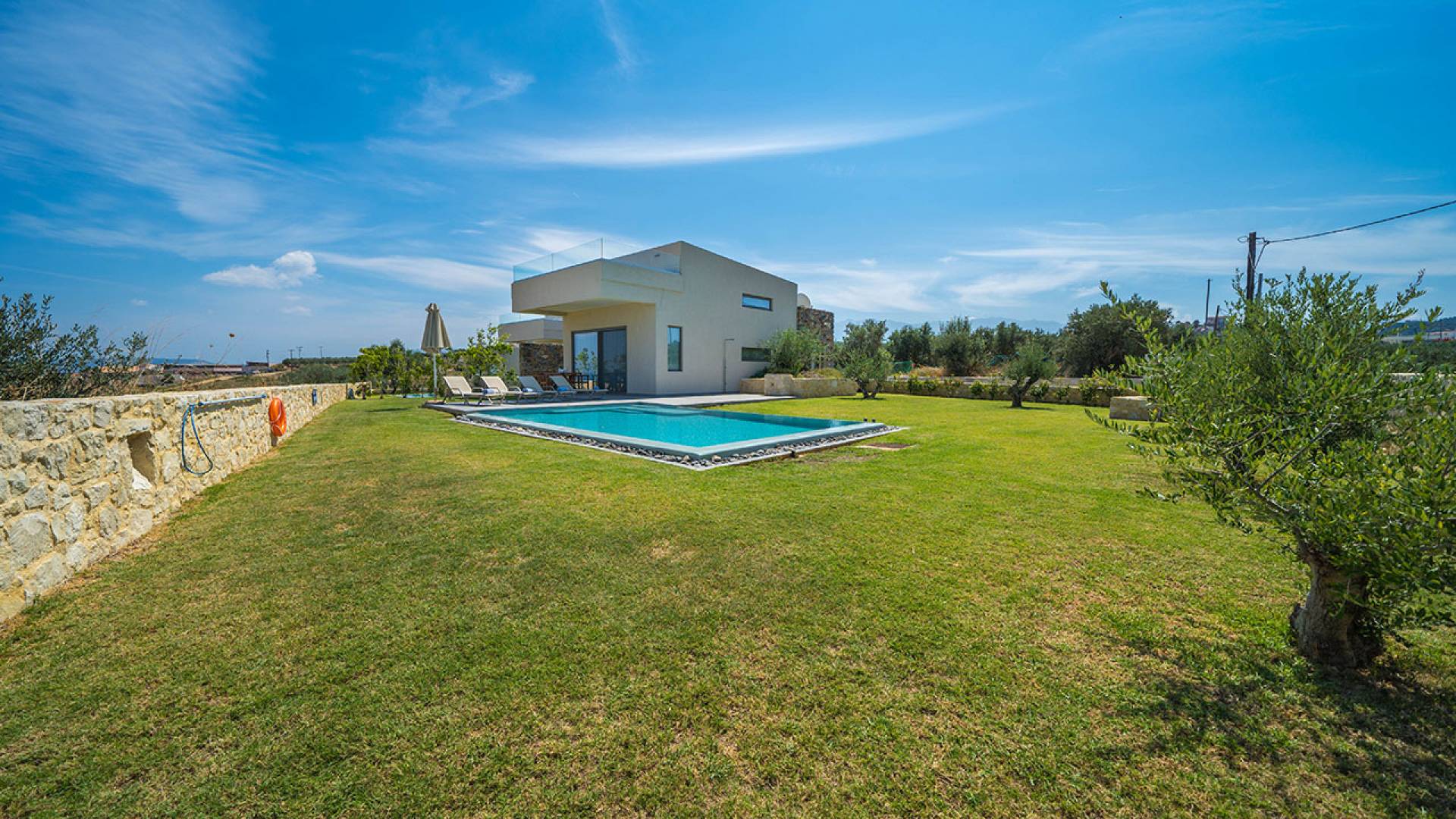 Iskios Estate Chania es una combinación de dos villas conectadas ubicadas una al lado de la otra y ubicadas en la magnífica colina de Agia Marina, Chania. Están rodeadas de olivares y jardines, lo que ofrece una vista panorámica impresionante de los exuberantes olivares, el azul profundo del mar de Creta y el paisaje virgen de la isla de Theodorou. Maravillosas playas de arena están situadas a solo 400 metros de este alquiler de lujo.
