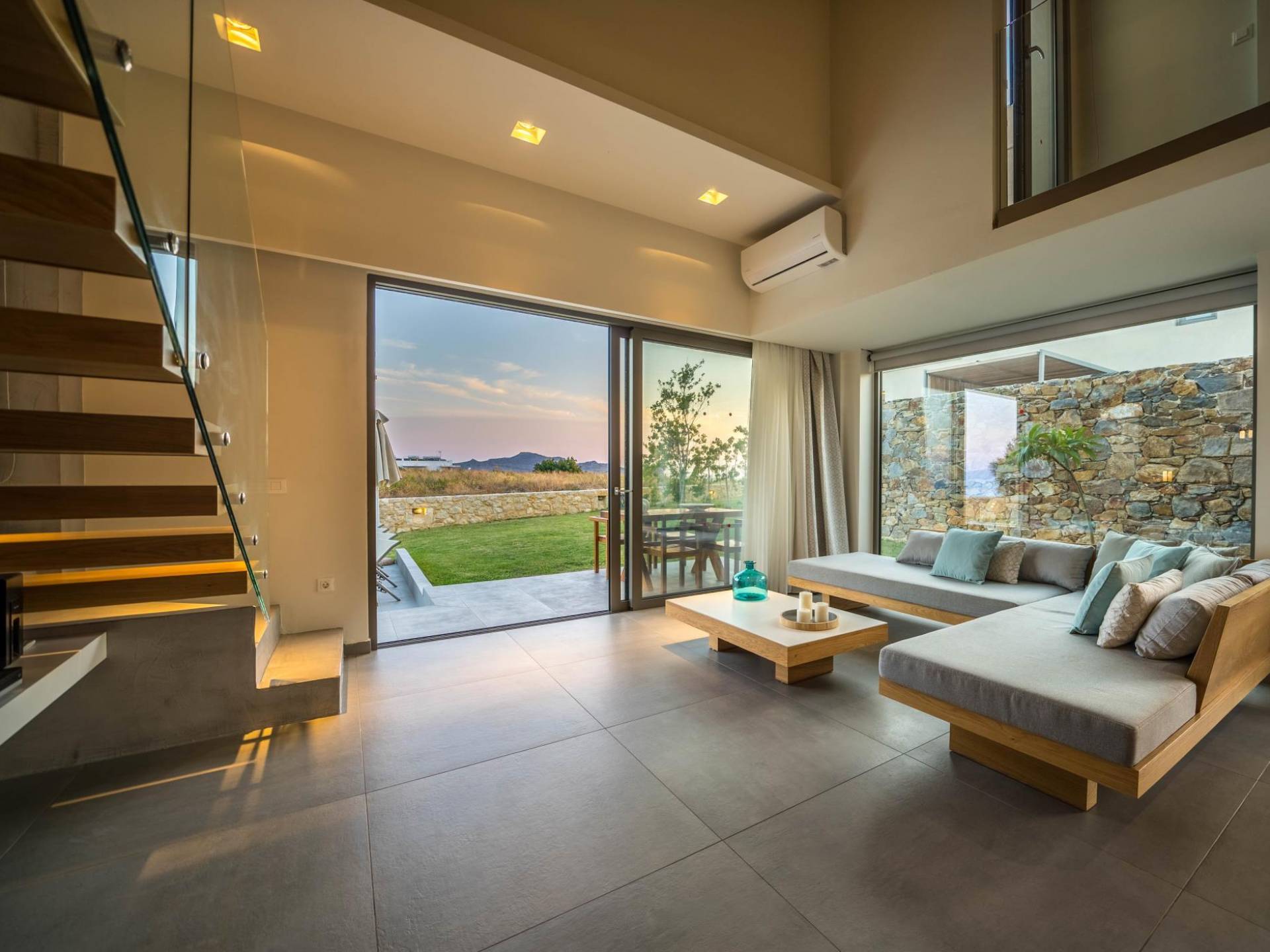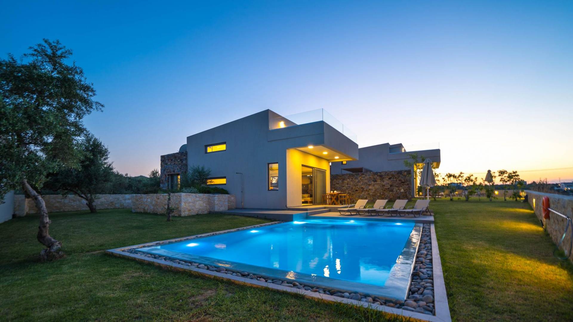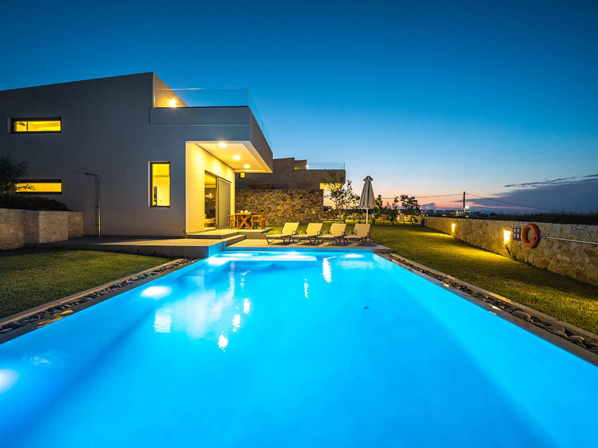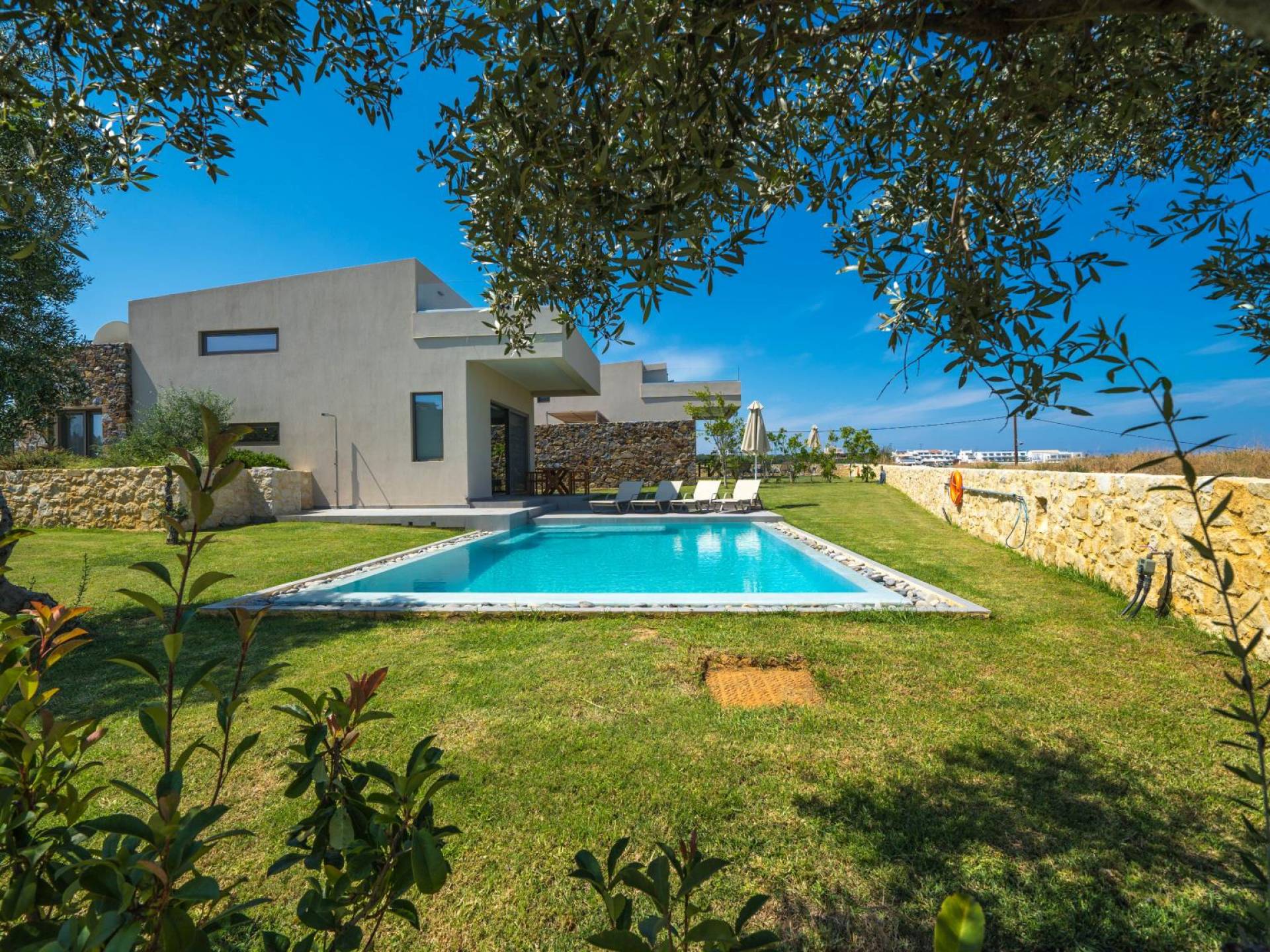 Iskios Estate Chania es una combinación de dos villas conectadas ubicadas una al lado de la otra y ubicadas en la magnífica colina de Agia Marina, Chania. Están rodeadas de olivares y jardines, lo que ofrece una vista panorámica impresionante de los exuberantes olivares, el azul profundo del mar de Creta y el paisaje virgen de la isla de Theodorou. Maravillosas playas de arena están situadas a solo 400 metros de este alquiler de lujo.
