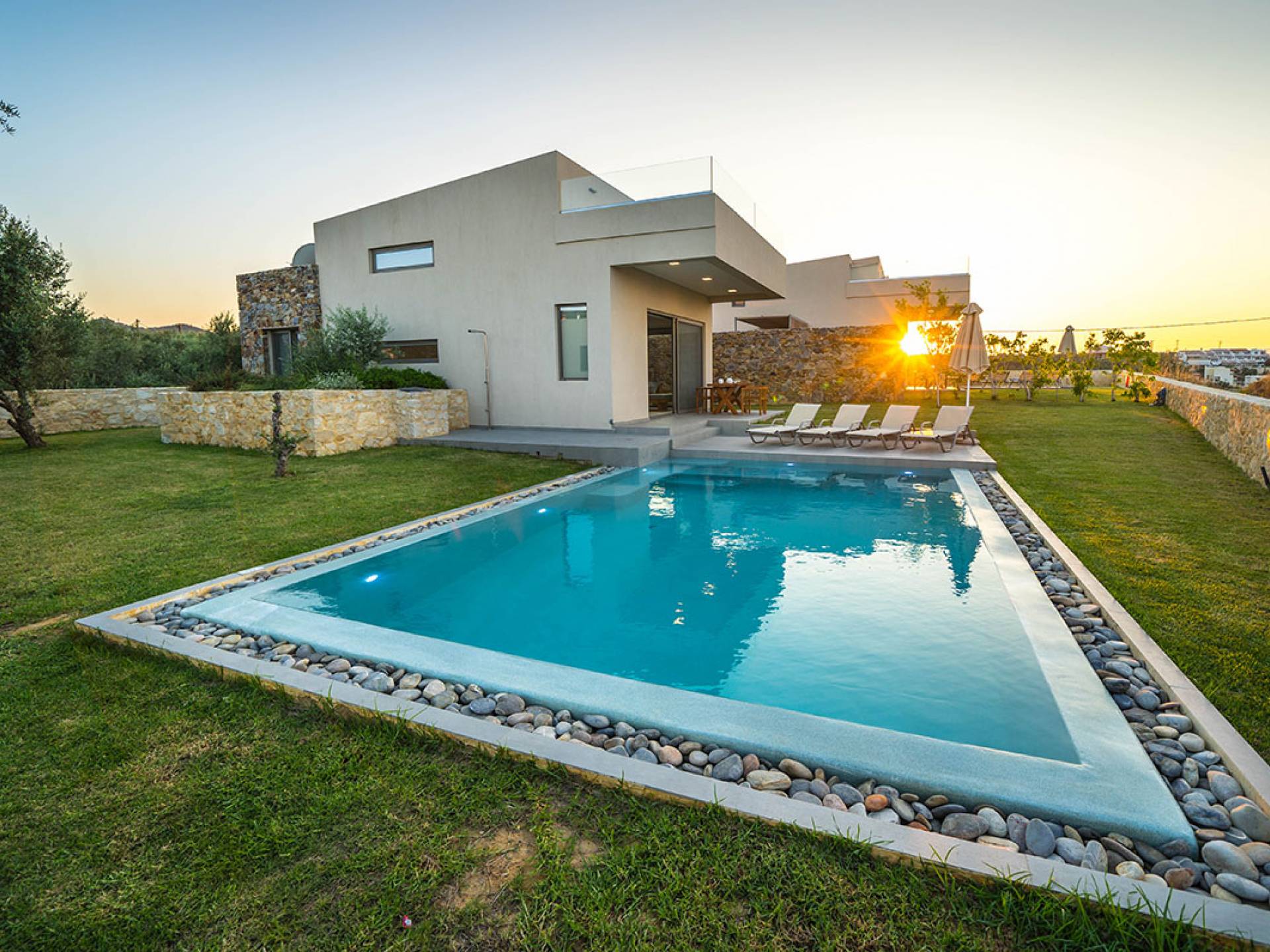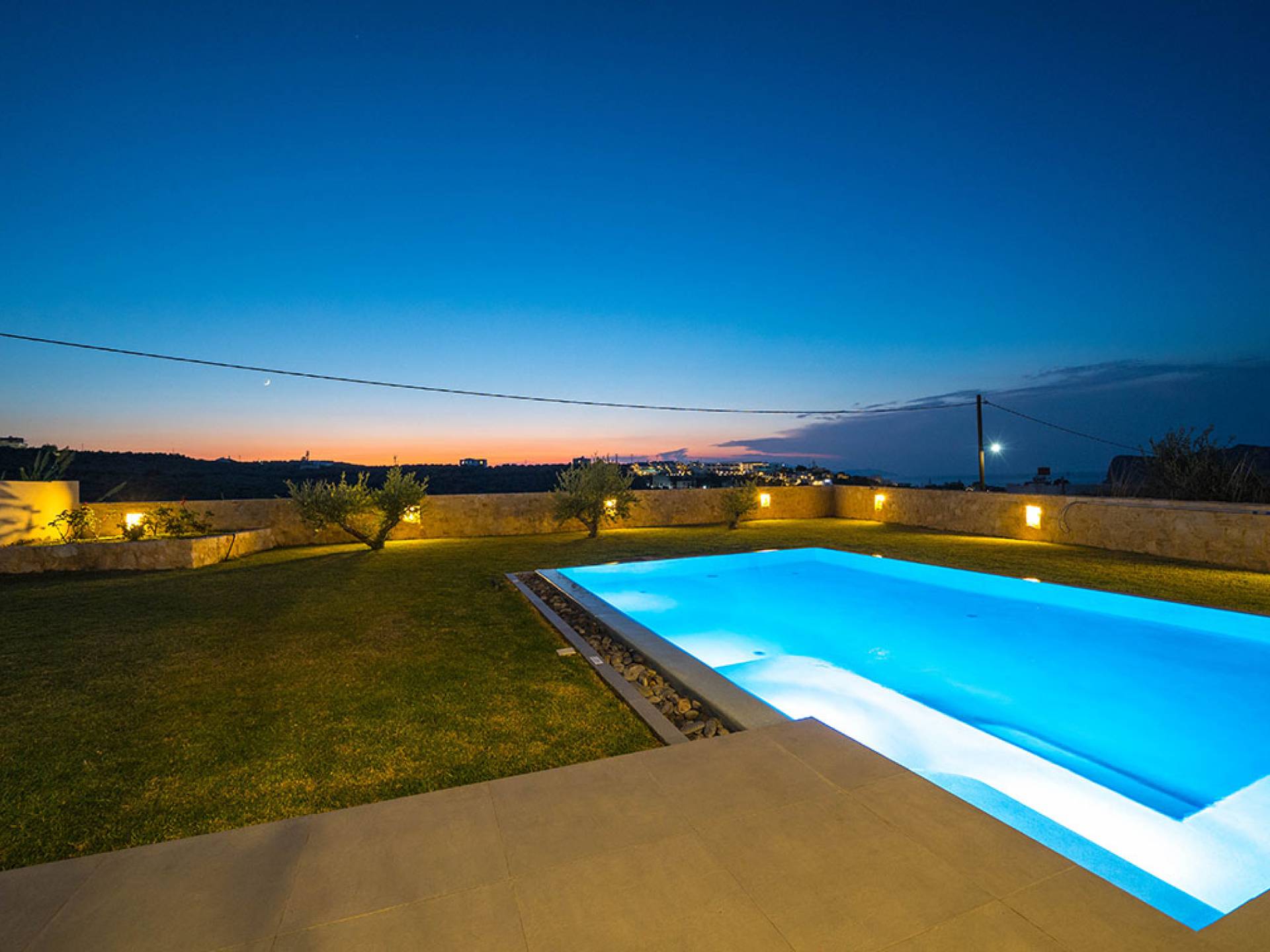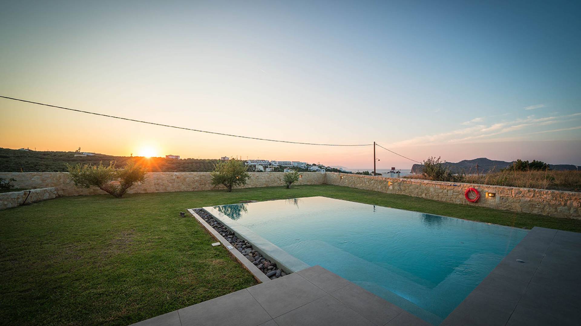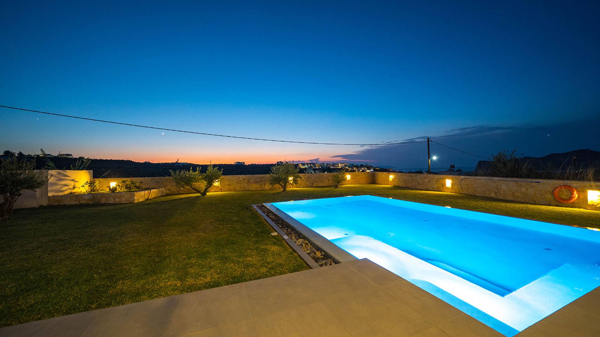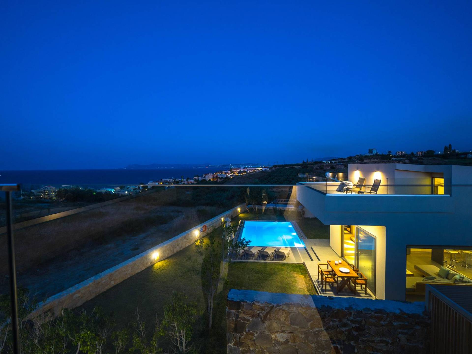 Iskios Estate Chania es una combinación de dos villas conectadas ubicadas una al lado de la otra y ubicadas en la magnífica colina de Agia Marina, Chania. Están rodeadas de olivares y jardines, lo que ofrece una vista panorámica impresionante de los exuberantes olivares, el azul profundo del mar de Creta y el paisaje virgen de la isla de Theodorou. Maravillosas playas de arena están situadas a solo 400 metros de este alquiler de lujo.