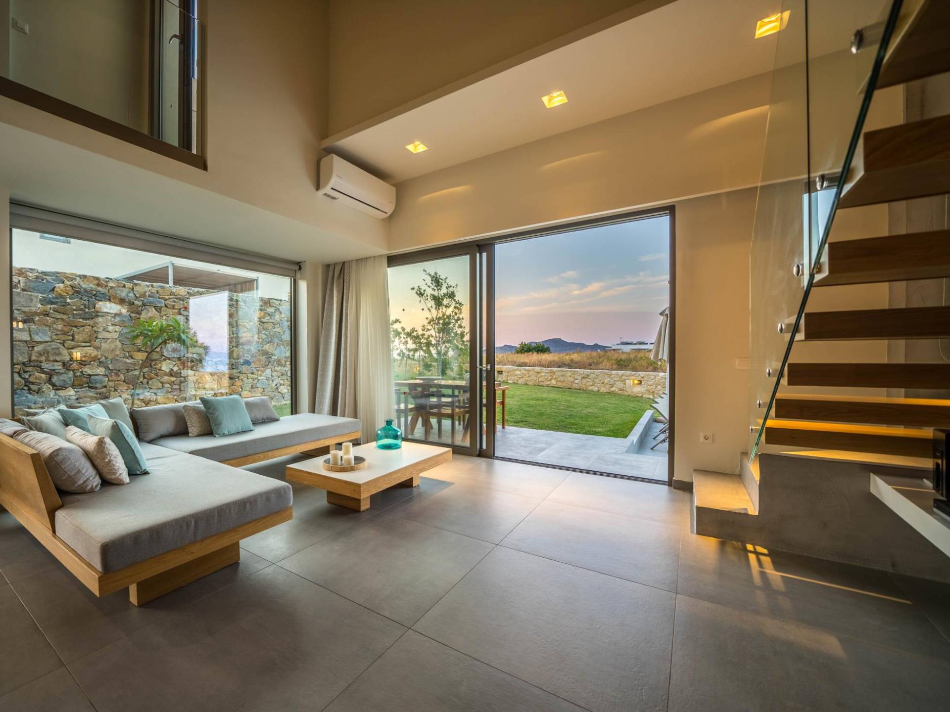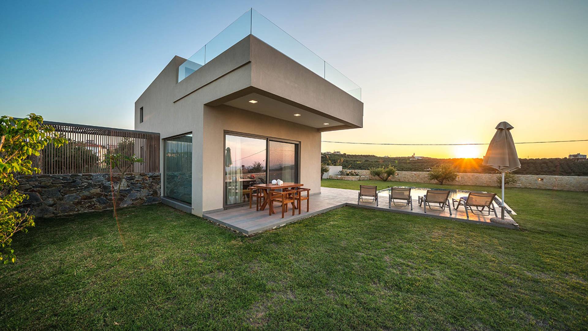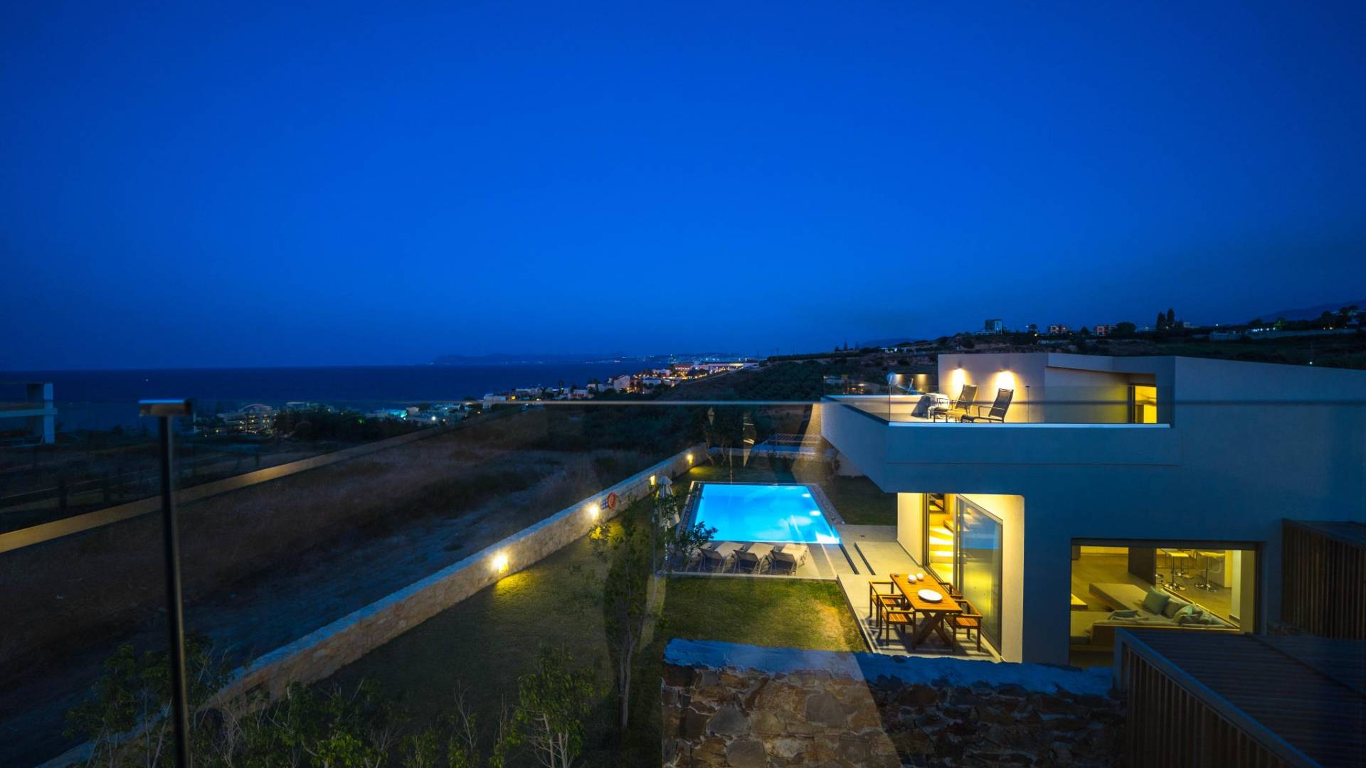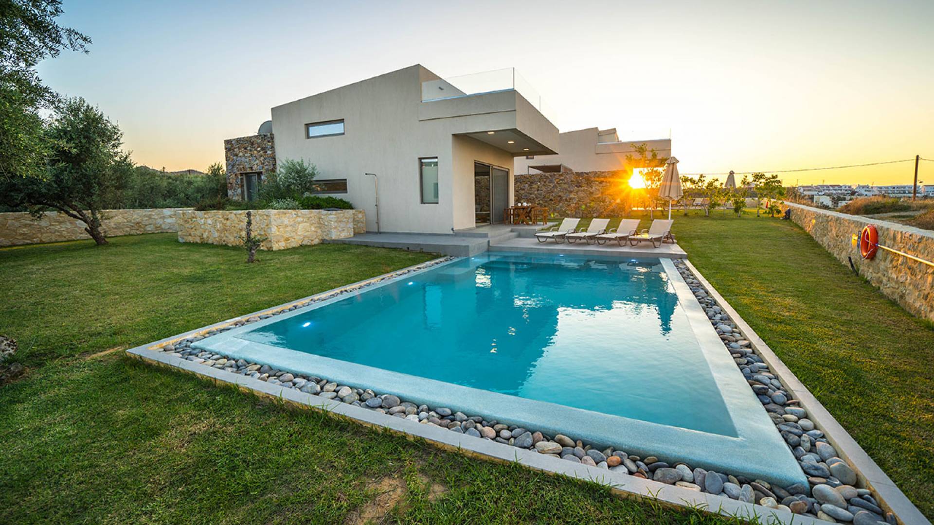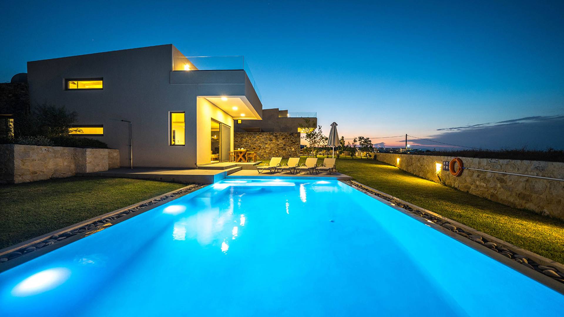 Iskios Estate Chania es una combinación de dos villas conectadas ubicadas una al lado de la otra y ubicadas en la magnífica colina de Agia Marina, Chania. Están rodeadas de olivares y jardines, lo que ofrece una vista panorámica impresionante de los exuberantes olivares, el azul profundo del mar de Creta y el paisaje virgen de la isla de Theodorou. Maravillosas playas de arena están situadas a solo 400 metros de este alquiler de lujo.