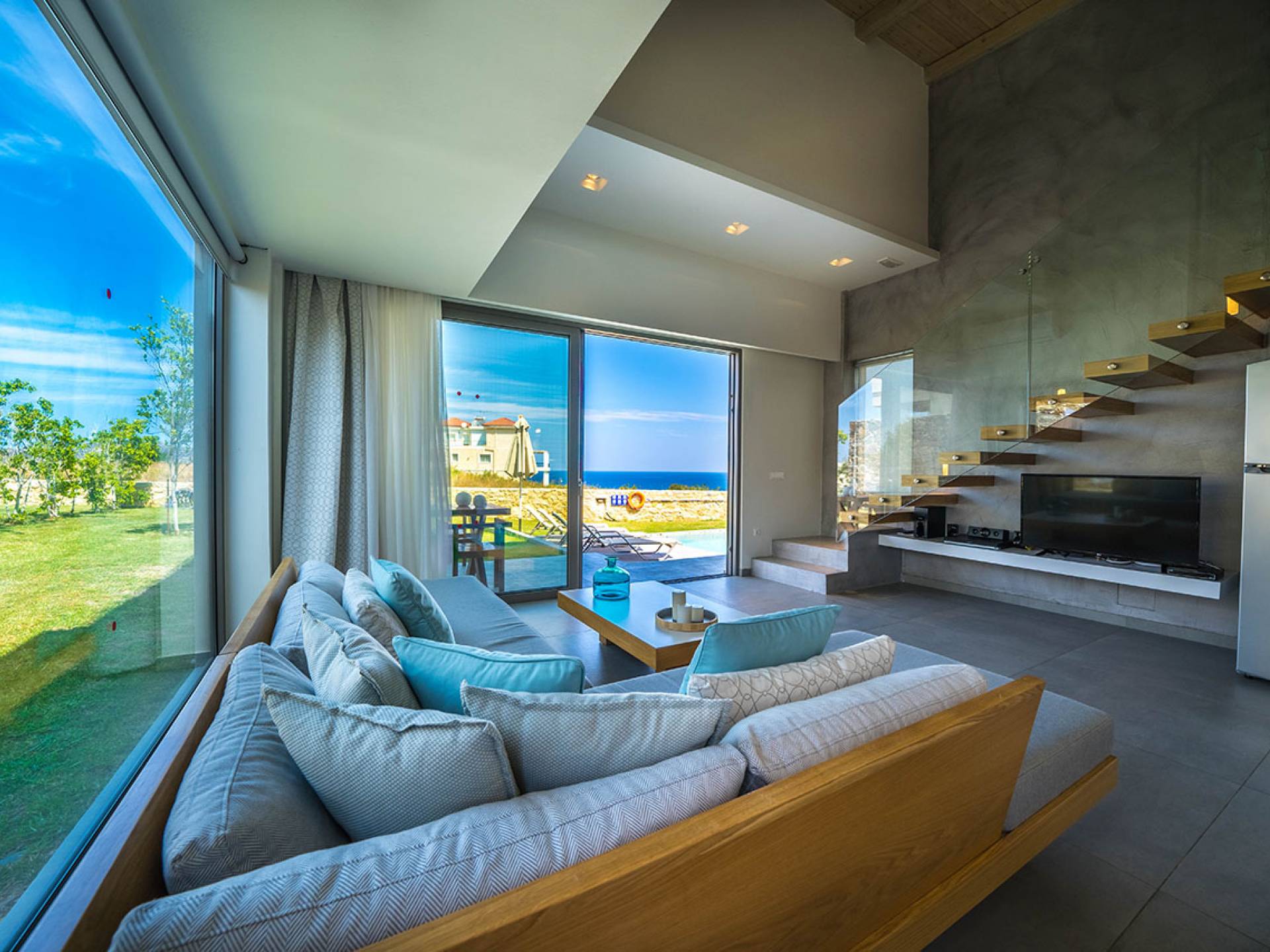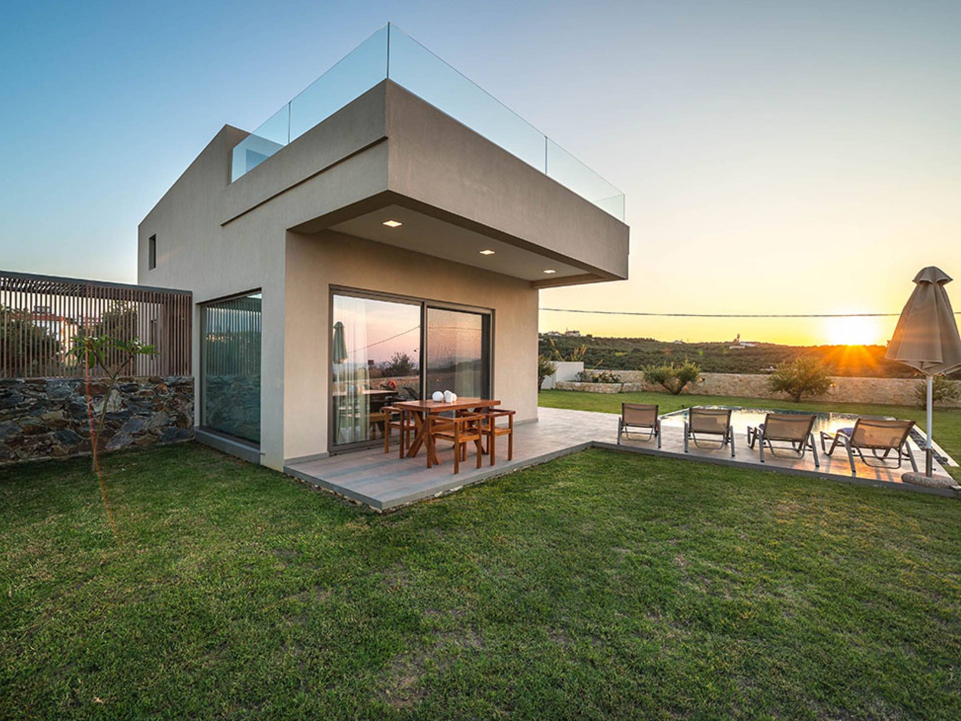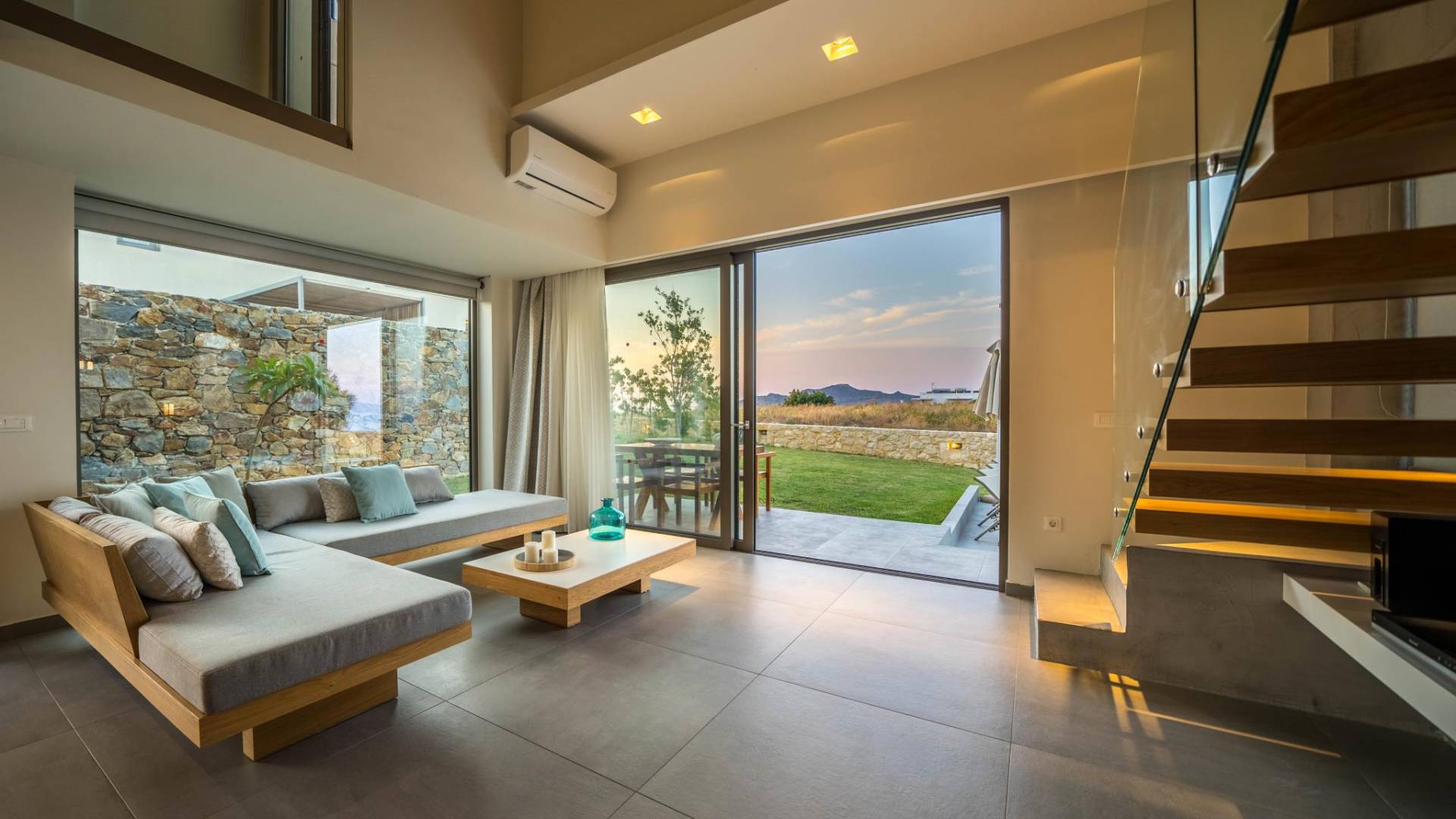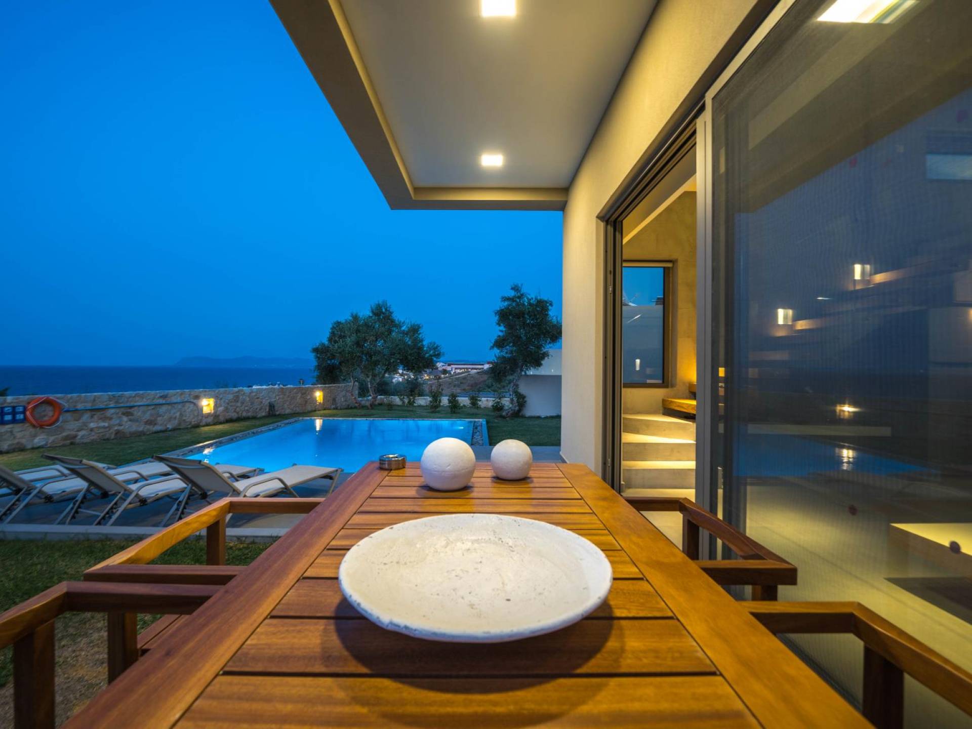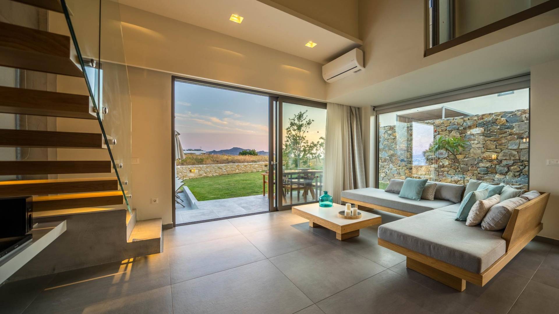 Iskios Estate Chania es una combinación de dos villas conectadas ubicadas una al lado de la otra y ubicadas en la magnífica colina de Agia Marina, Chania. Están rodeadas de olivares y jardines, lo que ofrece una vista panorámica impresionante de los exuberantes olivares, el azul profundo del mar de Creta y el paisaje virgen de la isla de Theodorou. Maravillosas playas de arena están situadas a solo 400 metros de este alquiler de lujo.