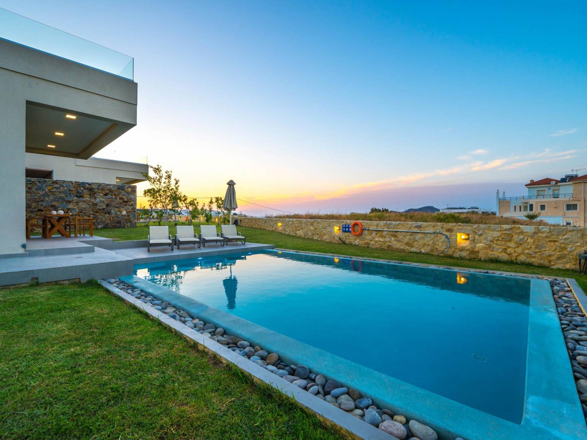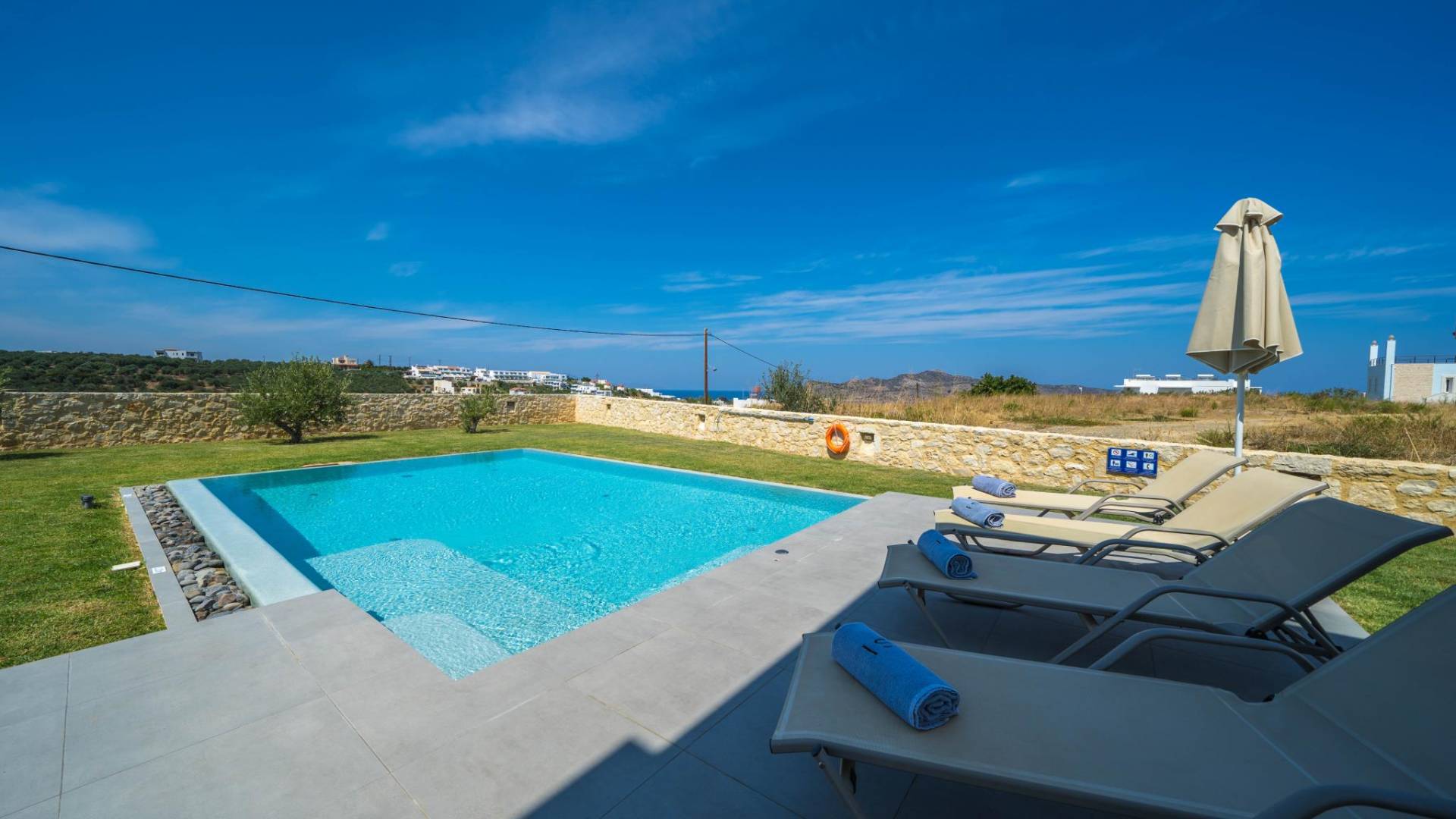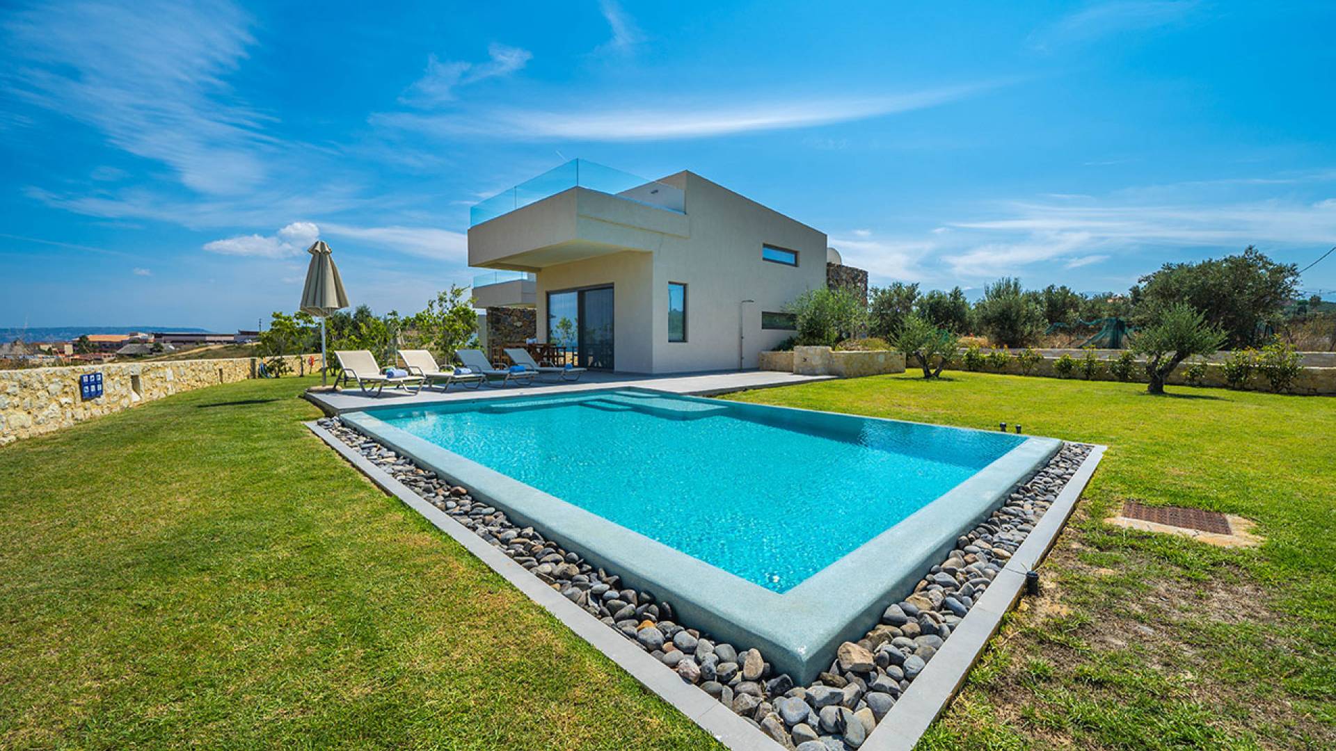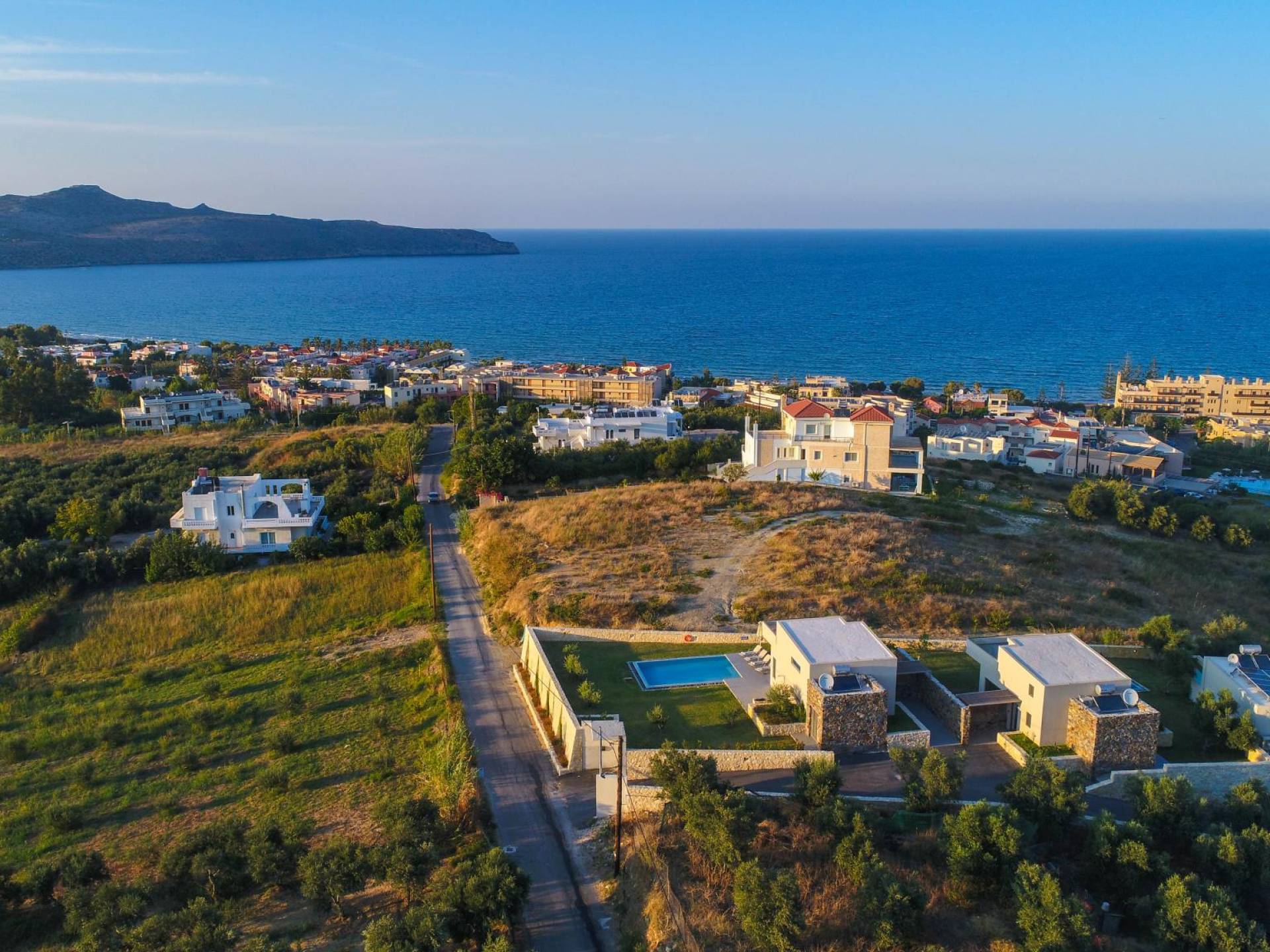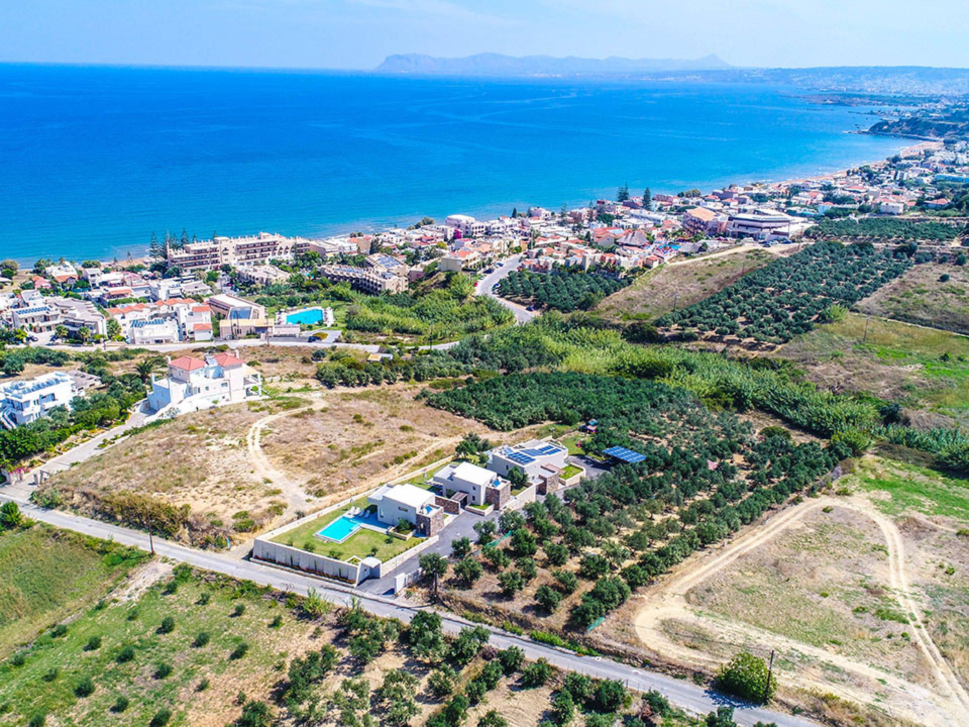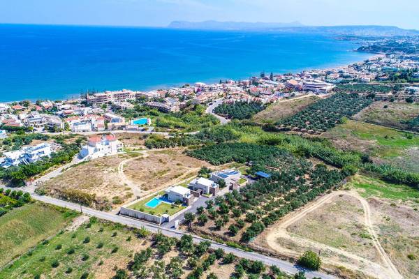 Ubicada en la soleada costa noroeste de Creta, Agia Marina es una encantadora localidad costera que combina a la perfección belleza natural, hospitalidad cretense y comodidades modernas. A solo 9 kilómetros al oeste de Chania, se ha convertido en uno de los destinos favoritos para quienes buscan un equilibrio entre descanso y aventura — y no hay mejor forma de vivirlo que en una villa privada.