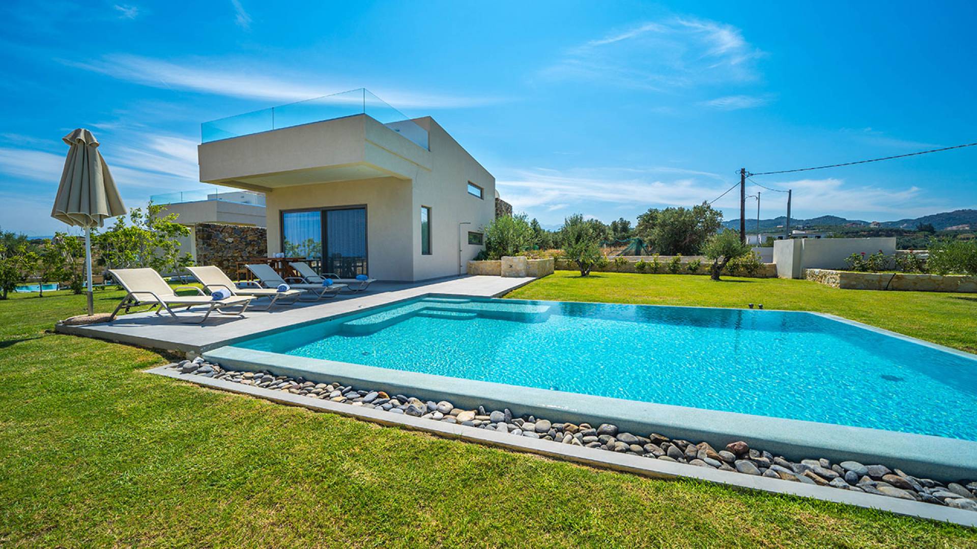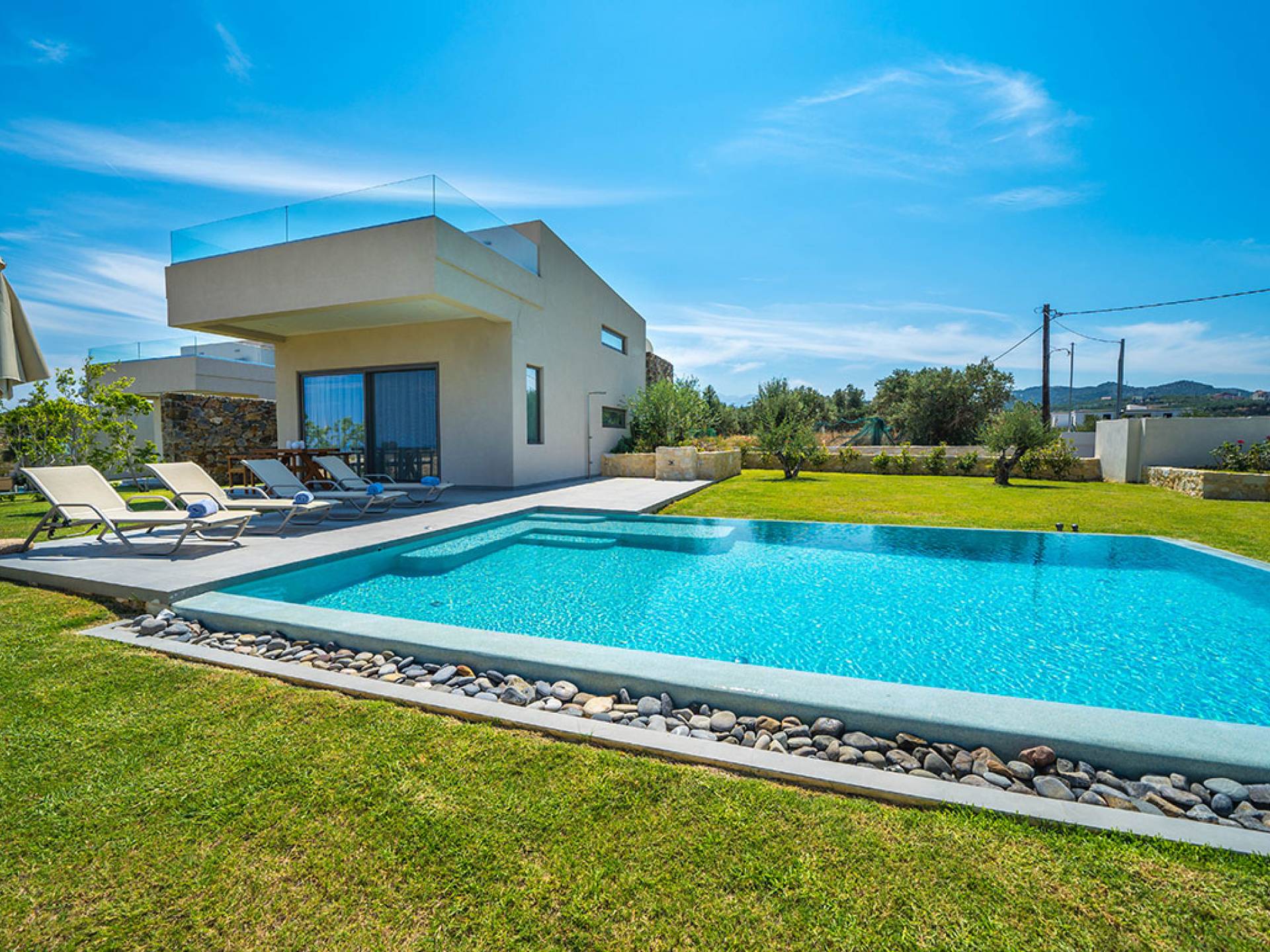 Agia Marina en Chania tiene todo lo que sueñas para unas vacaciones en el Mediterráneo: playas espectaculares, la calidez cretense, deliciosa gastronomía y máximo confort. Alquilar una villa aquí es disfrutar de todo ello — con espacio, privacidad y estilo.