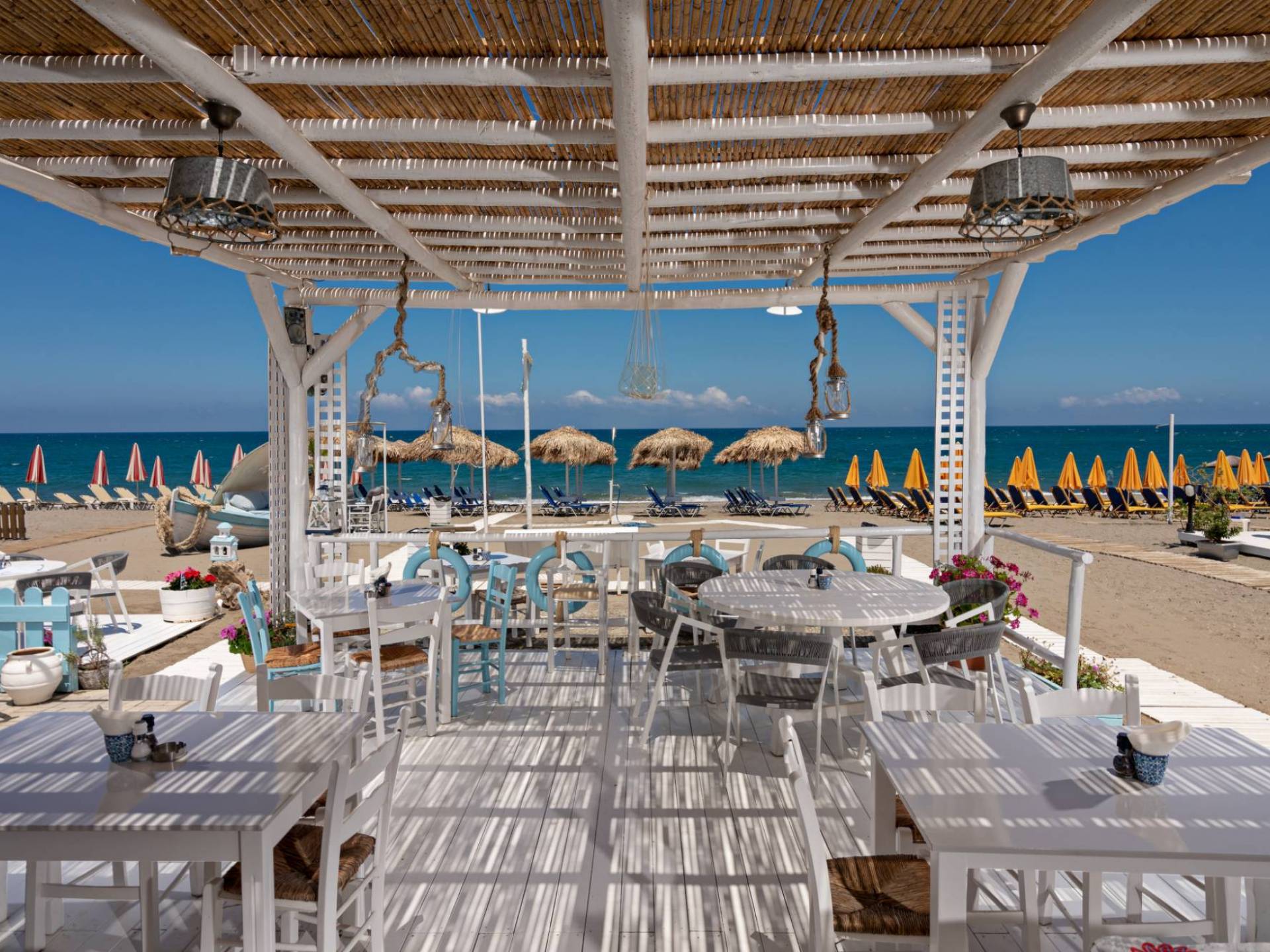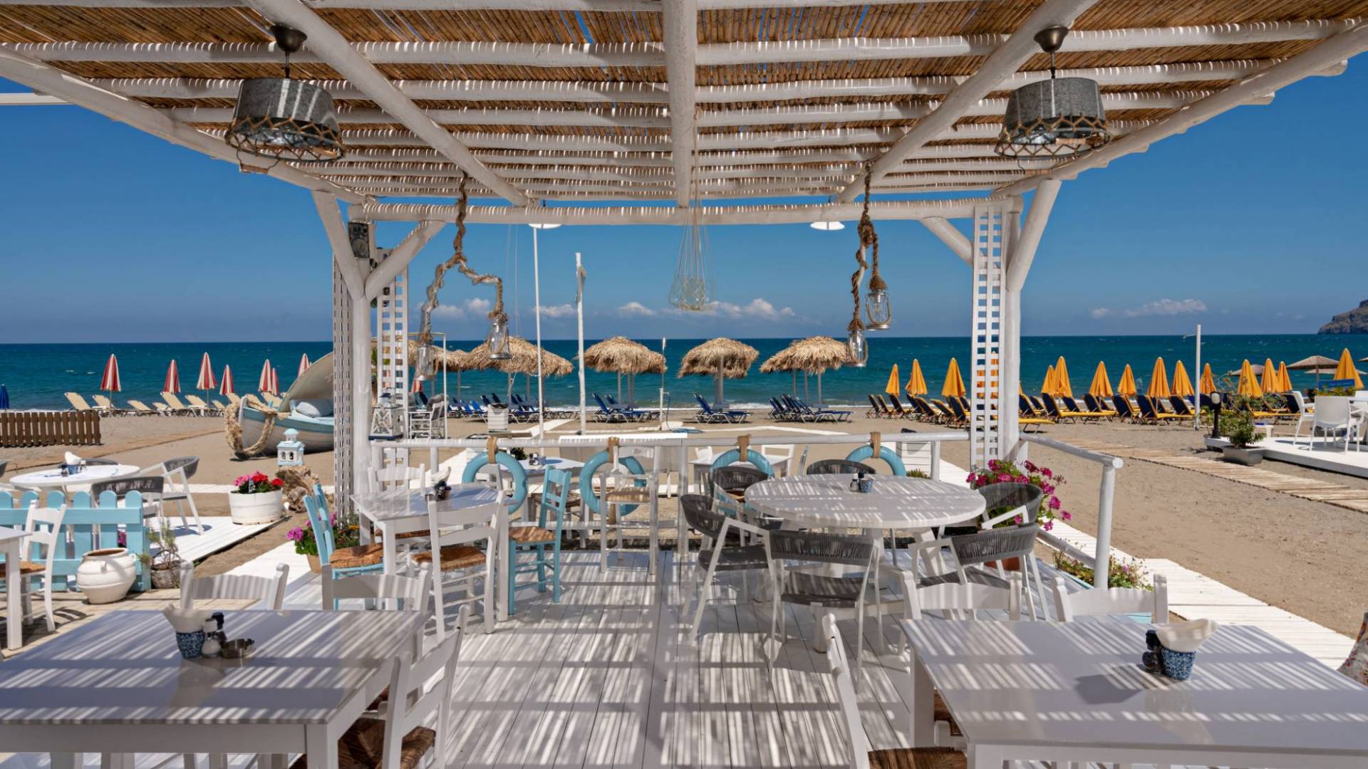 Agia Marina presume de una extensa playa de arena dorada bañada por las aguas cristalinas del mar Egeo. La playa está bien equipada con tumbonas, sombrillas y tabernas junto al mar, pero también cuenta con zonas más tranquilas para quienes buscan mayor privacidad. Ya sea tomando un café frappé, practicando deportes acuáticos o simplemente tomando el sol, la playa es el corazón de cada día.