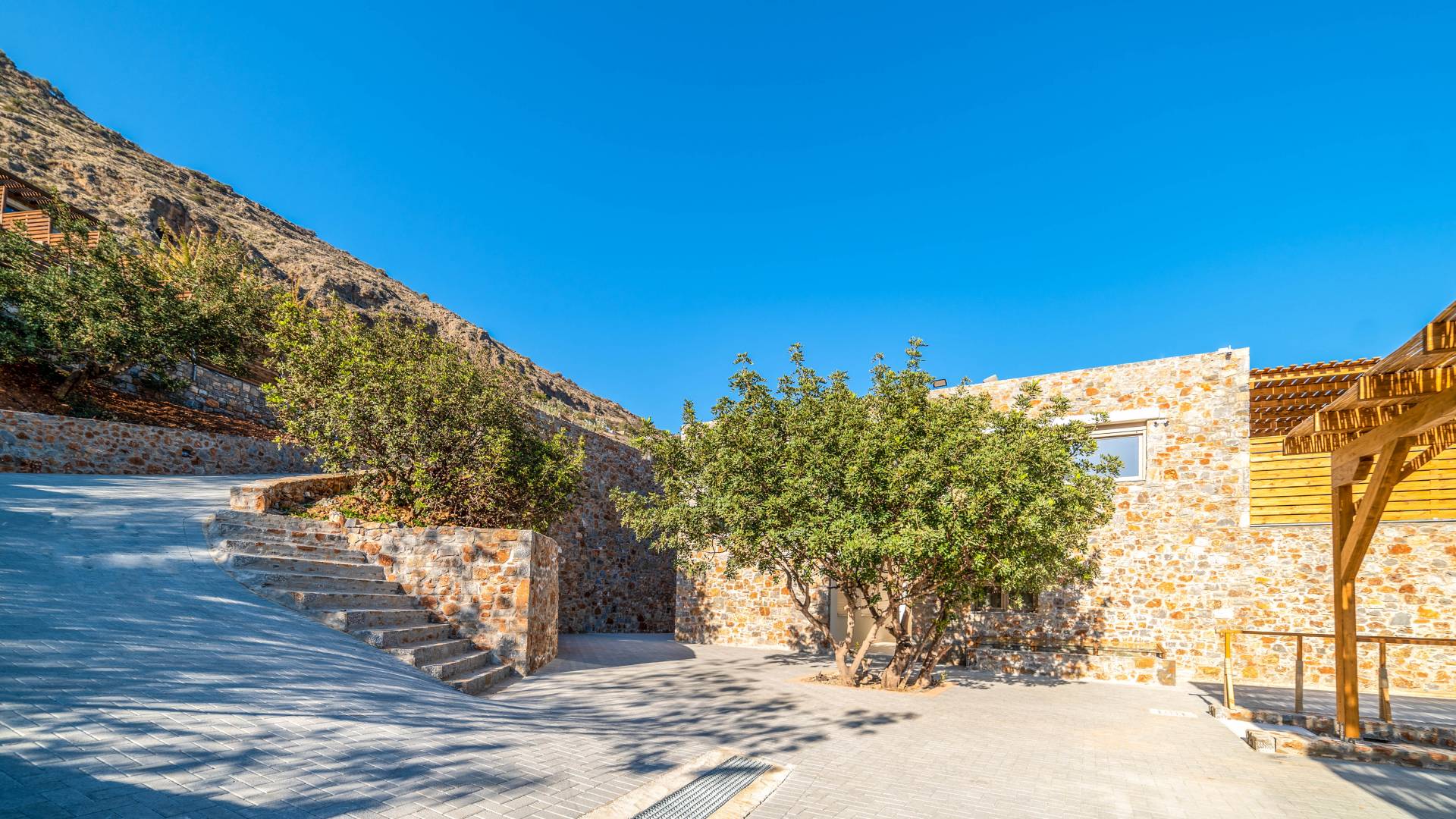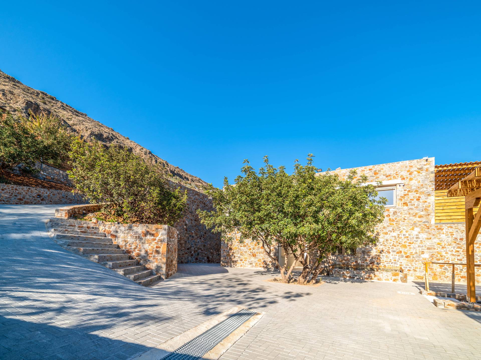 La belleza natural es impresionante — rodeada de colinas suaves y olivares, la zona ofrece vistas panorámicas a la bahía de Mirabello, especialmente mágicas al amanecer o al atardecer desde la terraza de una villa.
