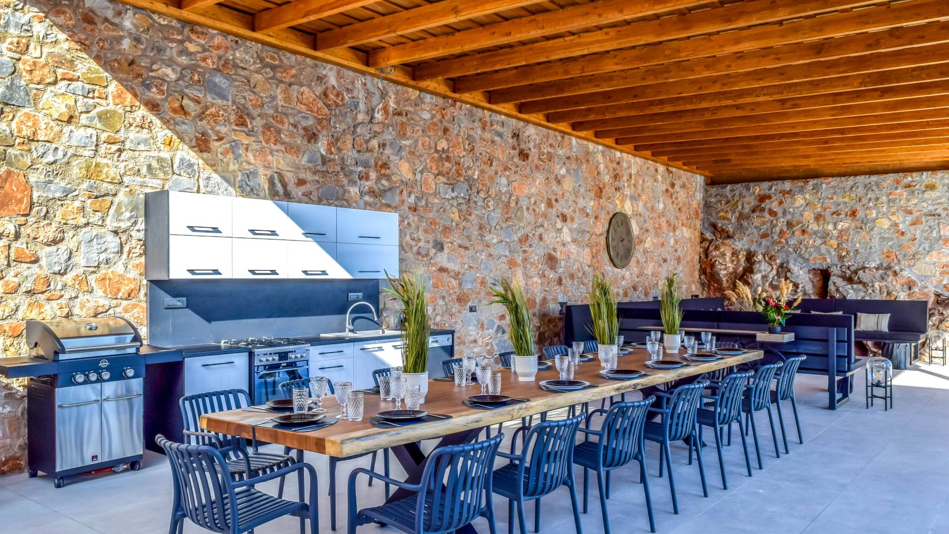 el totalmente equipado la cocina interior garantiza la preparación de comidas sin esfuerzo, mientras que cocina al aire libre y área de comidas con un Proporcione el escenario perfecto para disfrutar de comidas bajo las estrellas.