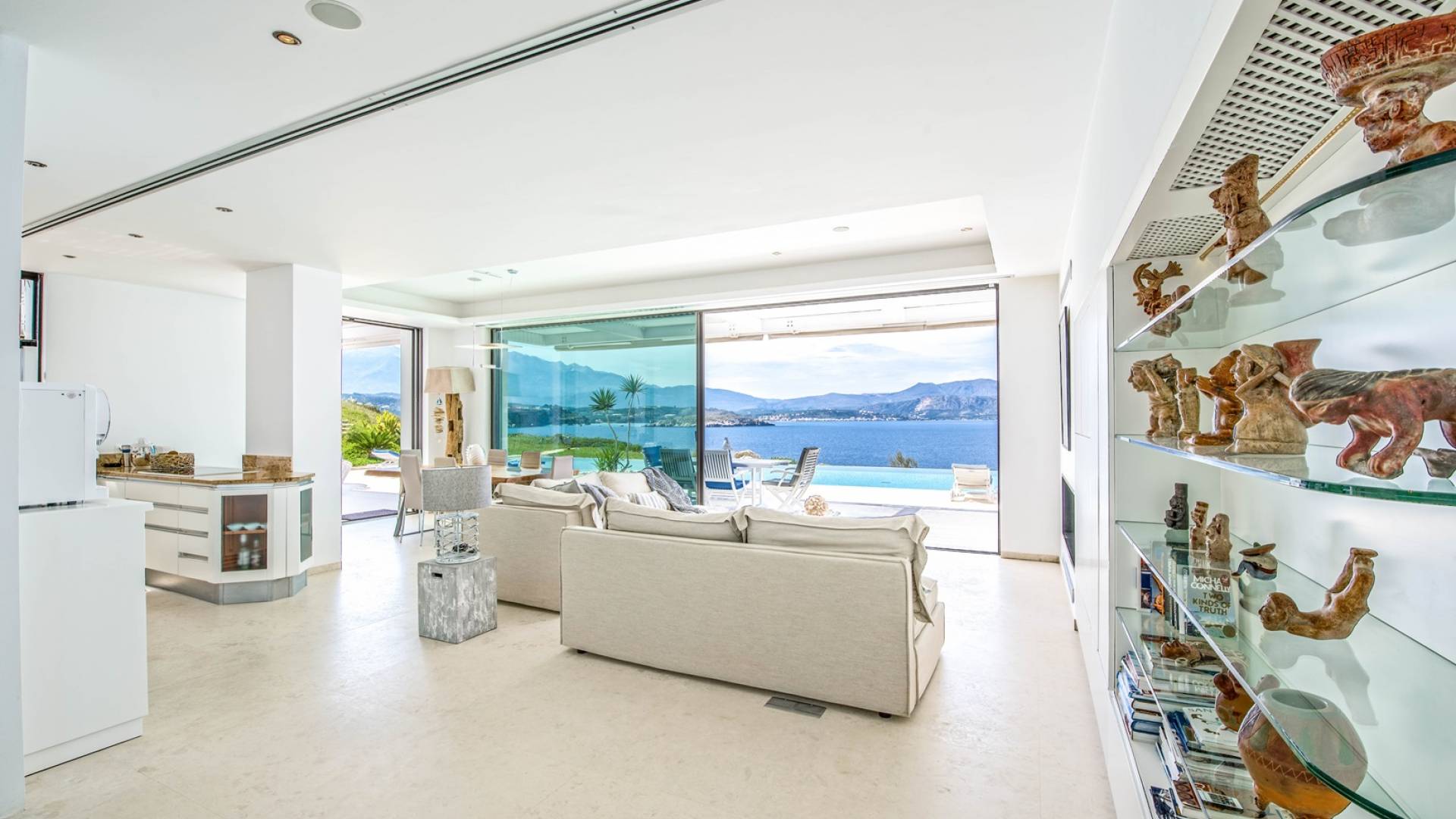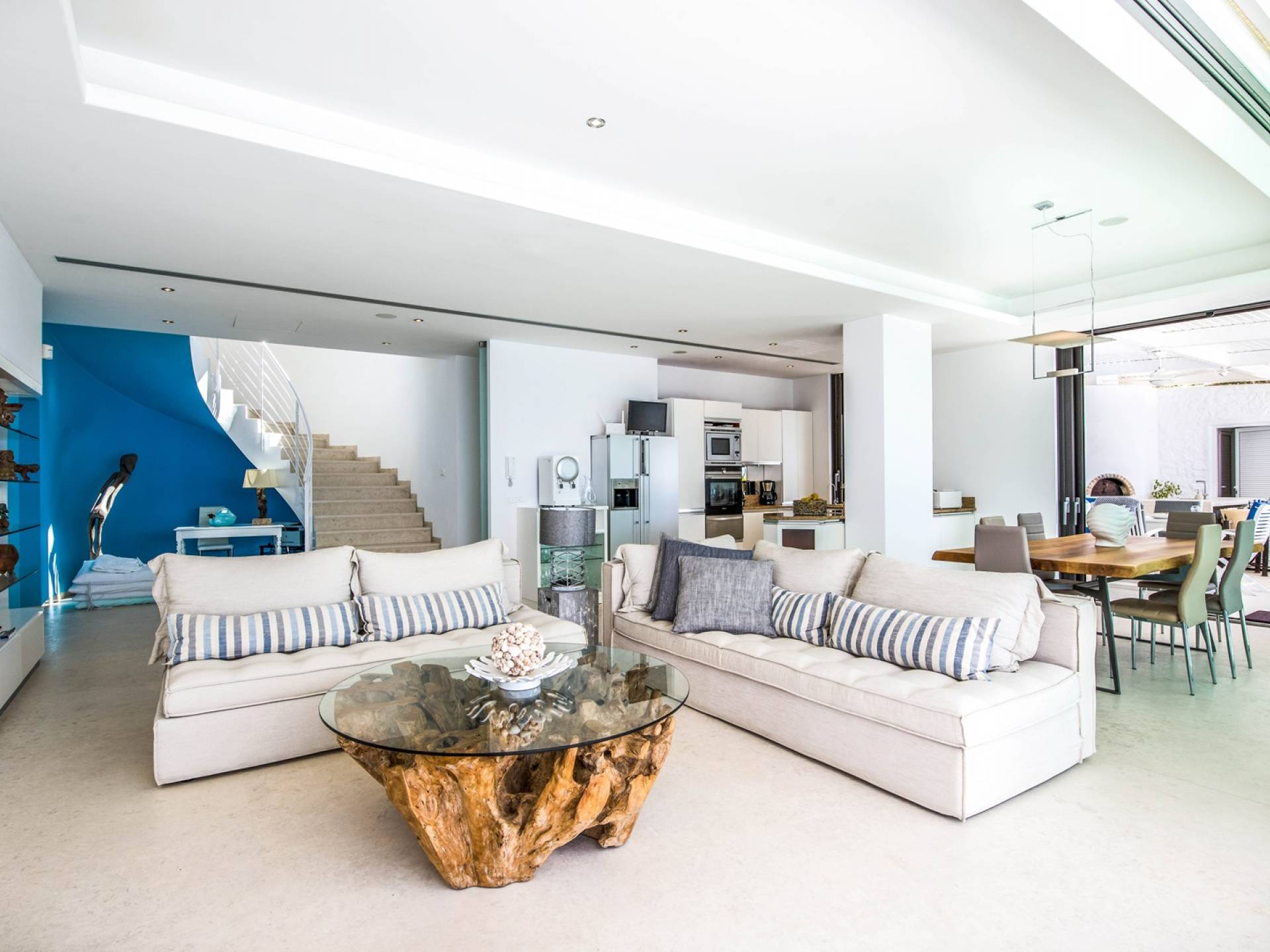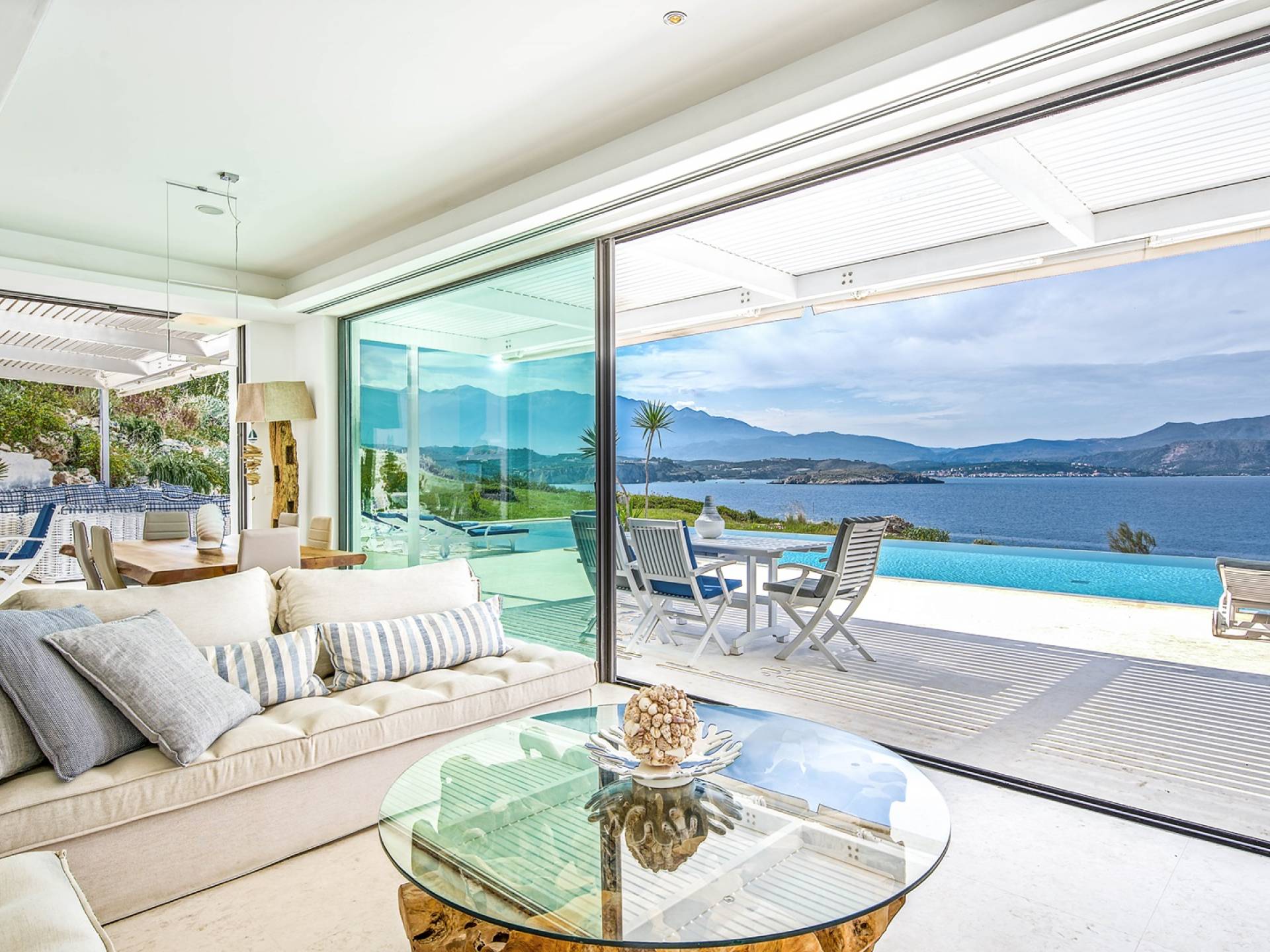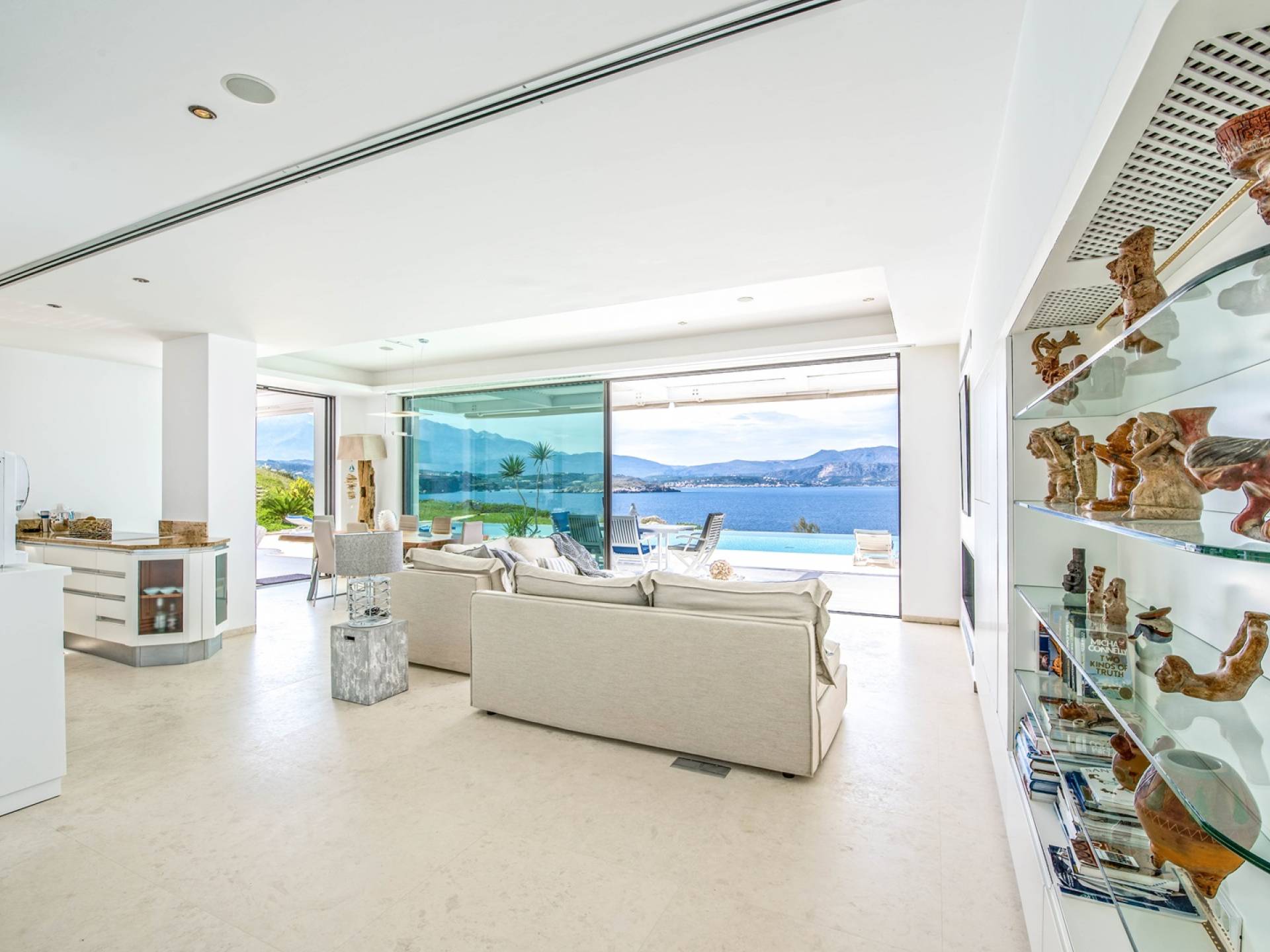 Goditi una delle "camere giardino" o aree relax con amache nel parco privato completamente recintato progettato dall'architetto di 12000 m2. L'ampio fronte mare permette l'accesso diretto al mare e la possibilità di salire a bordo di un gommone o motoscafo similare. Eleganti pavimenti in pietra naturale che scorrono dalle aree interne a quelle esterne con porte scorrevoli in vetro molto grandi consentono un'esperienza di vita interna ed esterna senza soluzione di continuità. Goditi le riunioni di famiglia su comodi divani di design circondati dall'arte contemporanea.