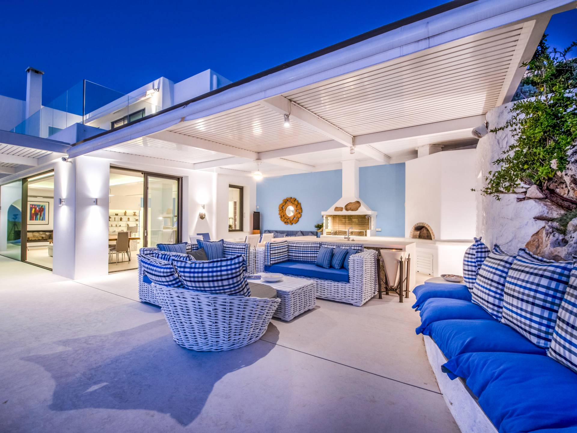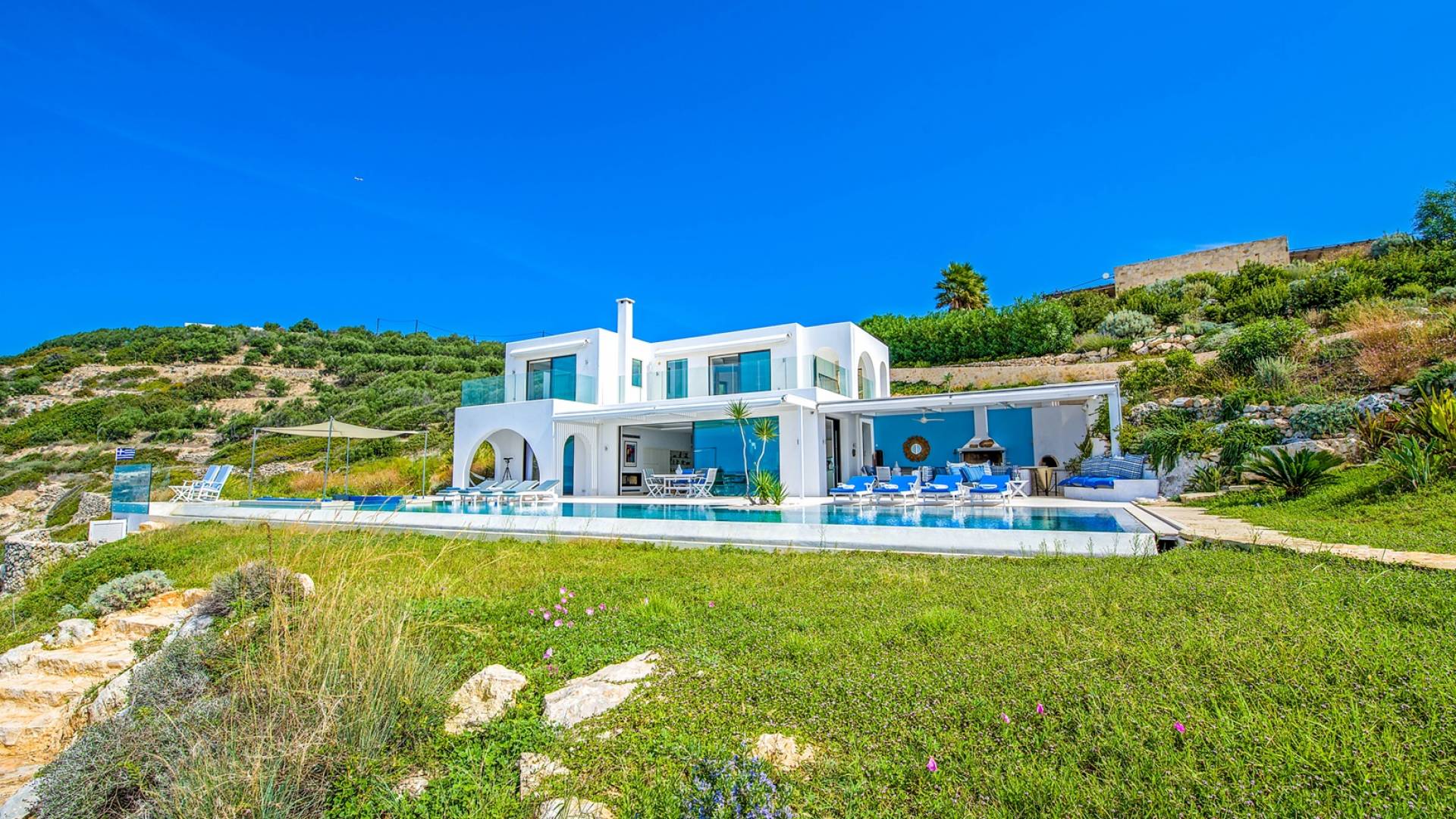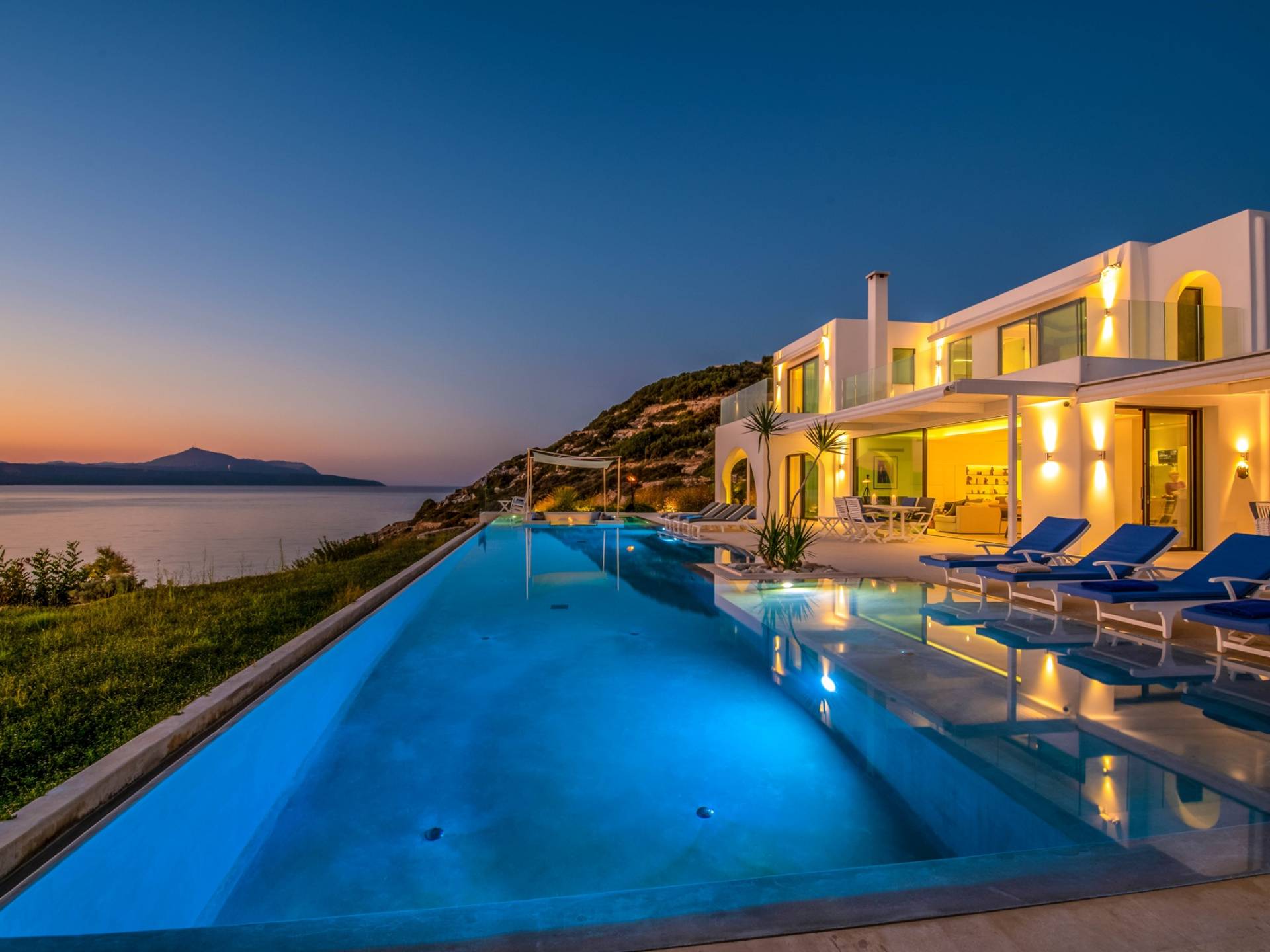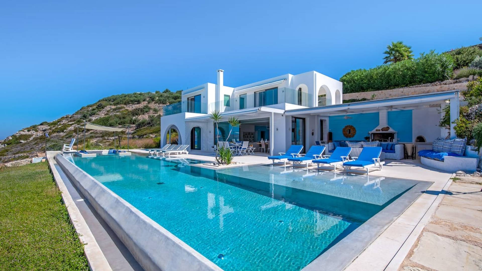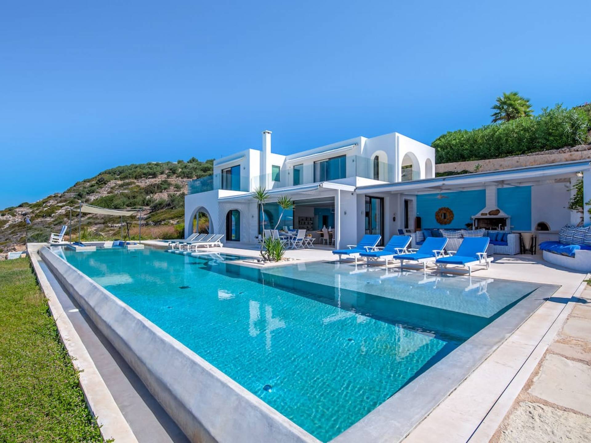 Villa Blue Paradise è un rifugio privato non fumatori di nuova costruzione con una villa principale contemporanea con 3 camere da letto e una guest house in pietra separata con 2 camere da letto che offrono una maggiore privacy. Questa esclusiva proprietà di lusso sul lungomare gode di una leggera brezza marina e di spettacolari tramonti sulla baia di Souda. La sera vorrai trascorrere il tuo soggiorno nell'ampio patio coperto di fronte alla piscina riscaldata e al mare con angolo cottura all'aperto e comode zone relax e pranzo.