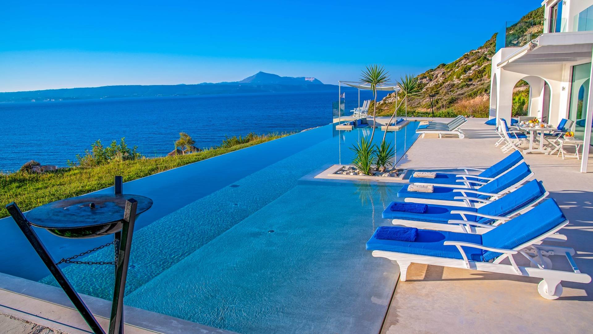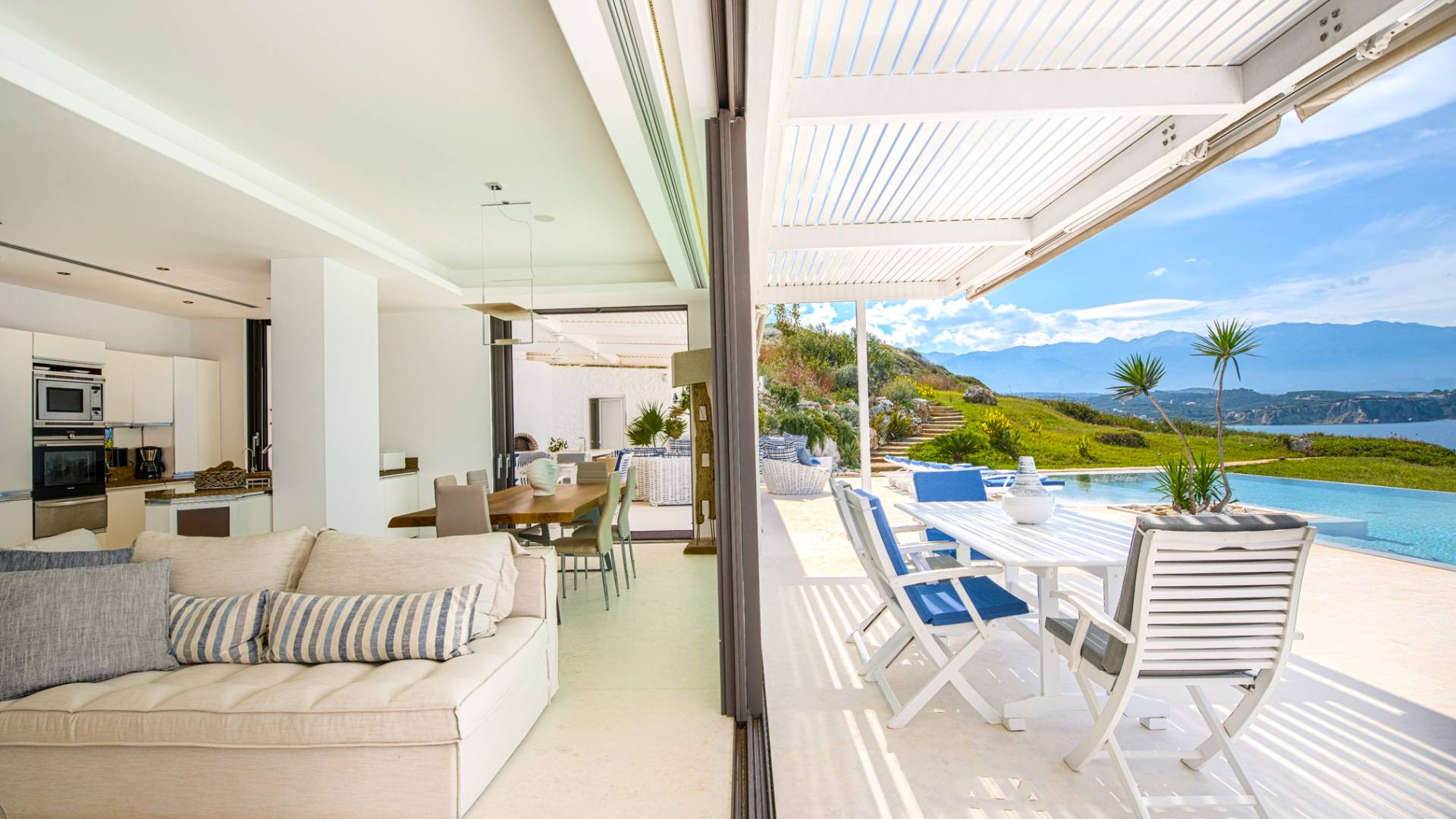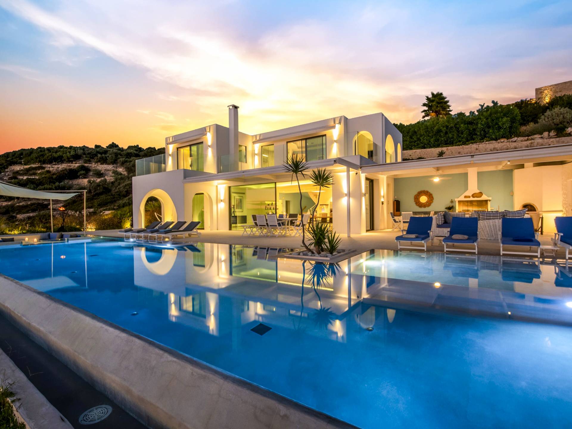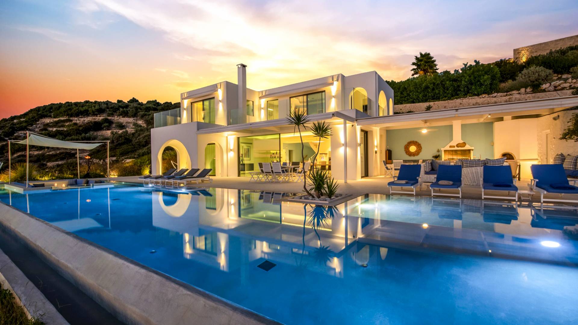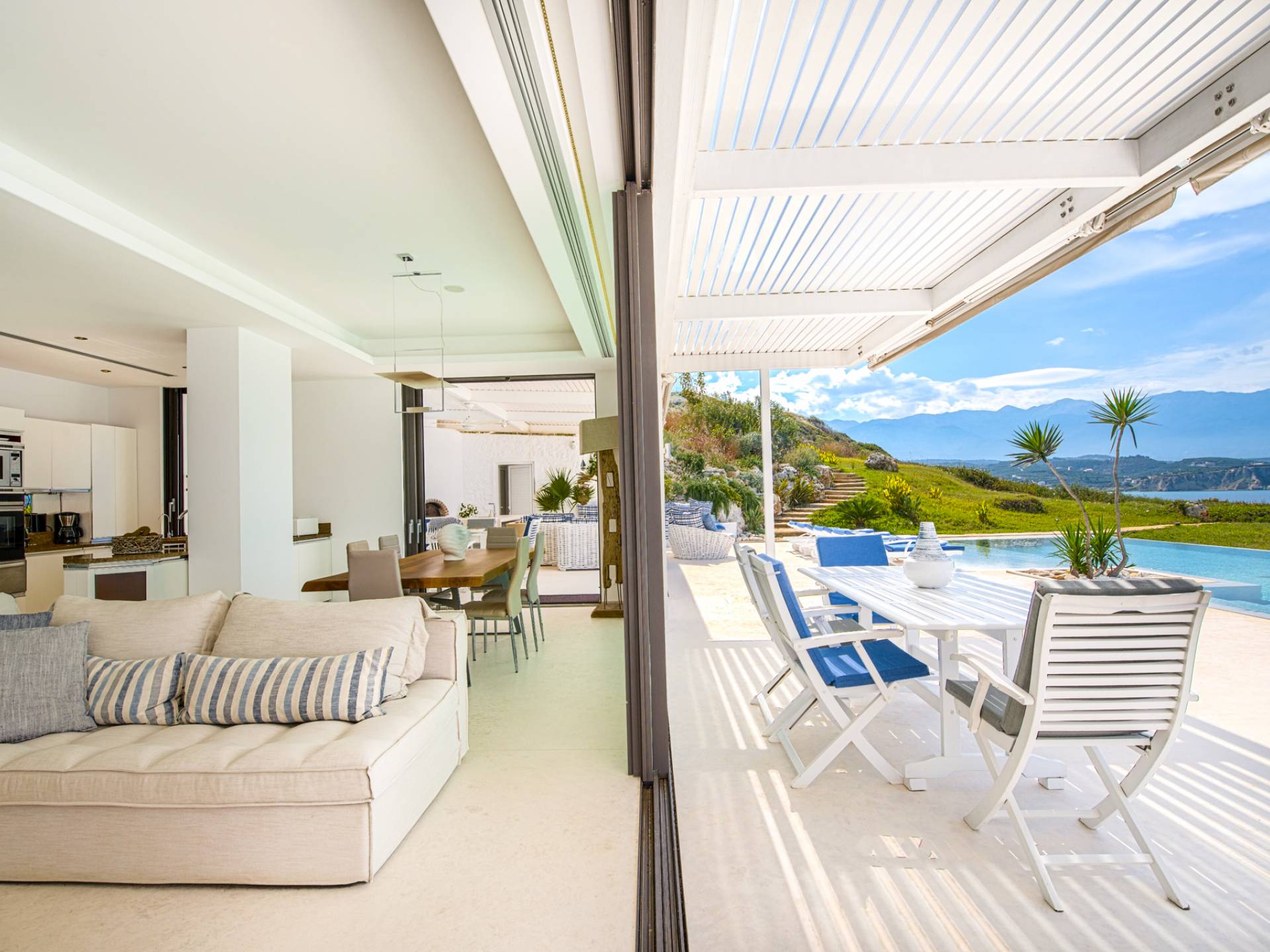Villa Blue Paradise è un rifugio privato non fumatori di nuova costruzione con una villa principale contemporanea con 3 camere da letto e una guest house in pietra separata con 2 camere da letto che offrono una maggiore privacy. Questa esclusiva proprietà di lusso sul lungomare gode di una leggera brezza marina e di spettacolari tramonti sulla baia di Souda. La sera vorrai trascorrere il tuo soggiorno nell'ampio patio coperto di fronte alla piscina riscaldata e al mare con angolo cottura all'aperto e comode zone relax e pranzo.