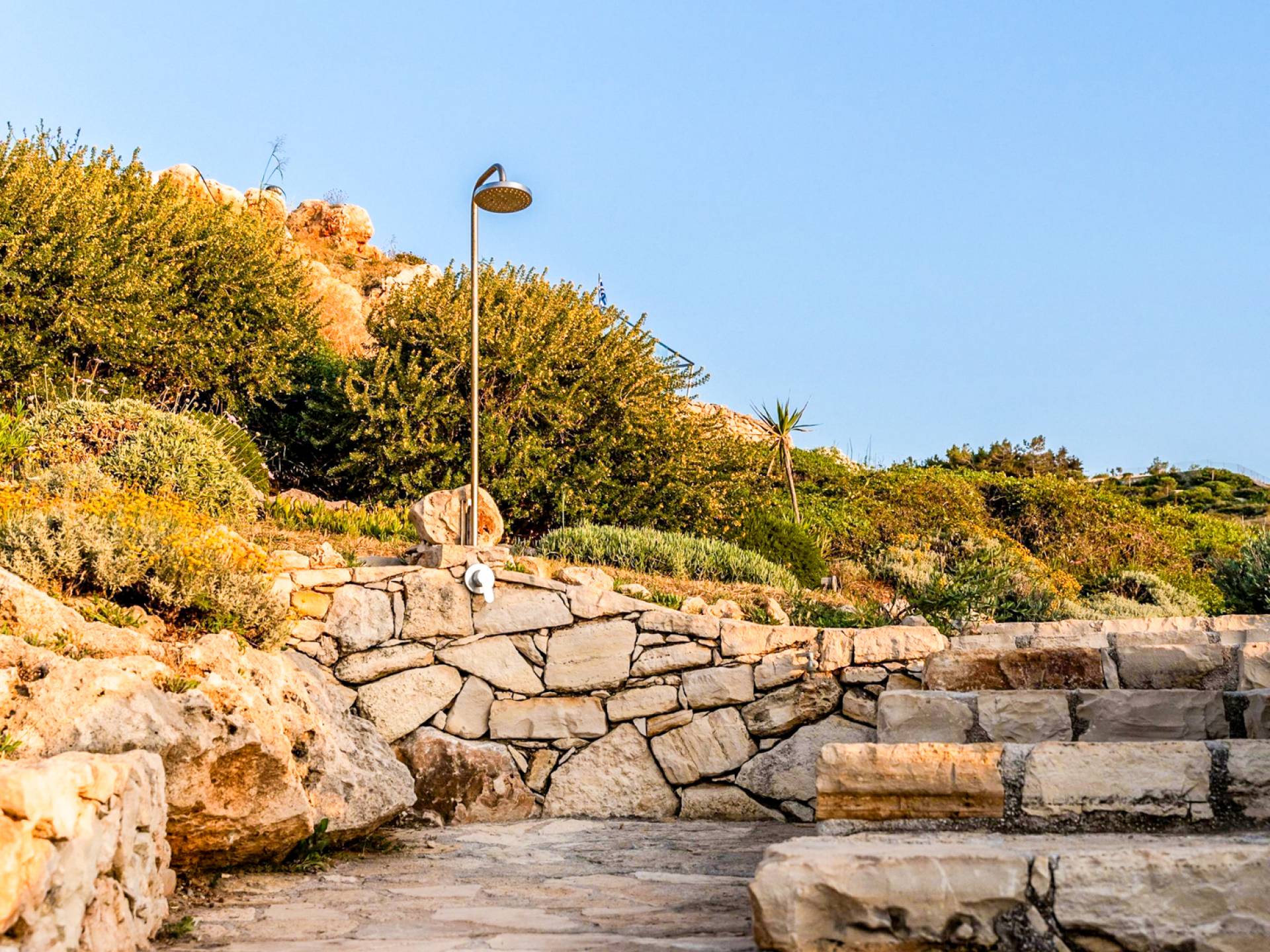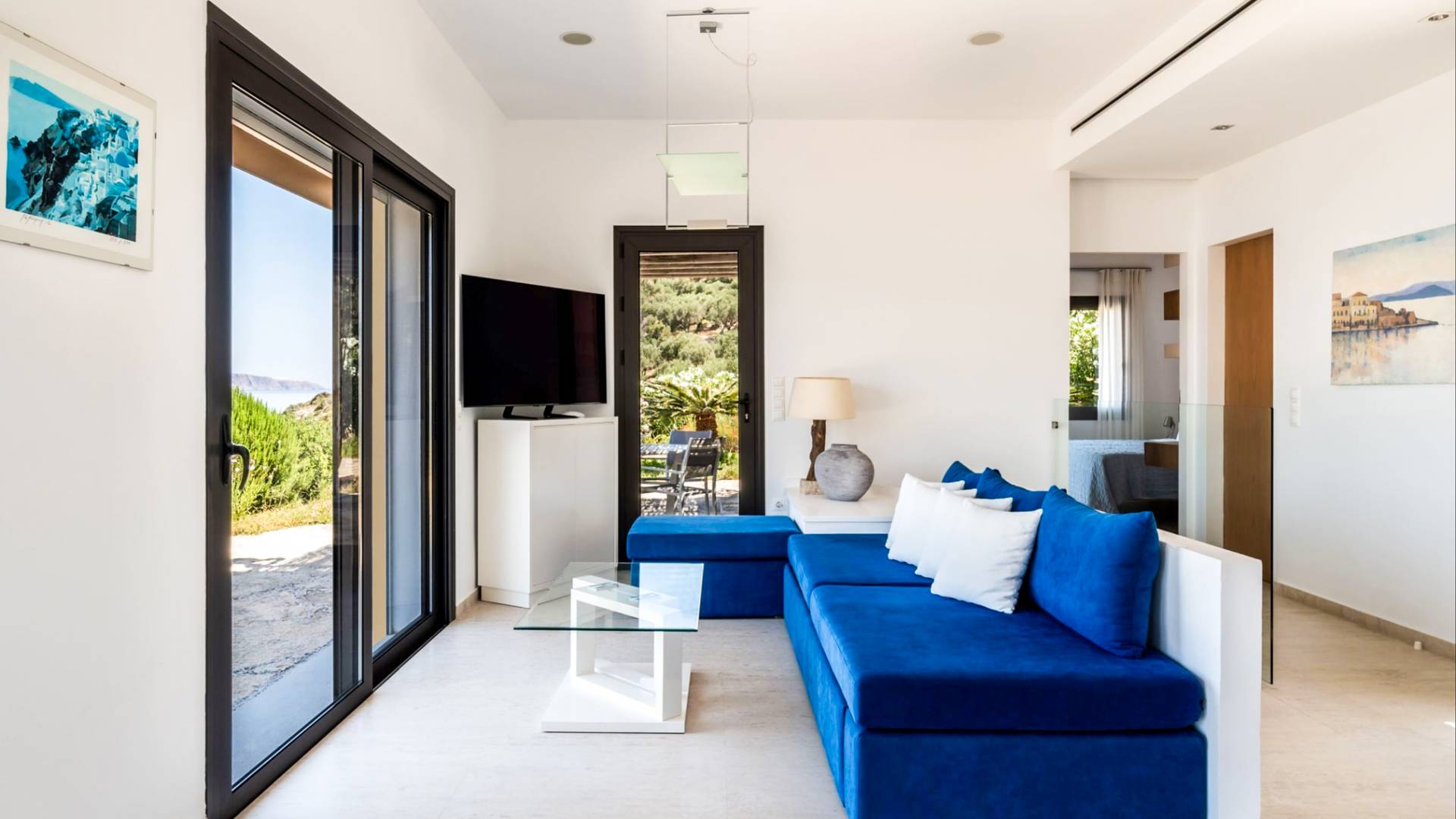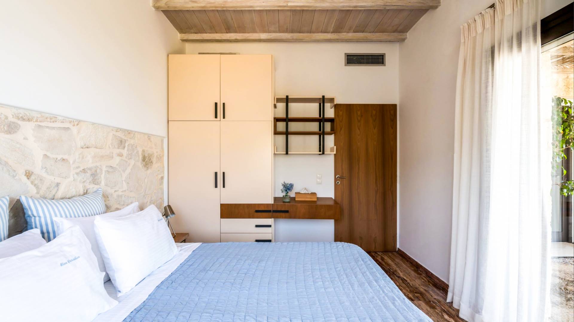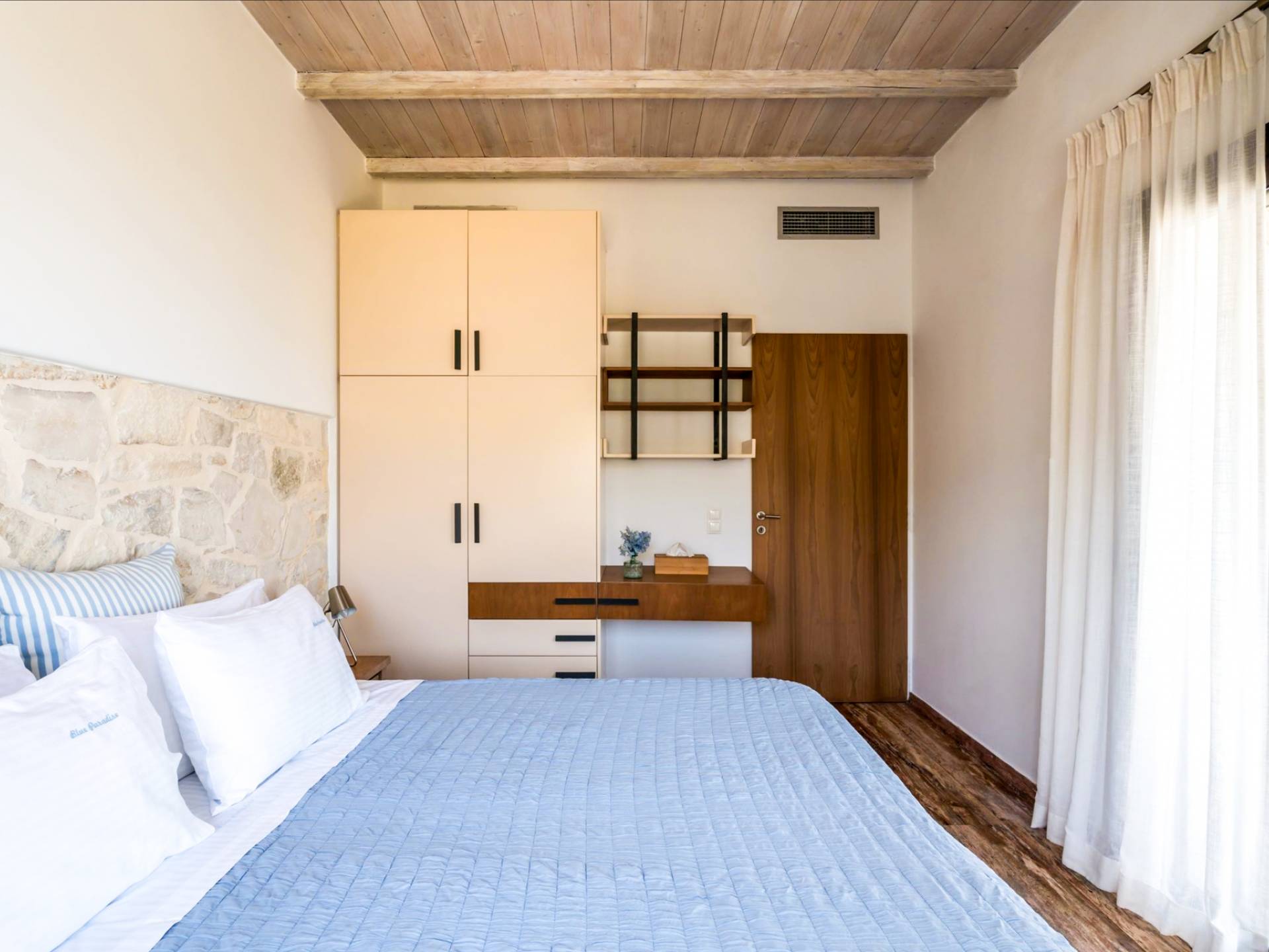 La pensione dispone di due camere da letto con due letti singoli convertibili in letti king-size, due bagni con doccia, terrazze private e una splendida vista sulla baia. Da Blue Paradise, si può raggiungere a piedi il pittoresco villaggio di Plaka con diversi ottimi ristoranti e un supermercato.