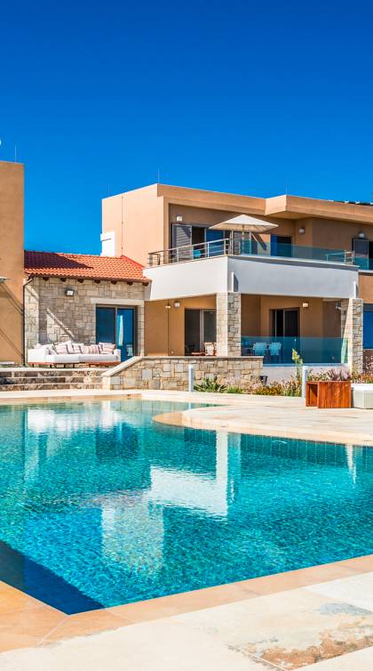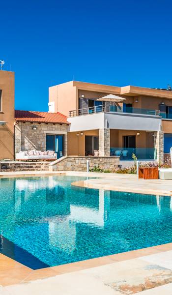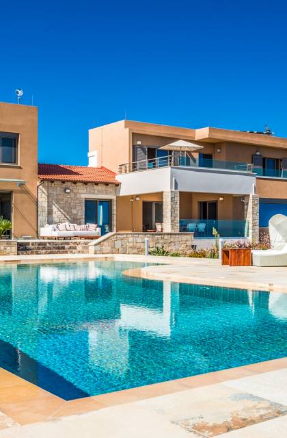 Спокойное место, расположенное на участке земли площадью 4000 м2, находится всего в 10 минутах от оживленного морского курорта Платаниас. Есть множество дополнительных услуг, которые сделают ваше пребывание еще более приятным, например, полноценный спа-центр с крытым бассейном, джакузи и сауной, теннисным кортом и большим винным погребом со столовой.