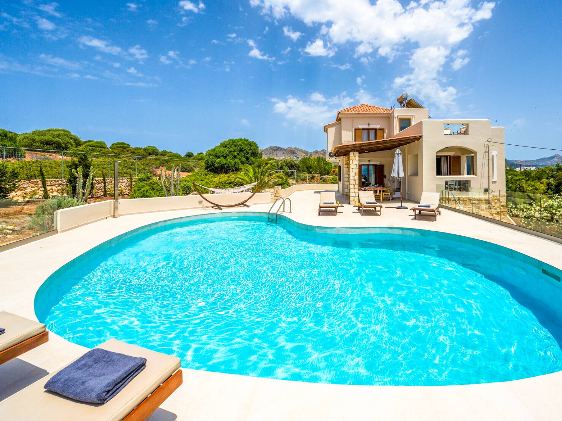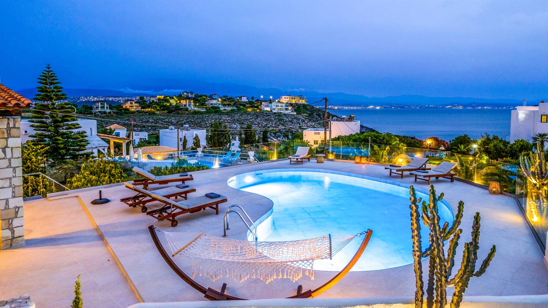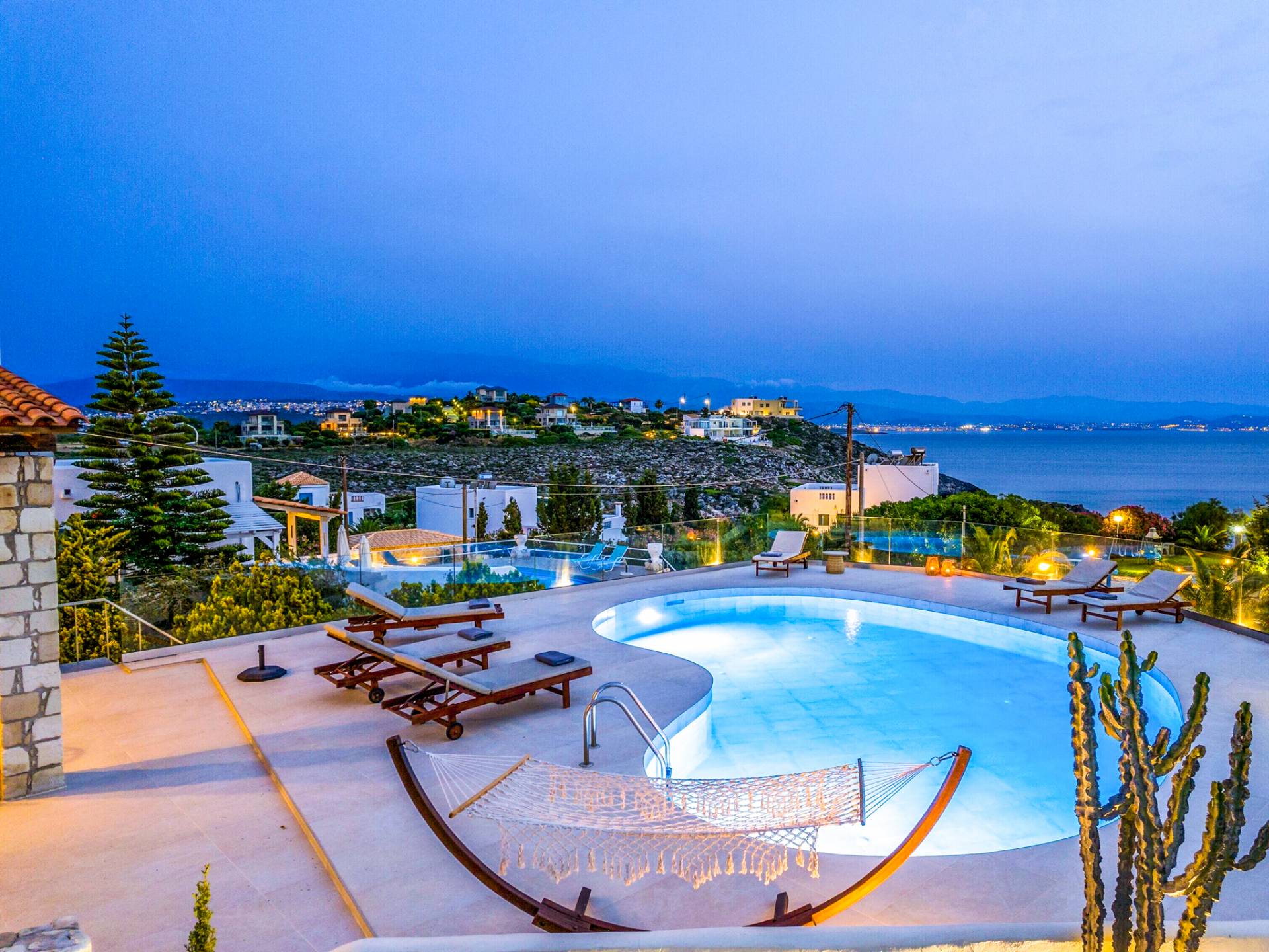 Bluebell Villa Chania, расположенная на живописном холме в деревне Терсанас на западе Крита, всего в 20 минутах езды от города Ханья, представляет собой исключительную частную роскошную виллу в аренду с 3 просторными спальнями, 3 ванными комнатами, просторными жилыми помещениями и открытой площадкой. частный бассейн с великолепным видом на море. Bluebell Villa Chania - идеальный выбор для семей и компаний друзей. В этом просторном доме для отпуска на берегу моря могут разместиться до 7 человек.