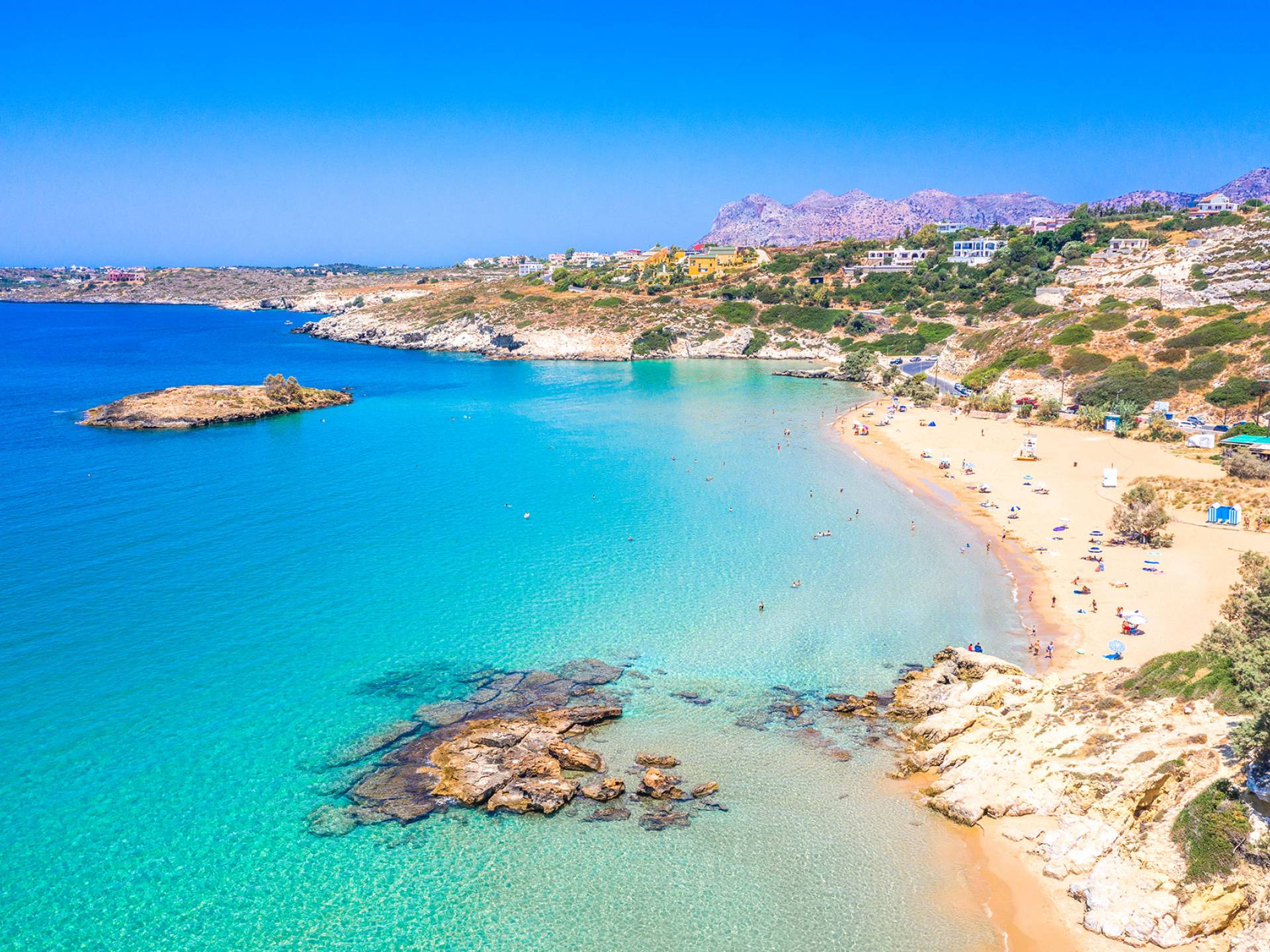 - Seitan Limania Beach: 15 km – spectacular hidden cove with turquoise waters, ideal for adventurous swimmers.