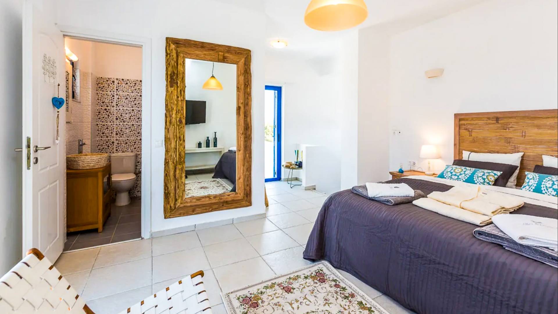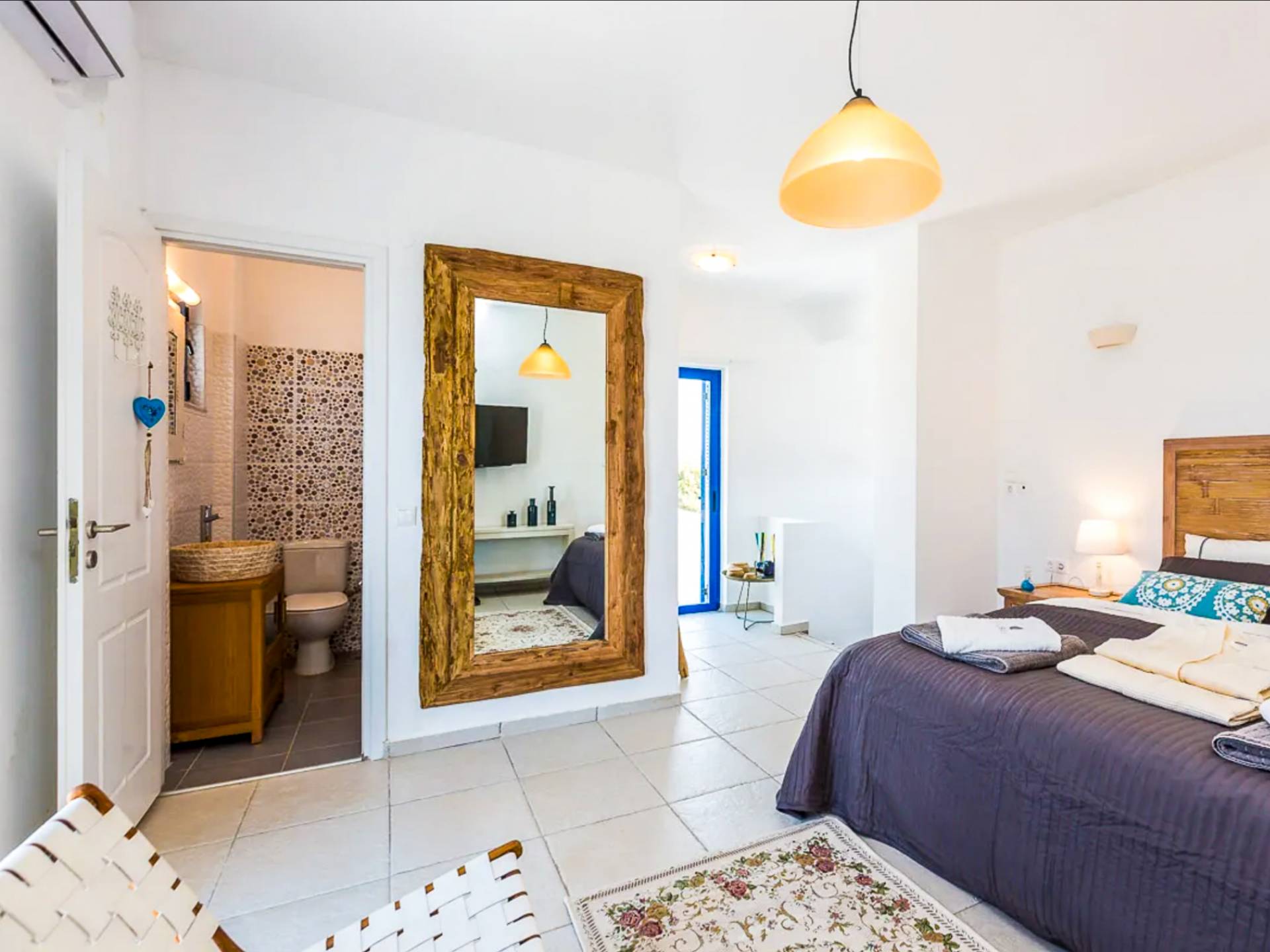 - Bedroom 3 with two single beds (or King bed), ensuite bathroom and patio access